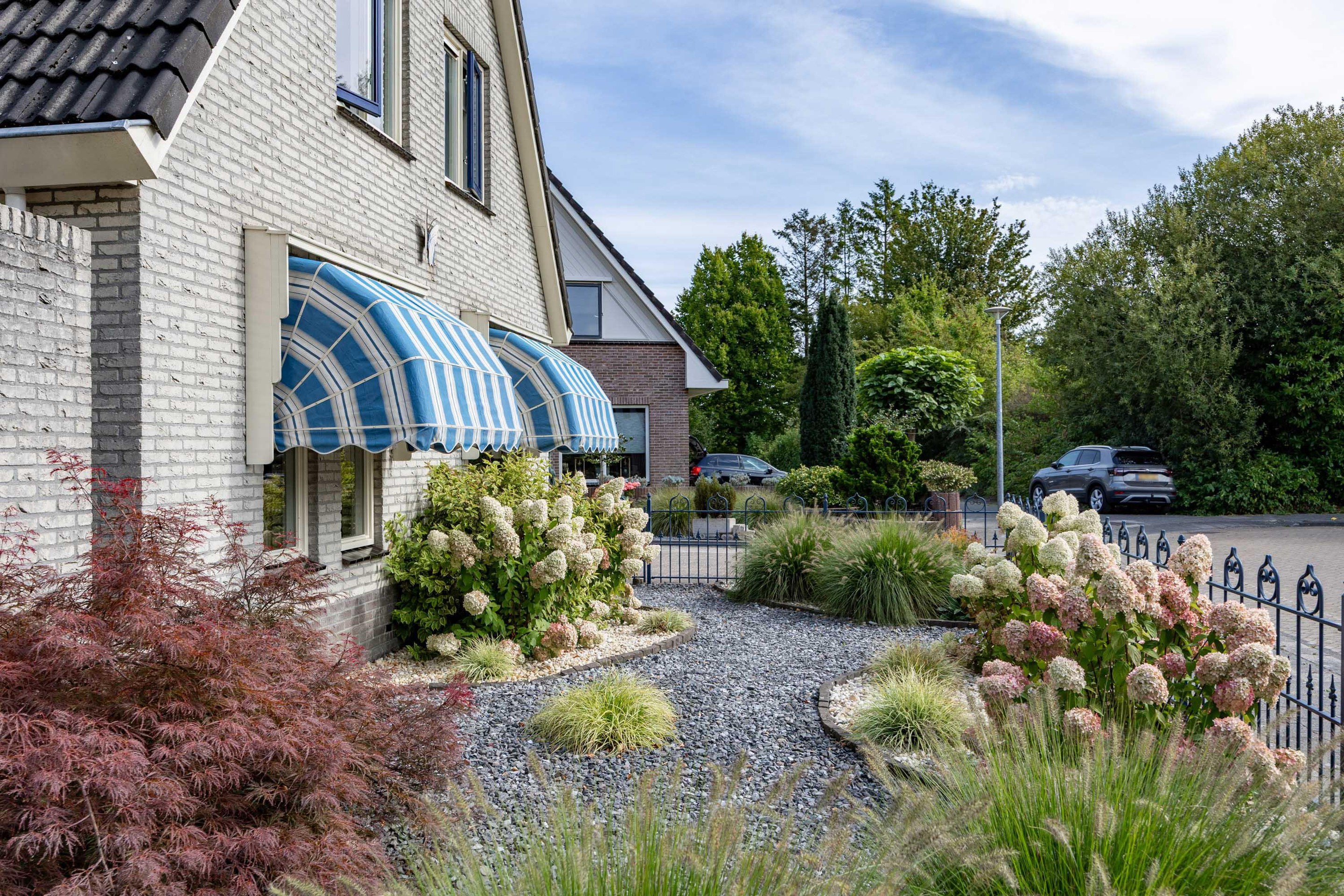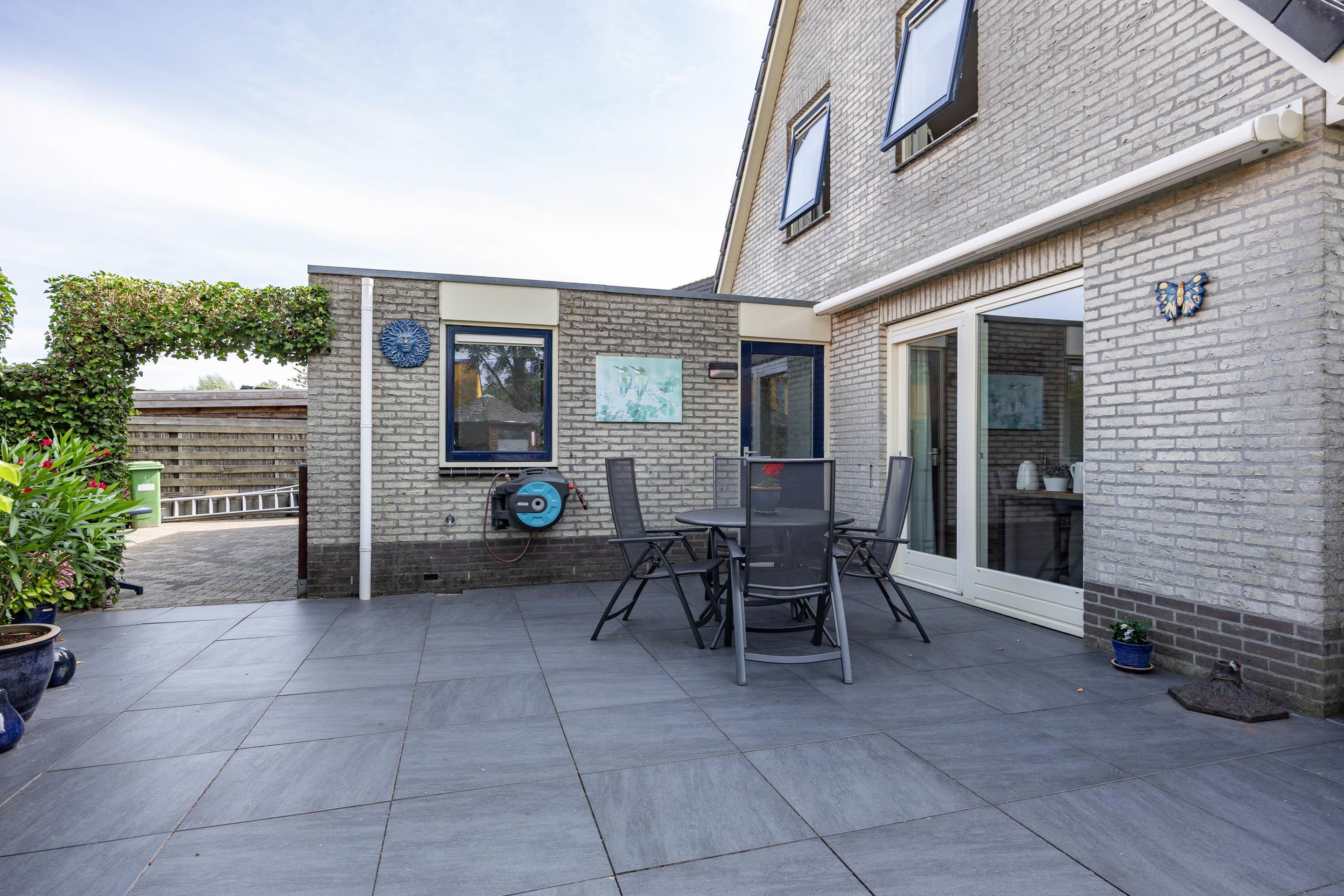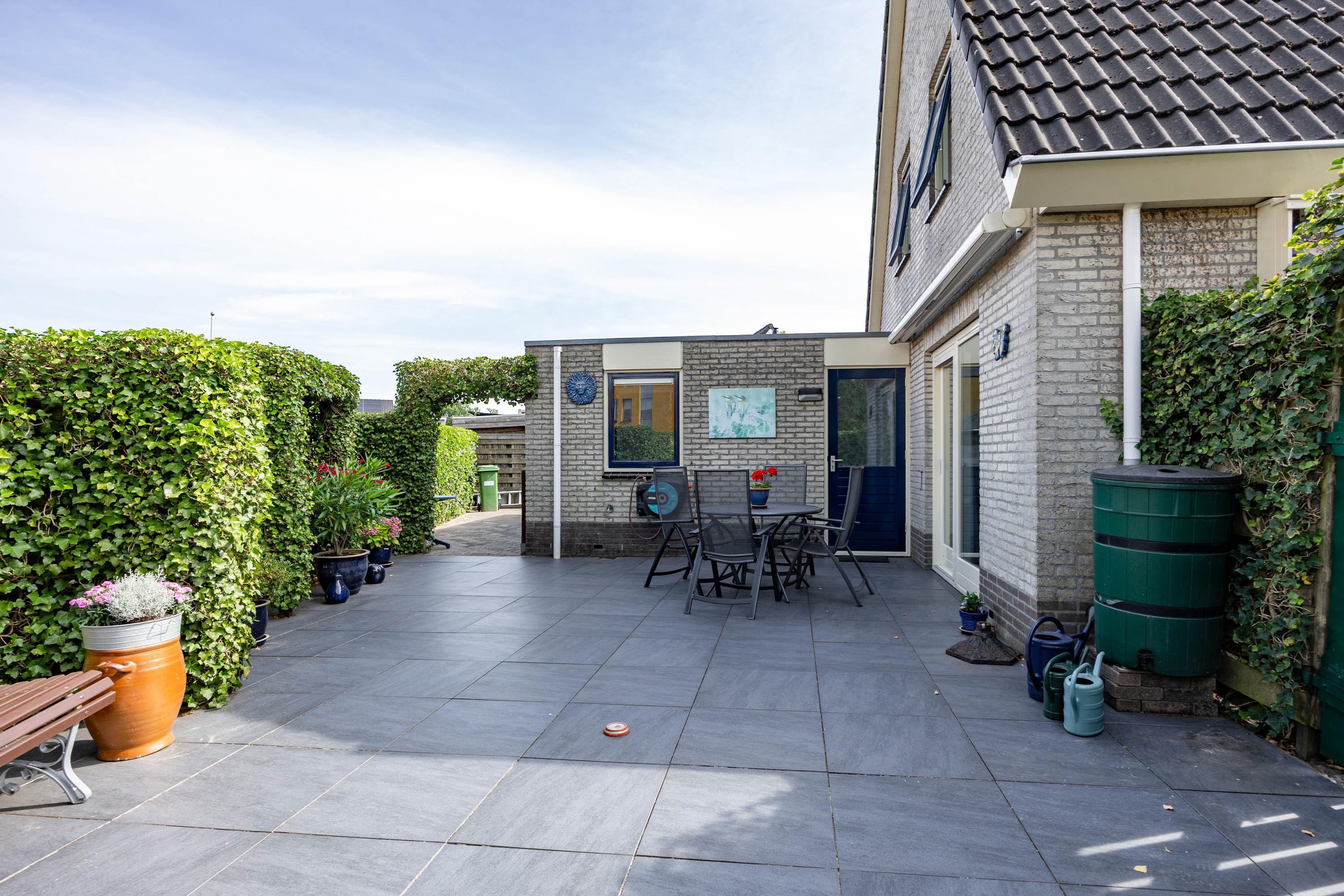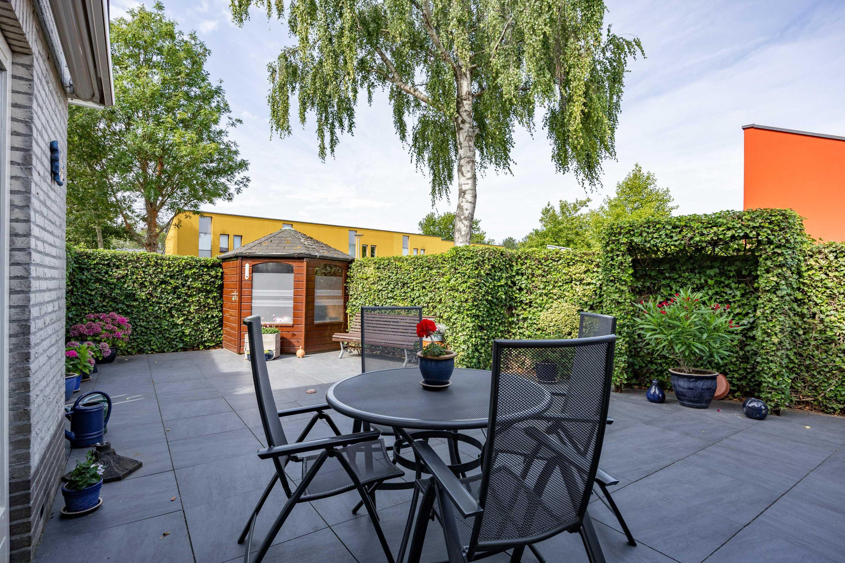 Rondom de woning ligt een verzorgde tuin die veel privacy biedt. Dankzij de gunstige ligging is er de hele dag door een plekje in de zon of juist in de schaduw te vinden. In de tuin bevindt zich bovendien een berging, ideaal voor tuingereedschap. De terrassen bieden voldoende plaats en de zonwering aan de achtergevel zorgen voor een heerlijke schaduwplek.
