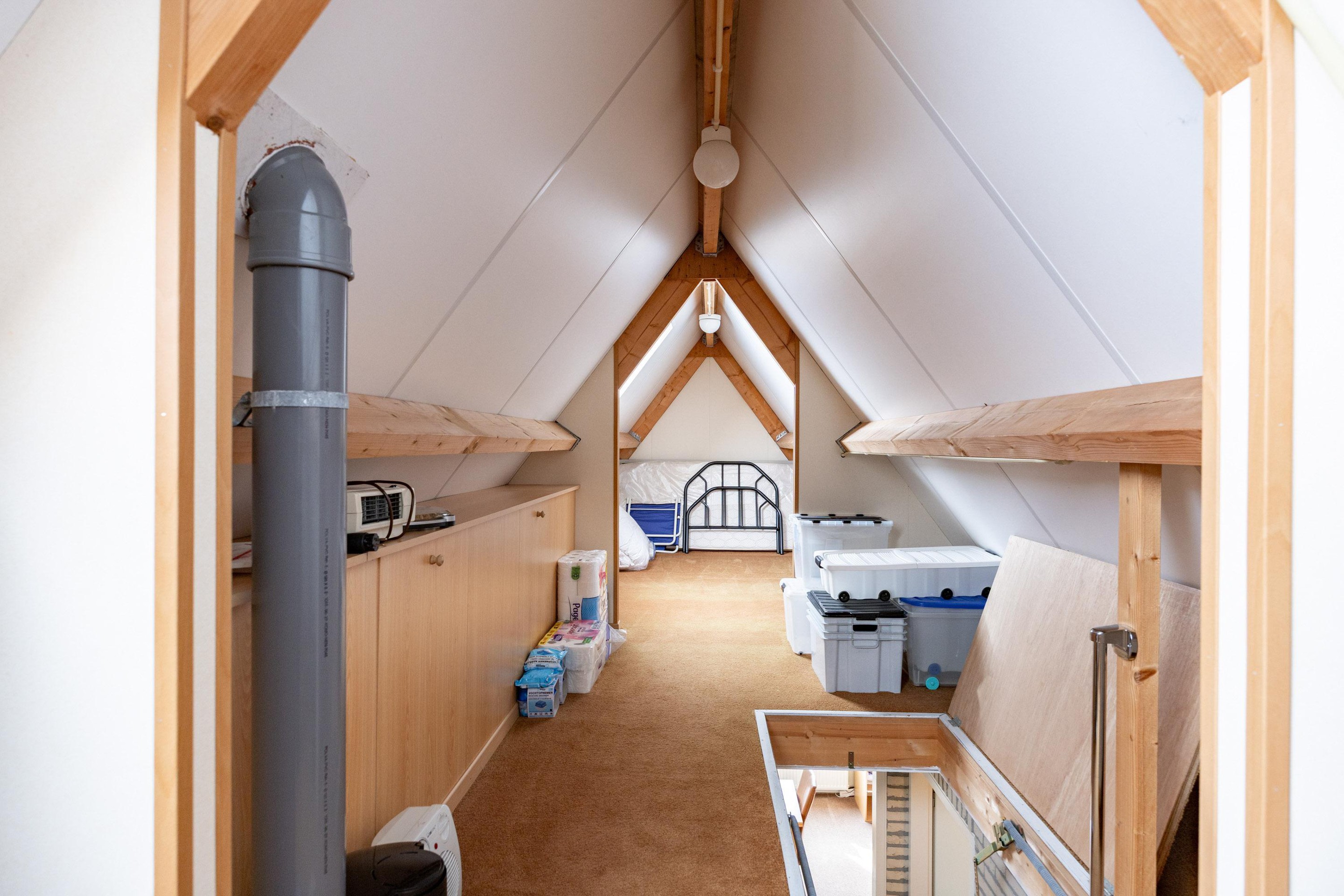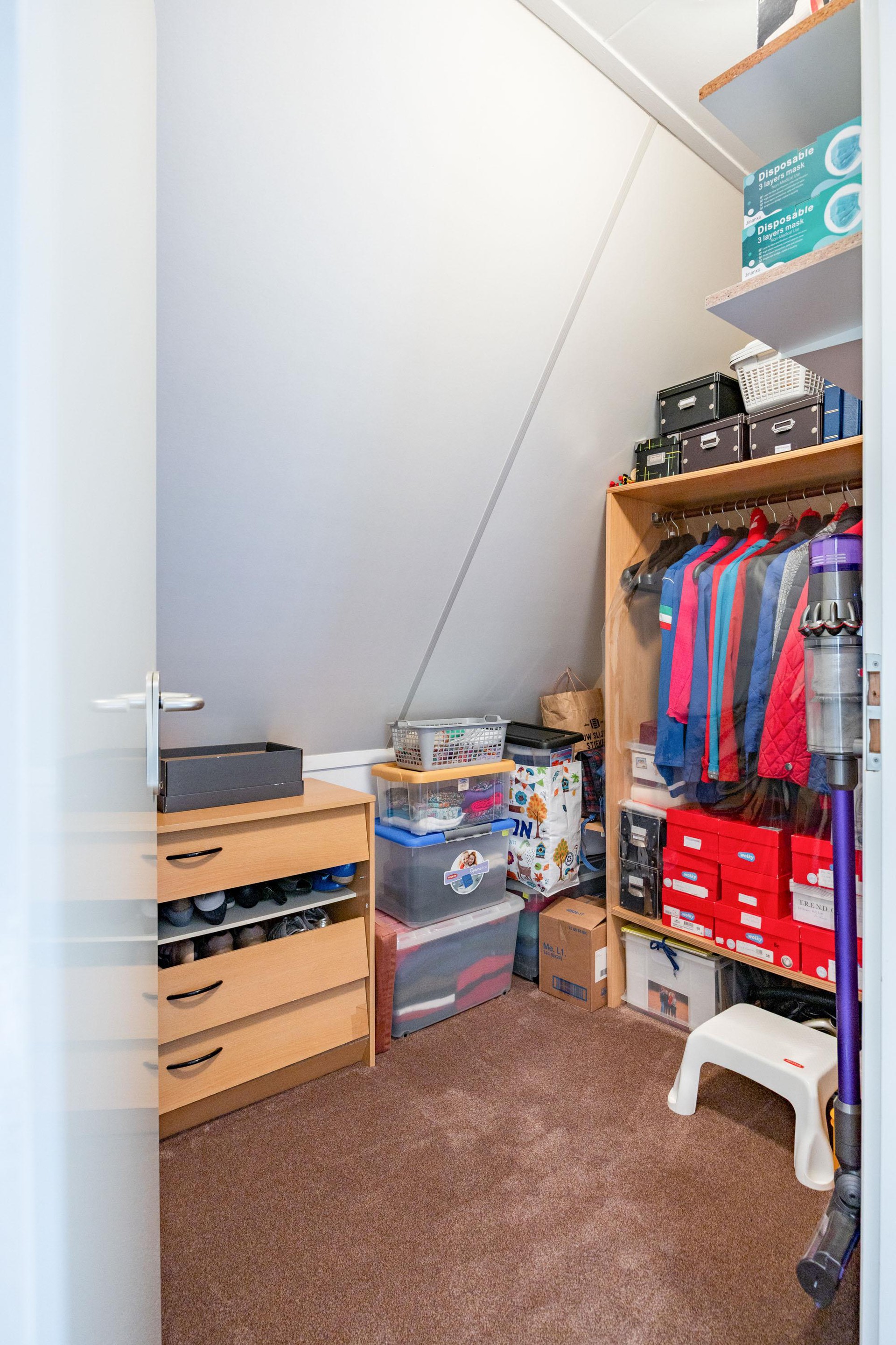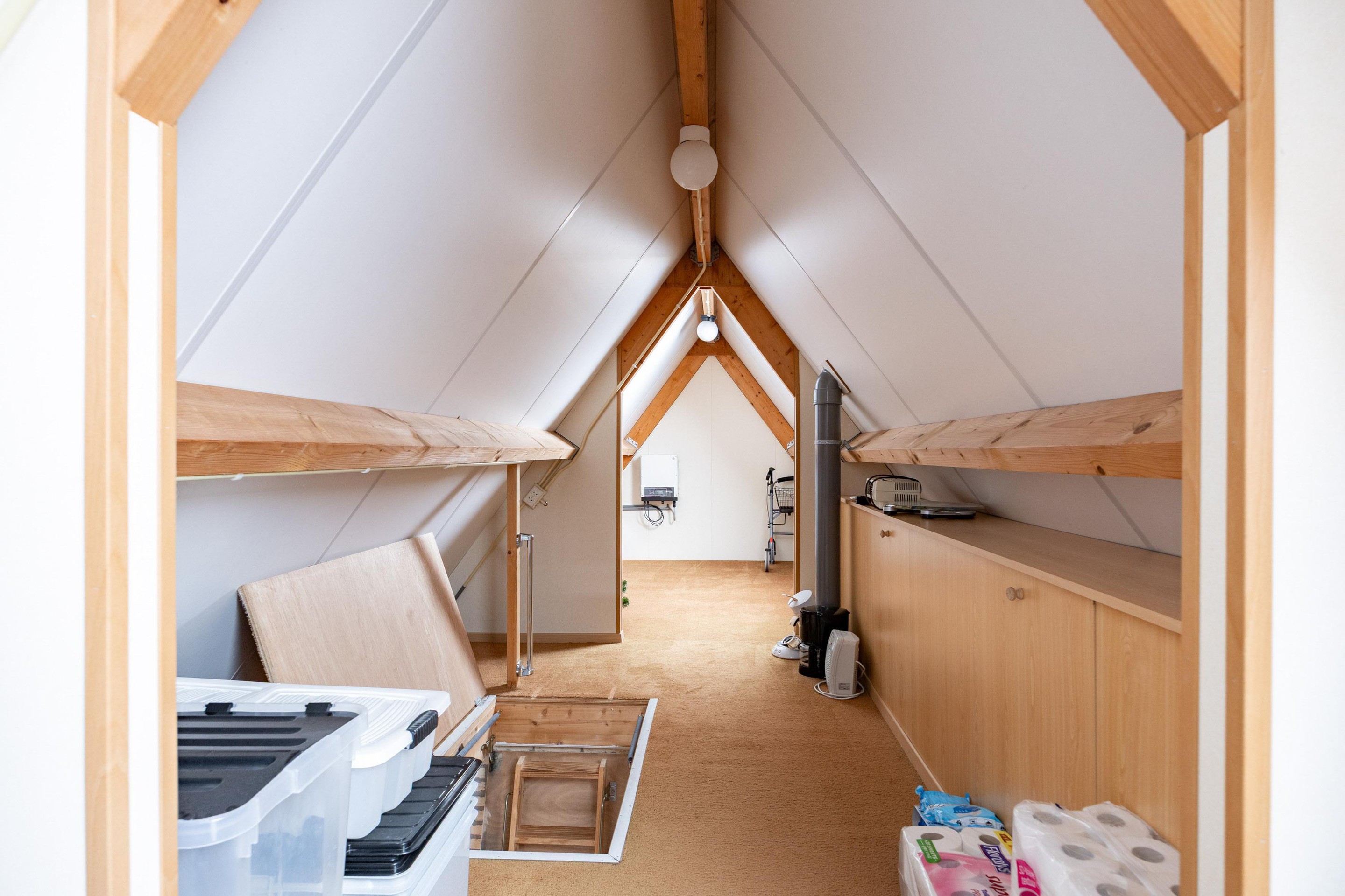 Via een vlizotrap bereikt u de ruime zolder met stahoogte. Deze verdieping op stahoogte biedt volop bergruimte.