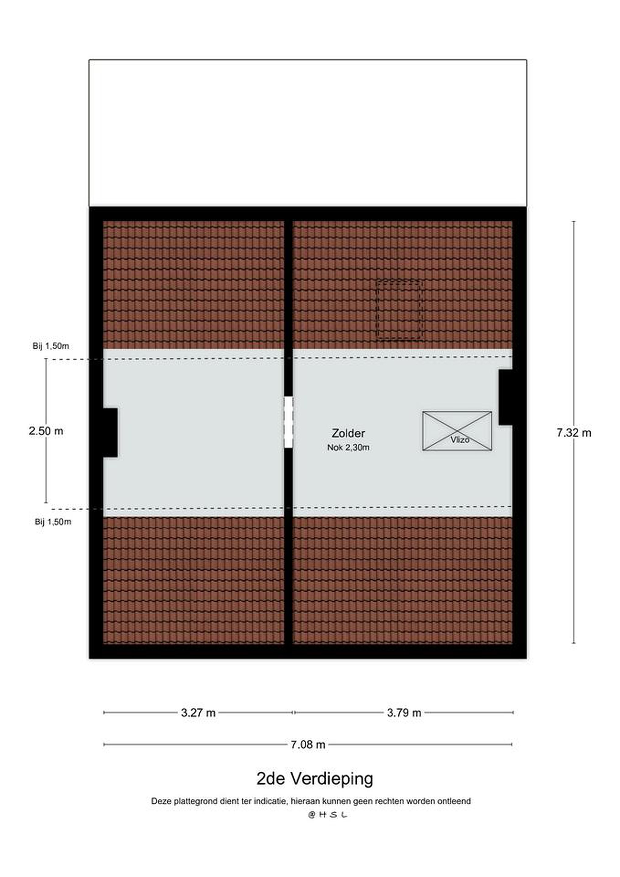 - Via vlizotrap te bereiken bergzolder (circa 18 m2). Met een nokhoogte van circa 2,30 meter is deze ruimte geschikt om, na het realiseren van een vaste trap en eventueel een dakraam of dakkapel, te gebruiken als slaapkamer.
