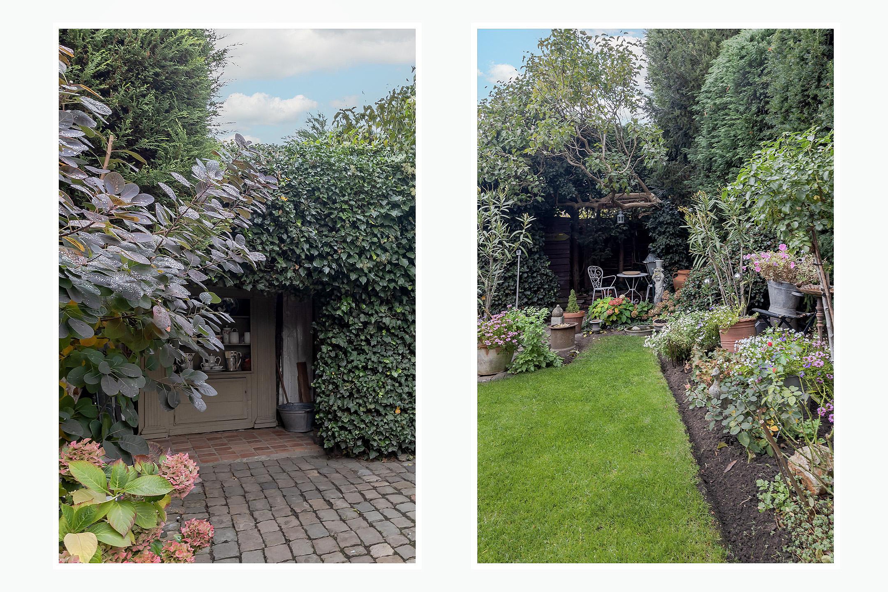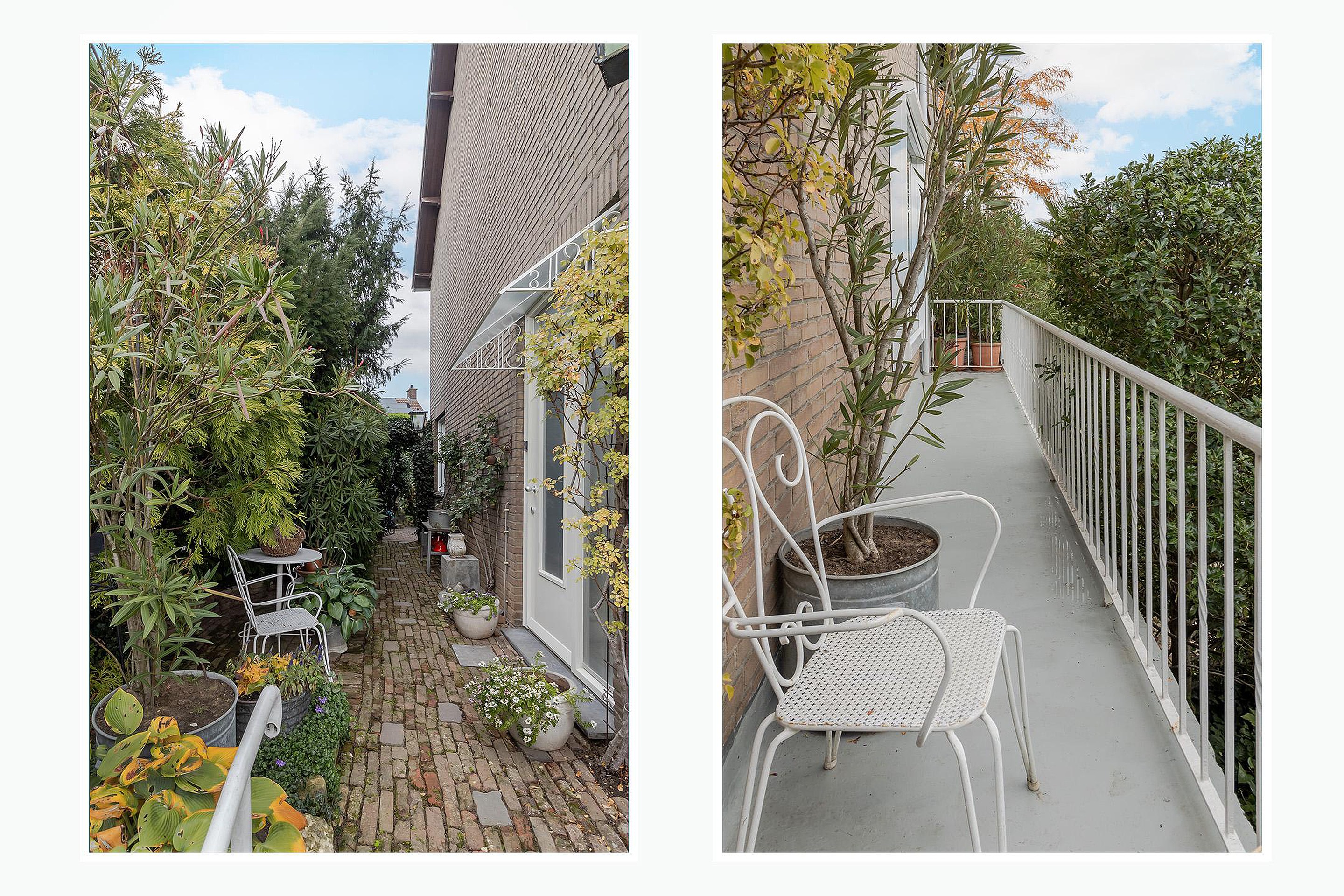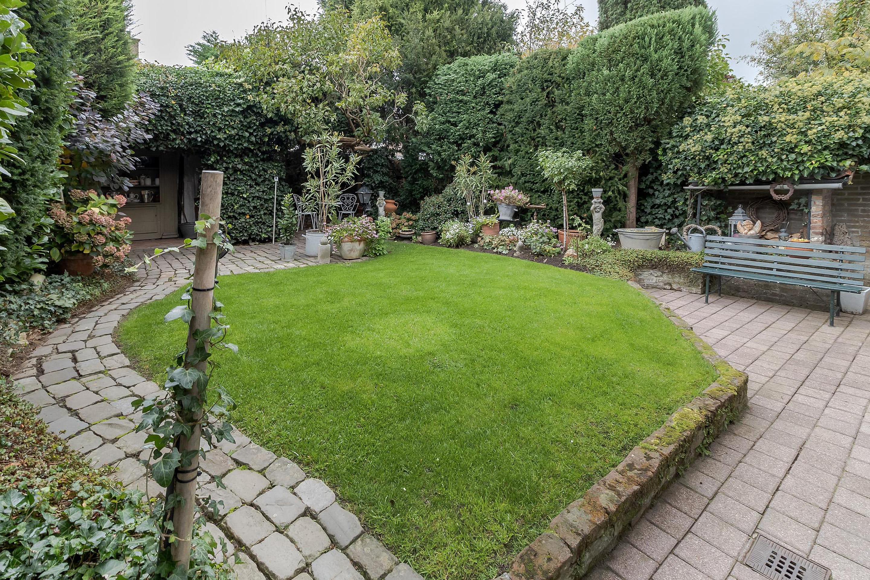 - De achtertuin is gesitueerd op het noordwesten en is fraai aangelegd met een gazon, borders met diverse (vaste) planten en een terras. De tuin heeft een achterom via de zijkant van de woning.
