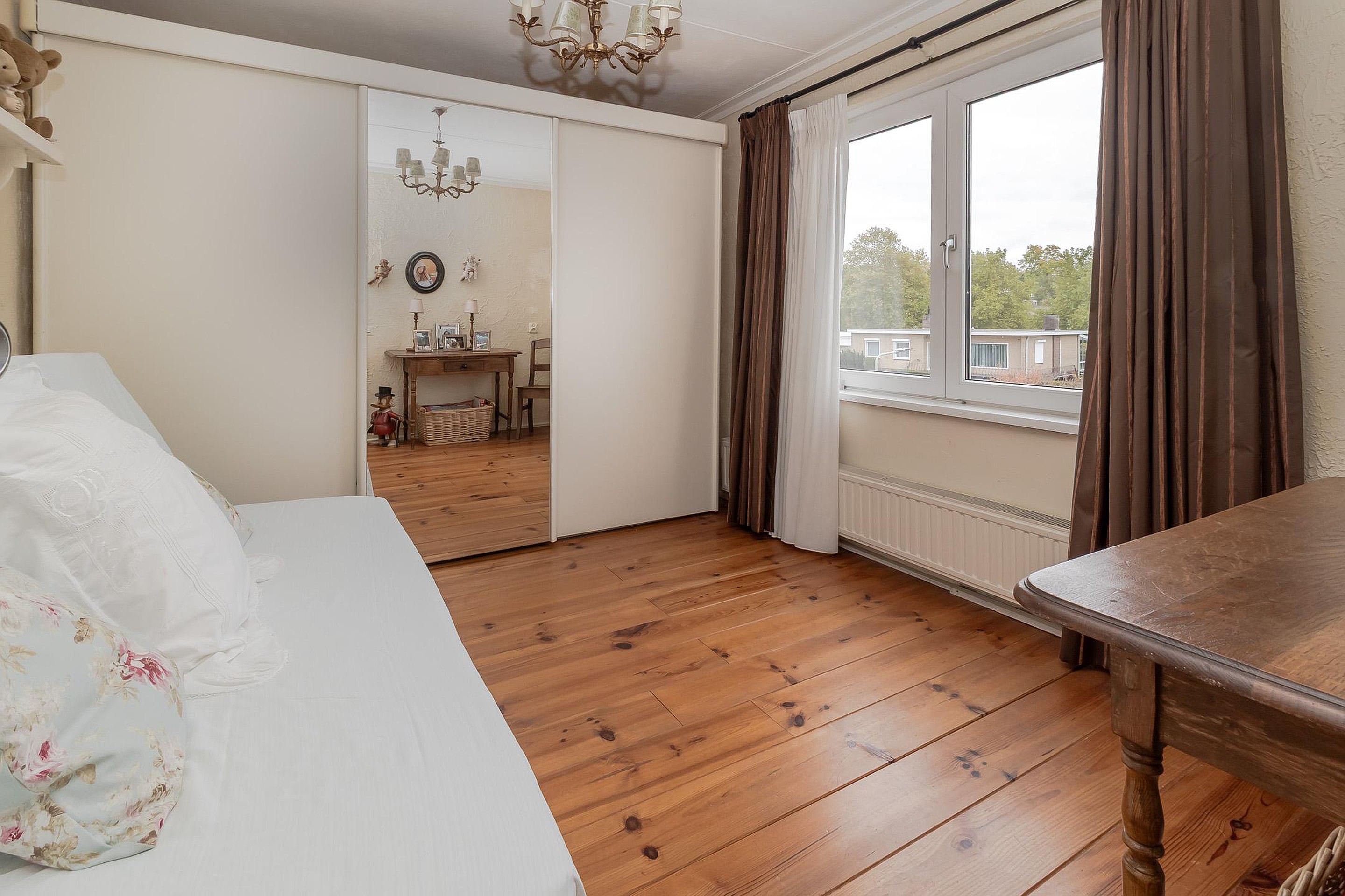 - Slaapkamer 2 (circa 15 m2), gelegen aan de achterzijde en voorzien van een houten vloer. Een vlizotrap geeft vanuit deze kamer toegang tot de zolderverdieping.