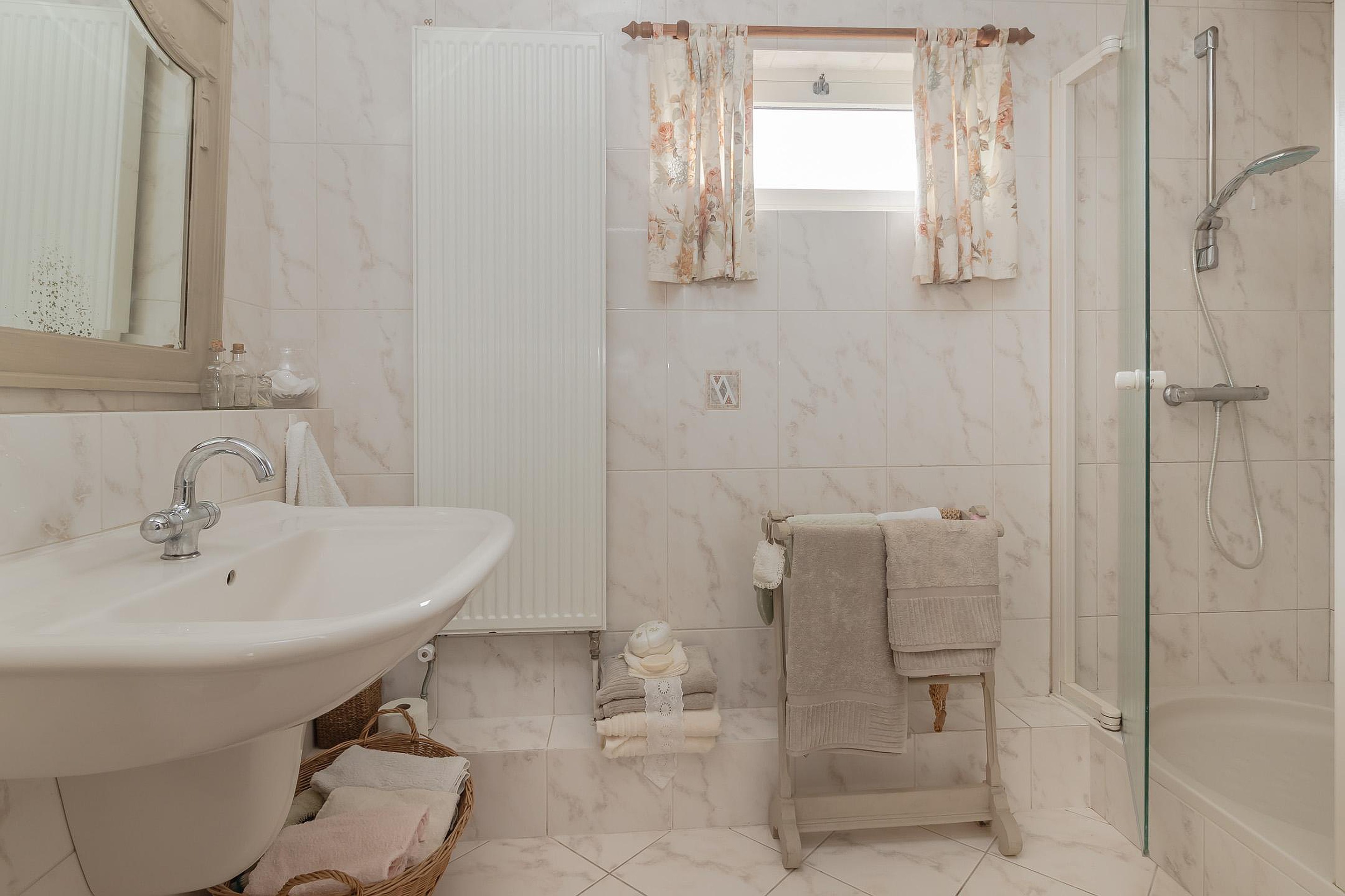 - Geheel betegelde badkamer (circa 5 m2) in neutrale kleurstelling. De badkamer is voorzien van een douche, wastafel en wandcloset.
