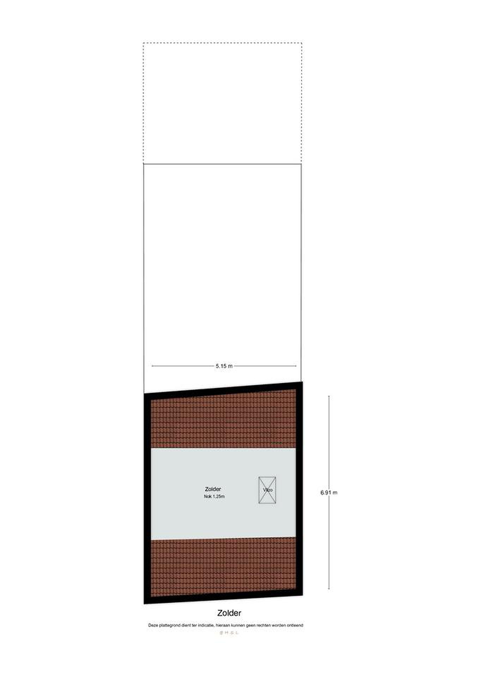 - Via vlizotrap te bereiken bergzolder (nokhoogte circa 1,25 m).