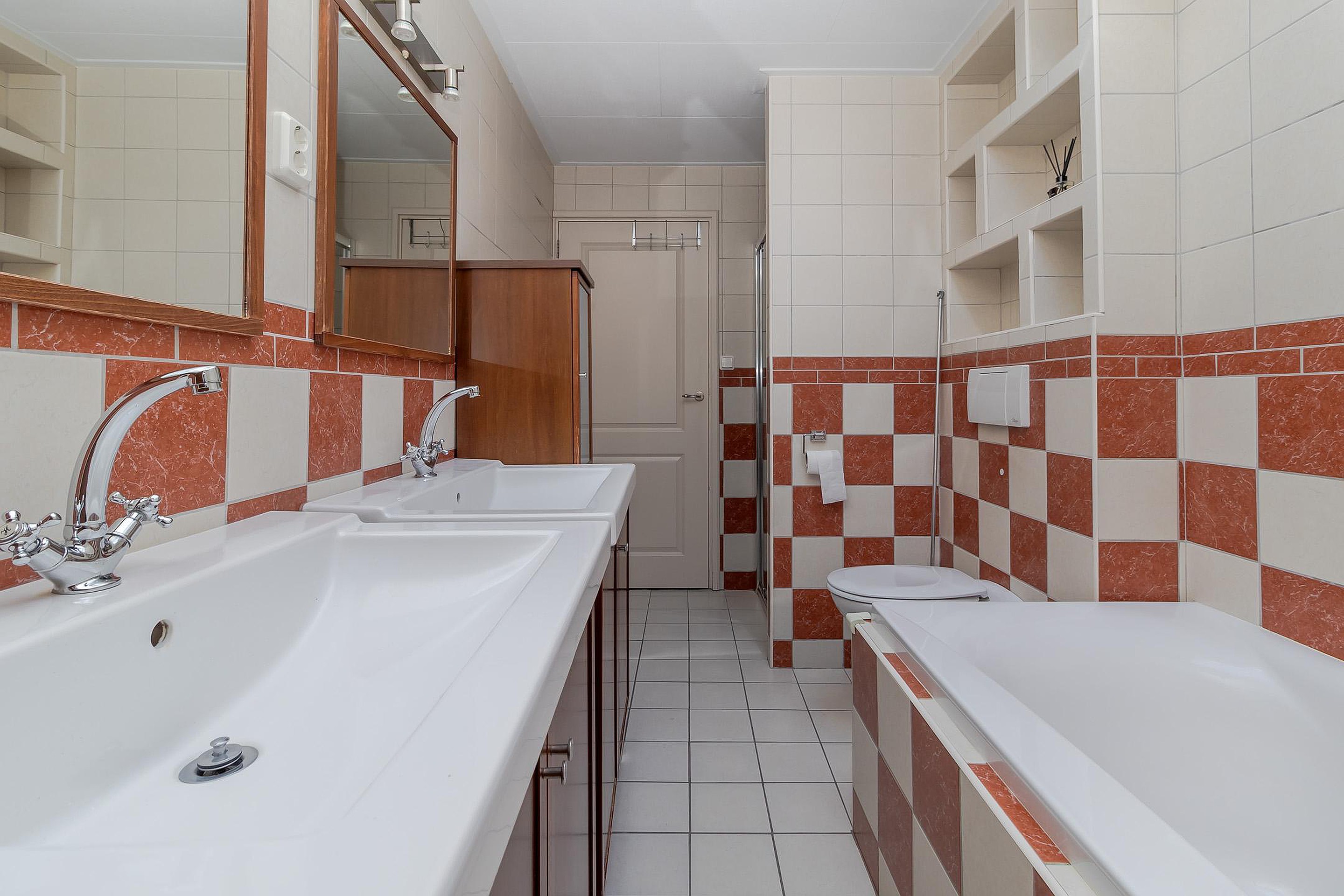 - Geheel betegelde badkamer (circa 7,5 m2) voorzien van een inloopdouche, ligbad, twee wastafels met onderkast en wandcloset. Tevens daglichtinval via een lichtkoepel welke geopend kan worden.
