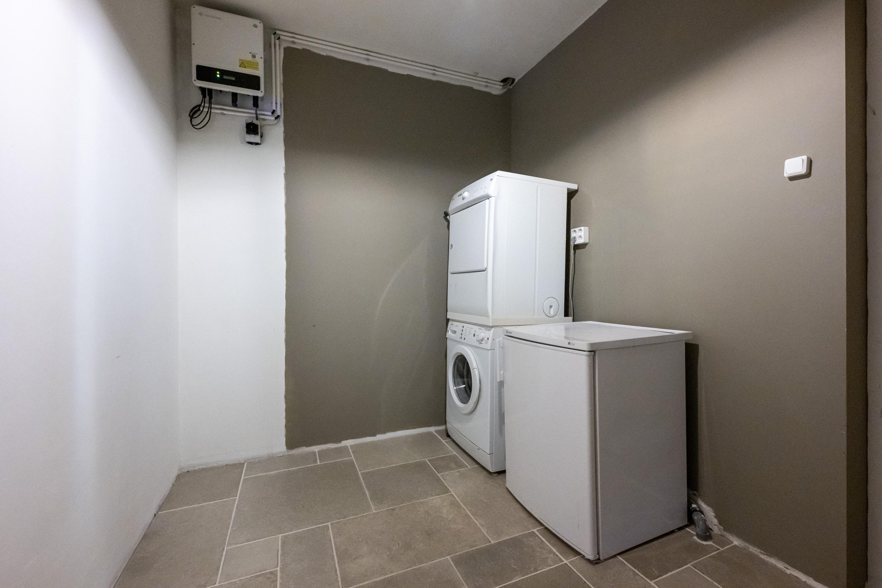 Witgoedaansluitingen, plavuizen vloer v.v. vloerverwarming.