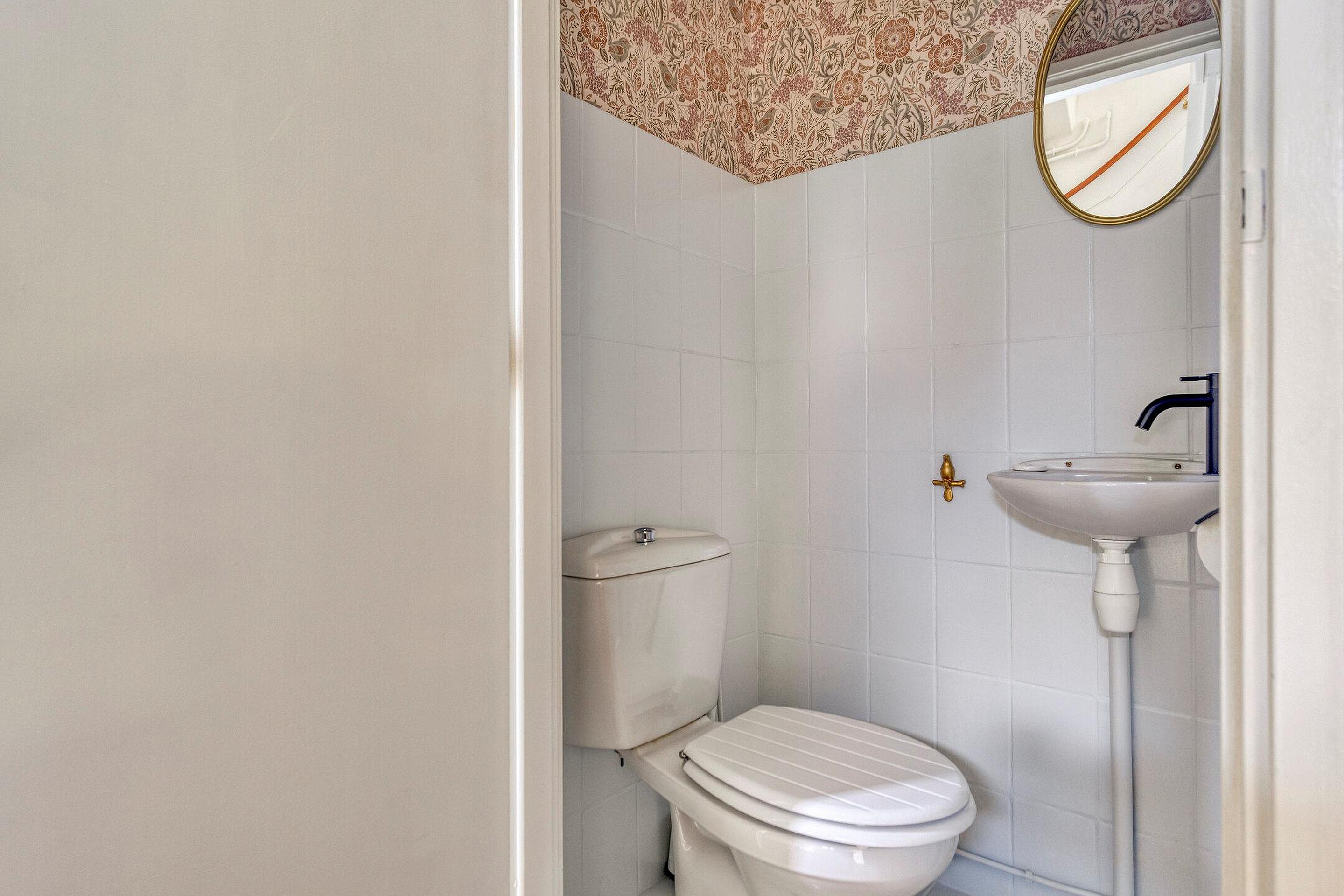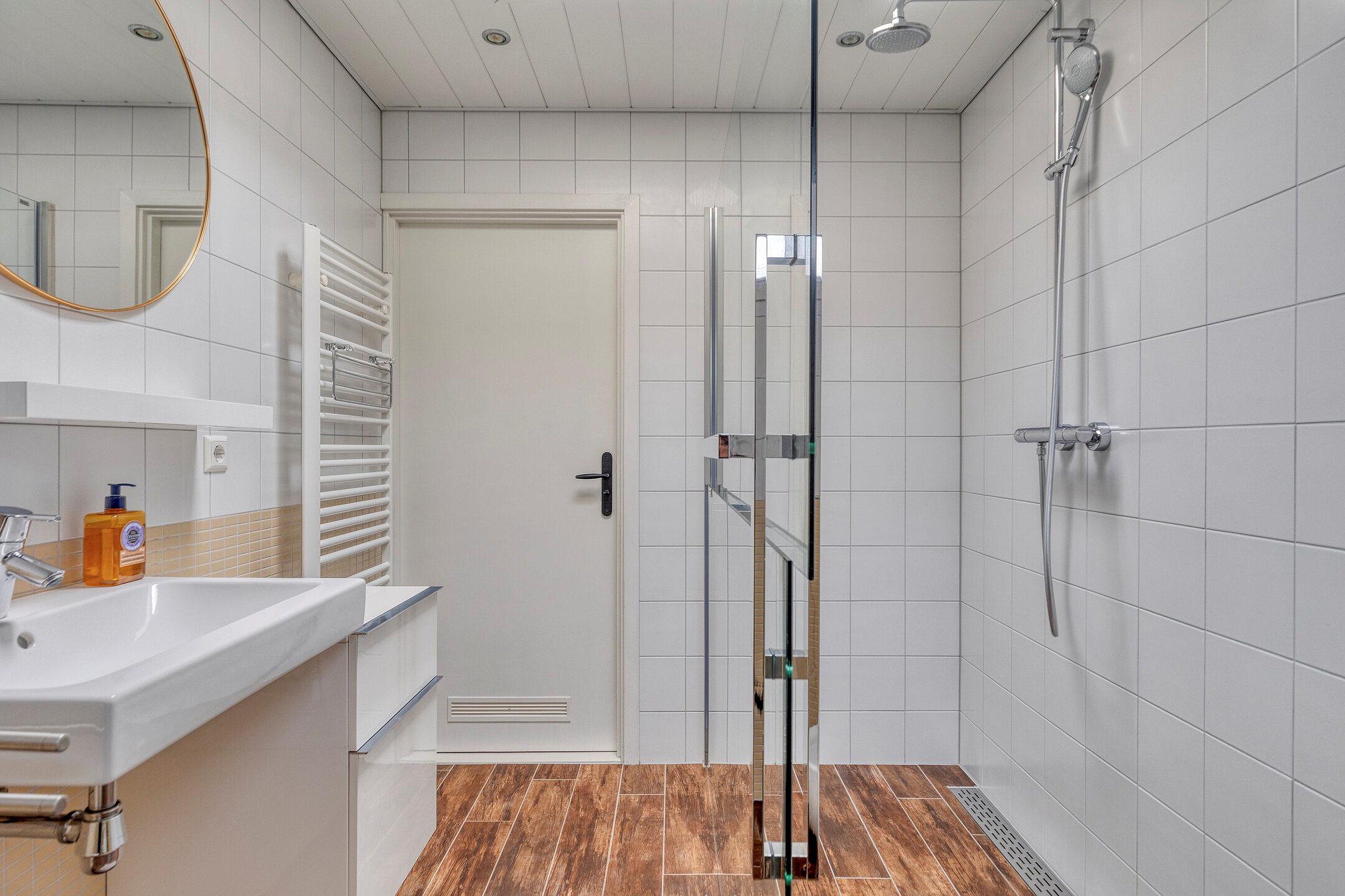 Begane grond Entree met toilet, opgang naar de eerste verdieping en toegang tot de ruime woonkamer met veel lichtinval. De glas in lood ramen en de houtkachel geven de woonkamer extra karakter. De keuken sluit aan op de woonkamer en heeft een praktische hoek indeling met o.a. een combi-oven, vaatwasser en keramische kookplaat. Extra aantrekkelijk is de royale slaapkamer op de begane grond, direct naast de badkamer met ruime inloopdouche; ideaal voor levensloopbestendig wonen. Aan de achterzijde bevindt zich een tuinkamer, eveneens met houtkachel, die uitkijkt over de uniek aangelegde tuin.