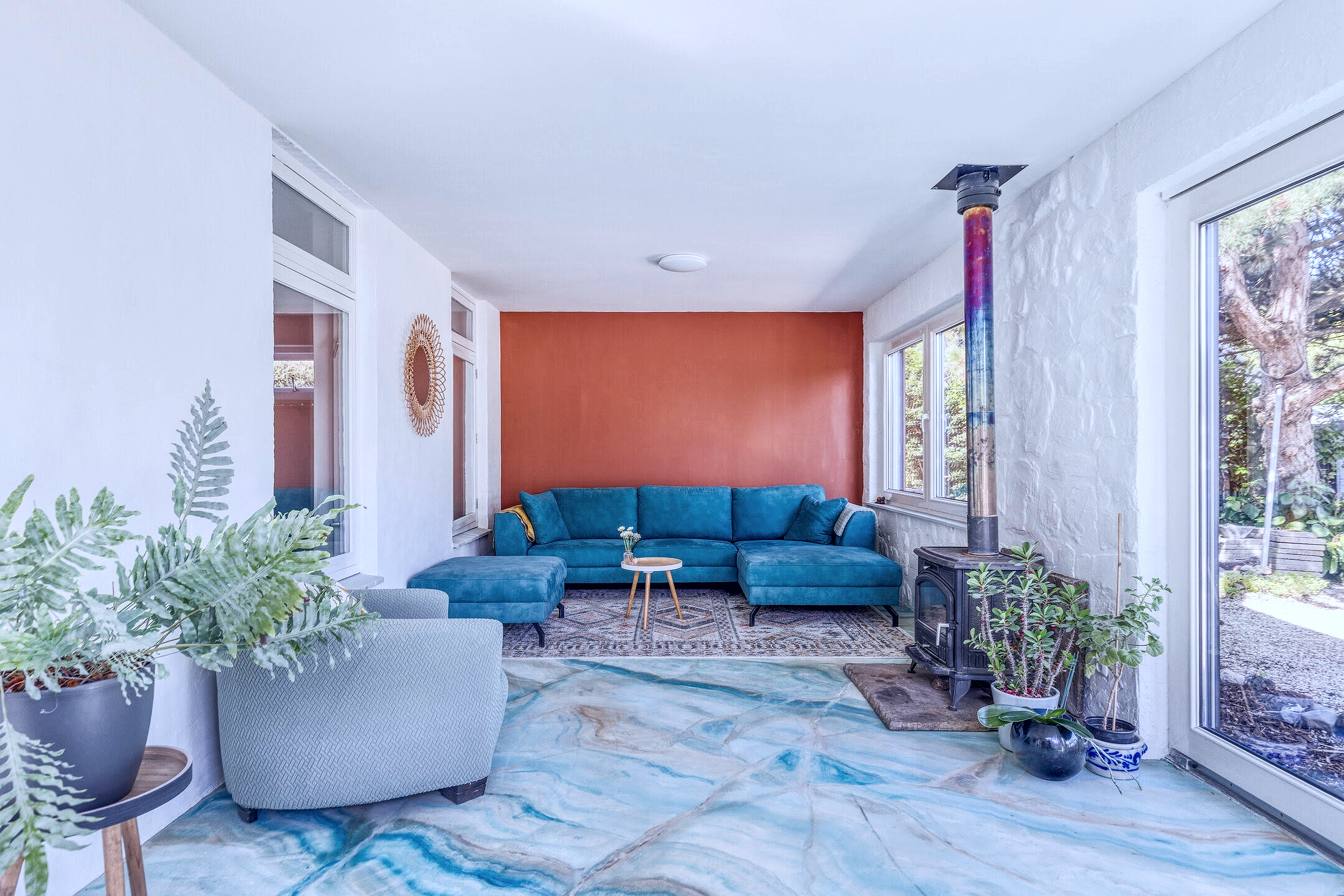 - Gezellige woon- en tuinkamer voorzien van een houtkachel