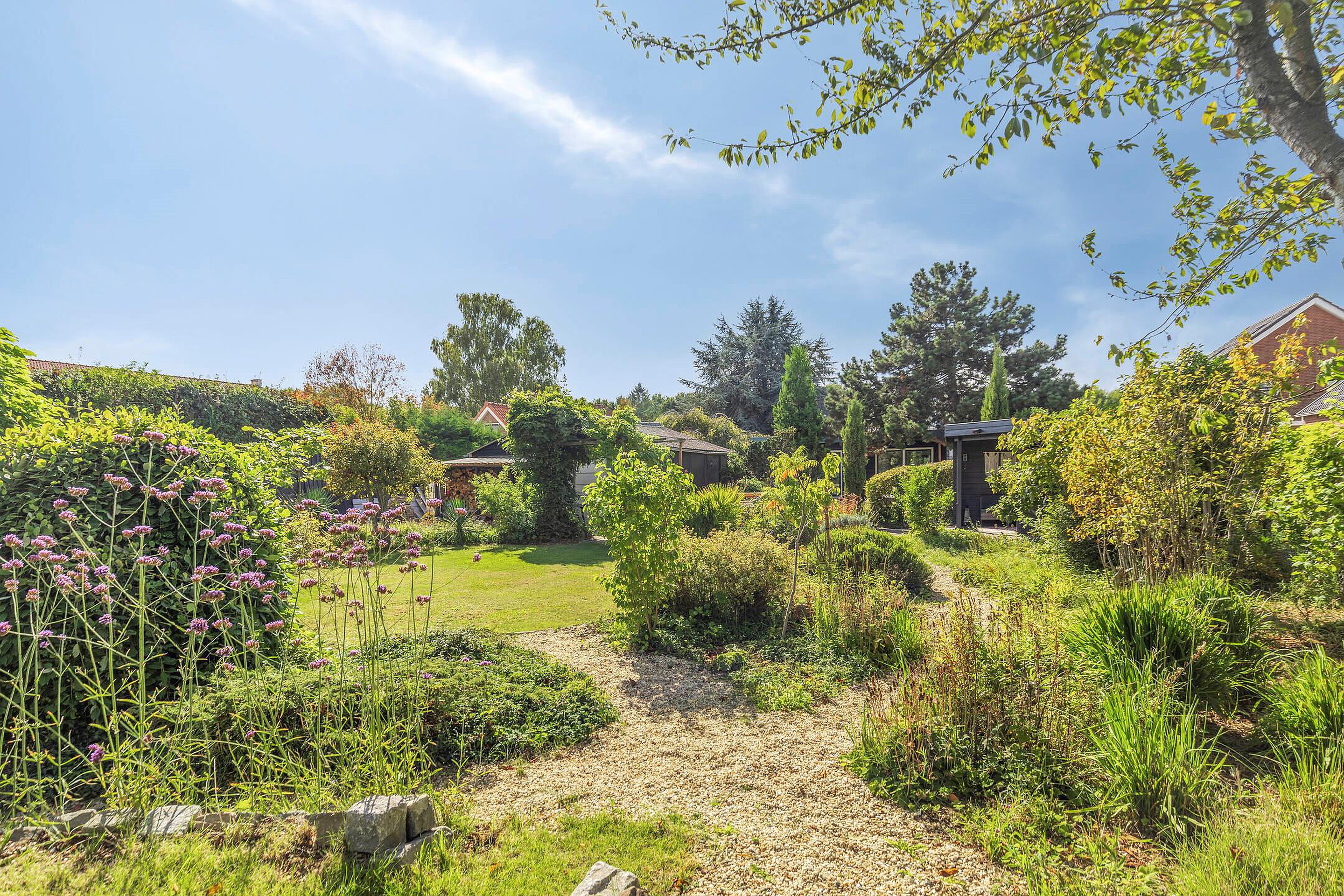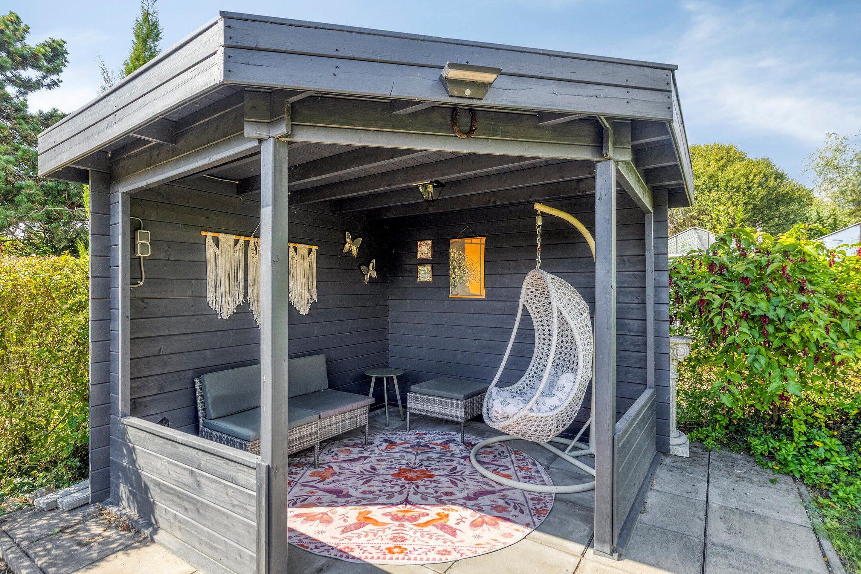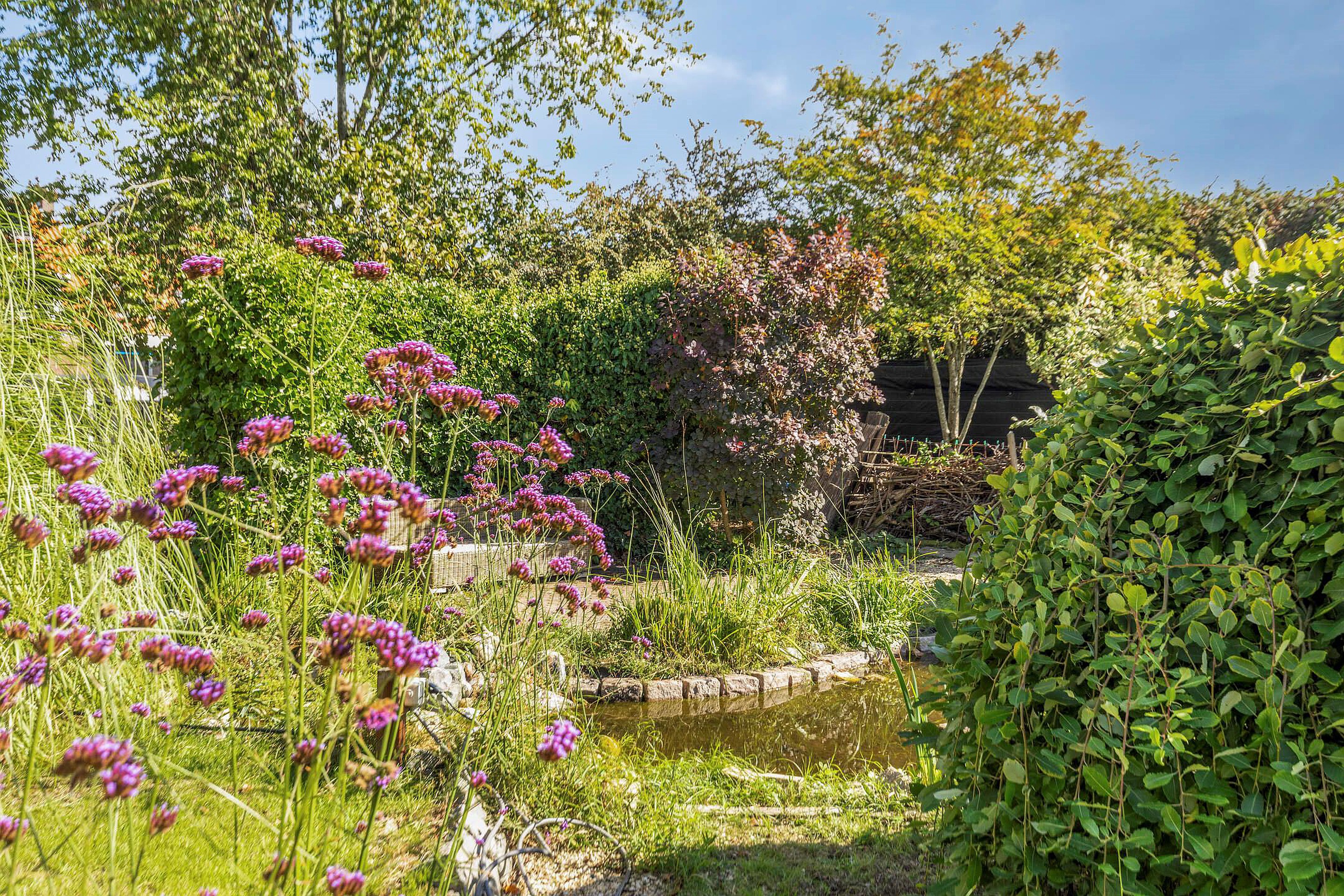 Tuin De royale tuin is speels aangelegd en biedt volop groen en privacy. De tuin, met natuurvijver, nodigt uit tot buitenleven en is in alle seizoenen een plaatje om te zien. Er zijn meerdere zitplekken, een overkapping en een ruime schuur die ideaal is voor hobbyisten of extra opslag. De tuin biedt ook mogelijkheden voor het houden van kippen of het aanleggen van een moestuin. Daarnaast liggen er 10 zonnepanelen op het dak, wat bijdraagt aan lage energielasten en duurzaamheid.