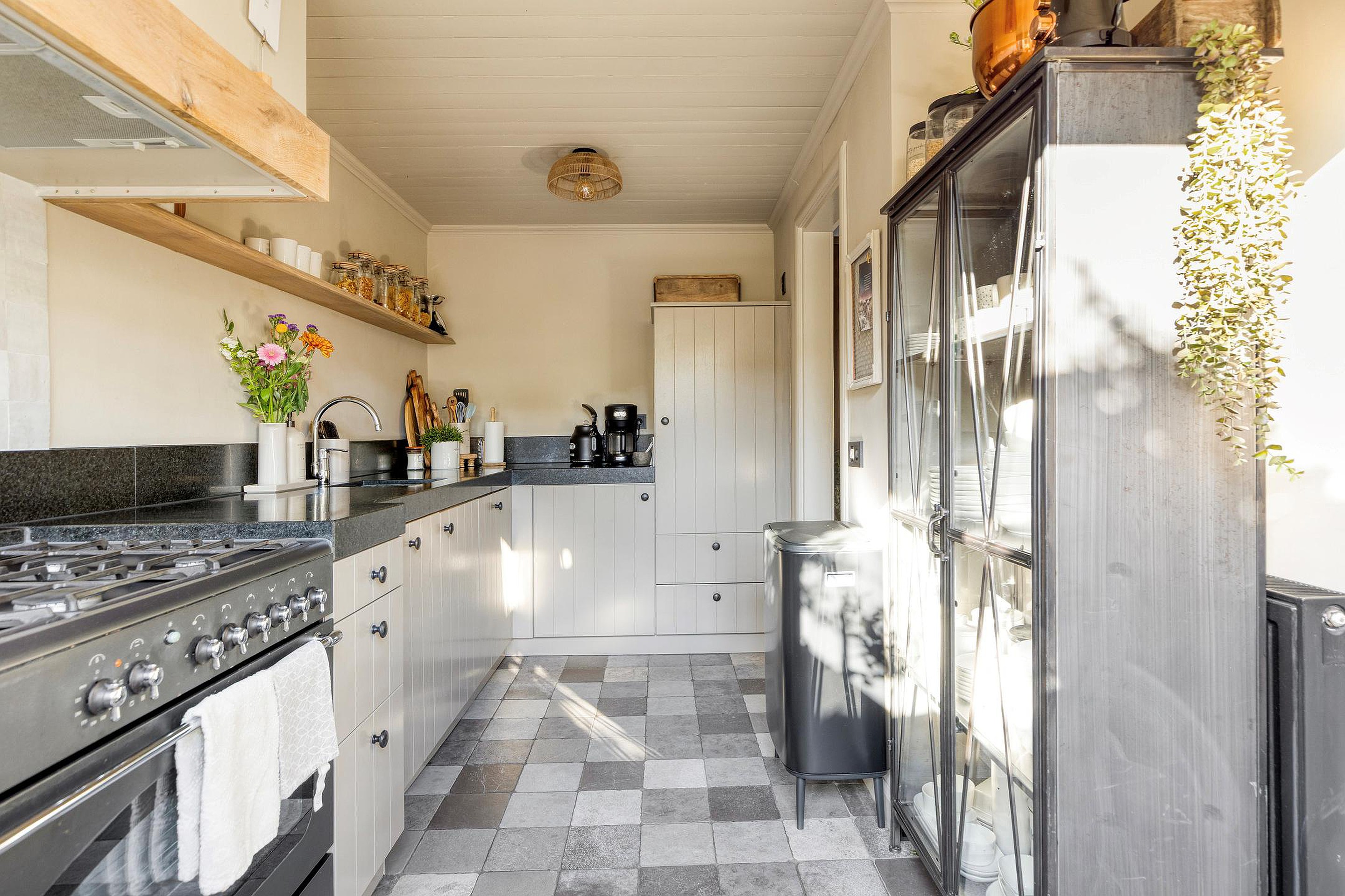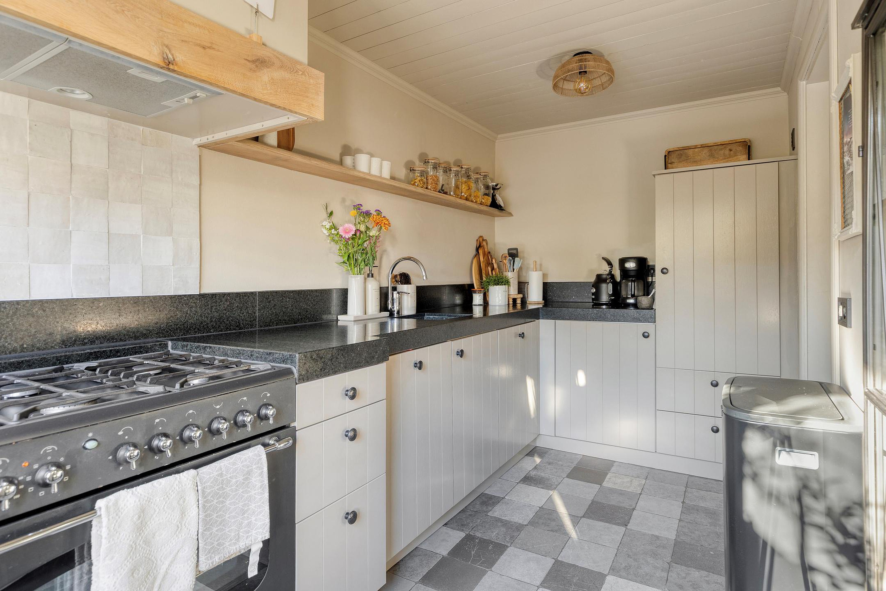 Aan de achterzijde bevindt zich de keuken, die recent is aangepakt en direct klaar is voor gebruik. Aansluitend vind je de badkamer, die verzorgd is uitgevoerd en voorzien van modern sanitair.