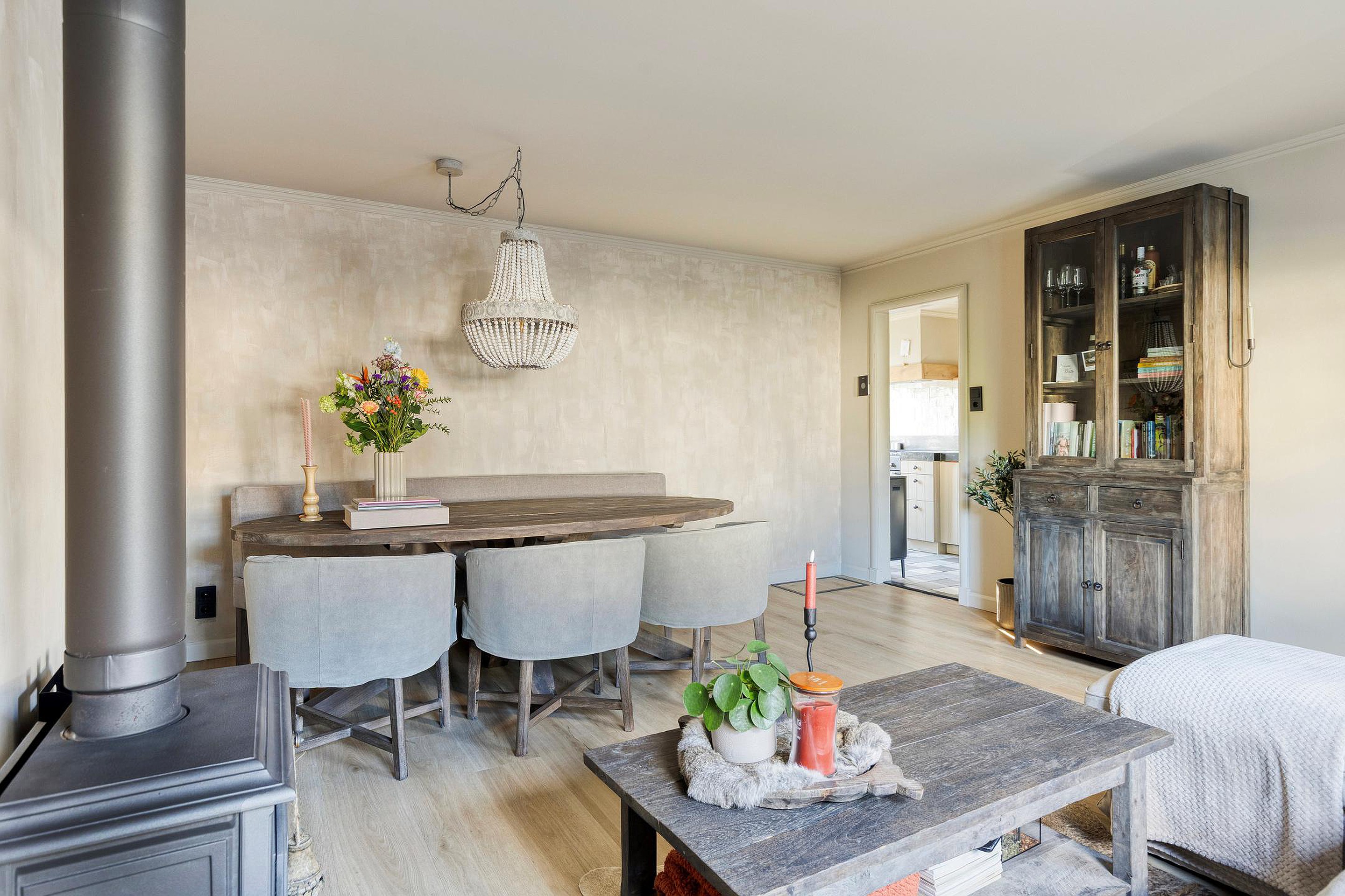 Binnen tref je een praktische indeling met een lichte woonkamer aan de voorzijde. De ruimte voelt prettig aan en is netjes afgewerkt.