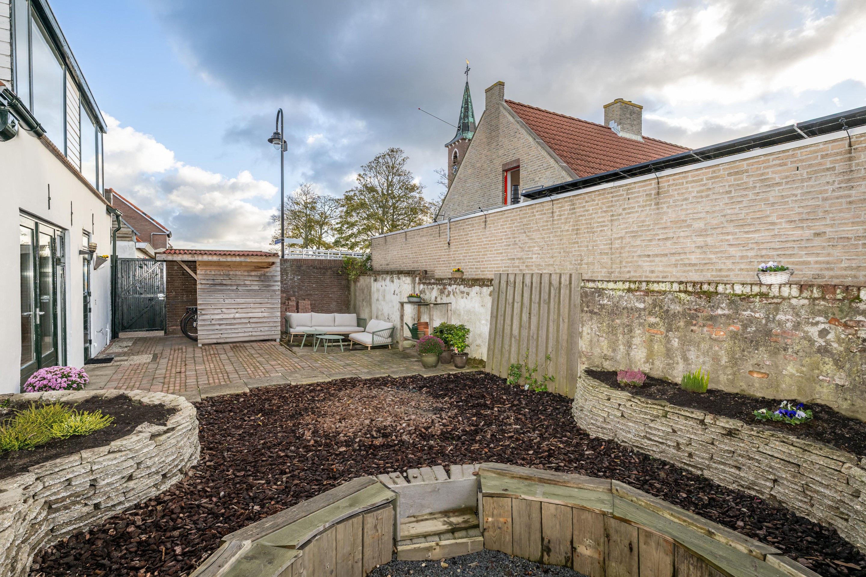 De achtertuin, gelegen op het zuidoosten, is ongeveer 6 meter diep en 14 meter breed. Hier geniet u volop van de zon, van de vroege ochtend tot aan het eind van de middag. Het is een heerlijke plek om te ontspannen, te tuinieren of gezellig met familie en vrienden te barbecueën. De tuin biedt bovendien voldoende privacy, wat bijdraagt aan het gevoel van rust en vrijheid dat deze woning kenmerkt.