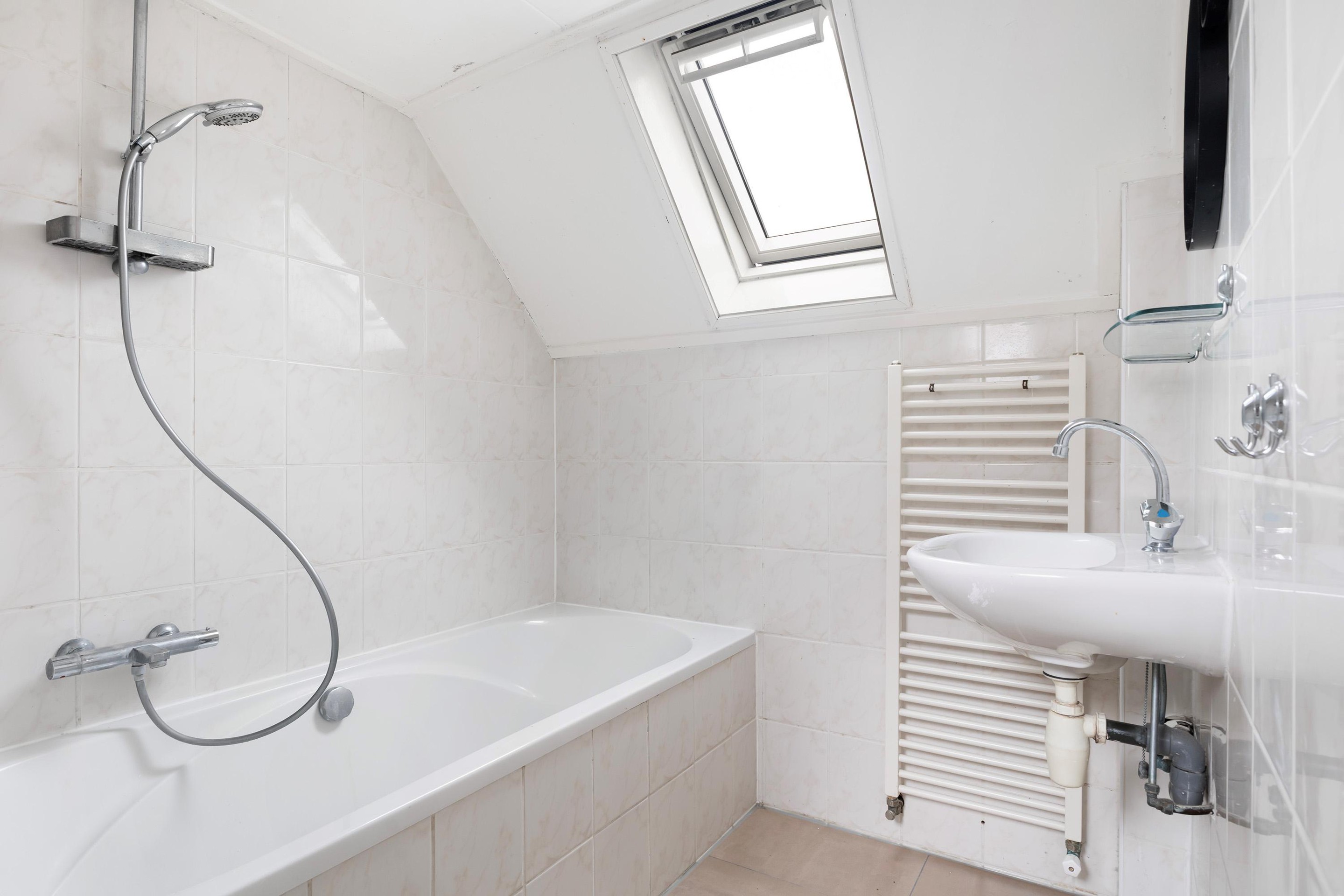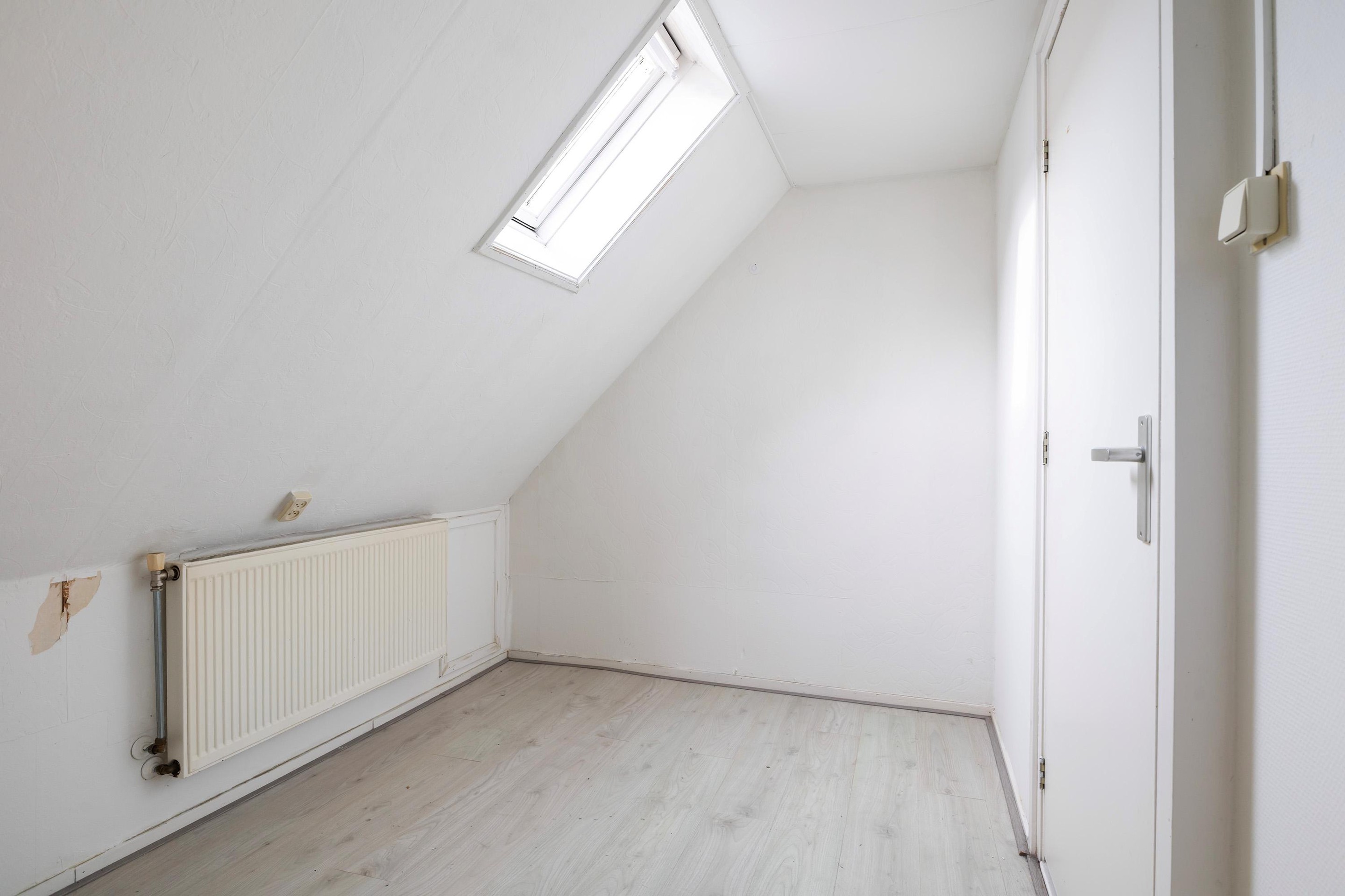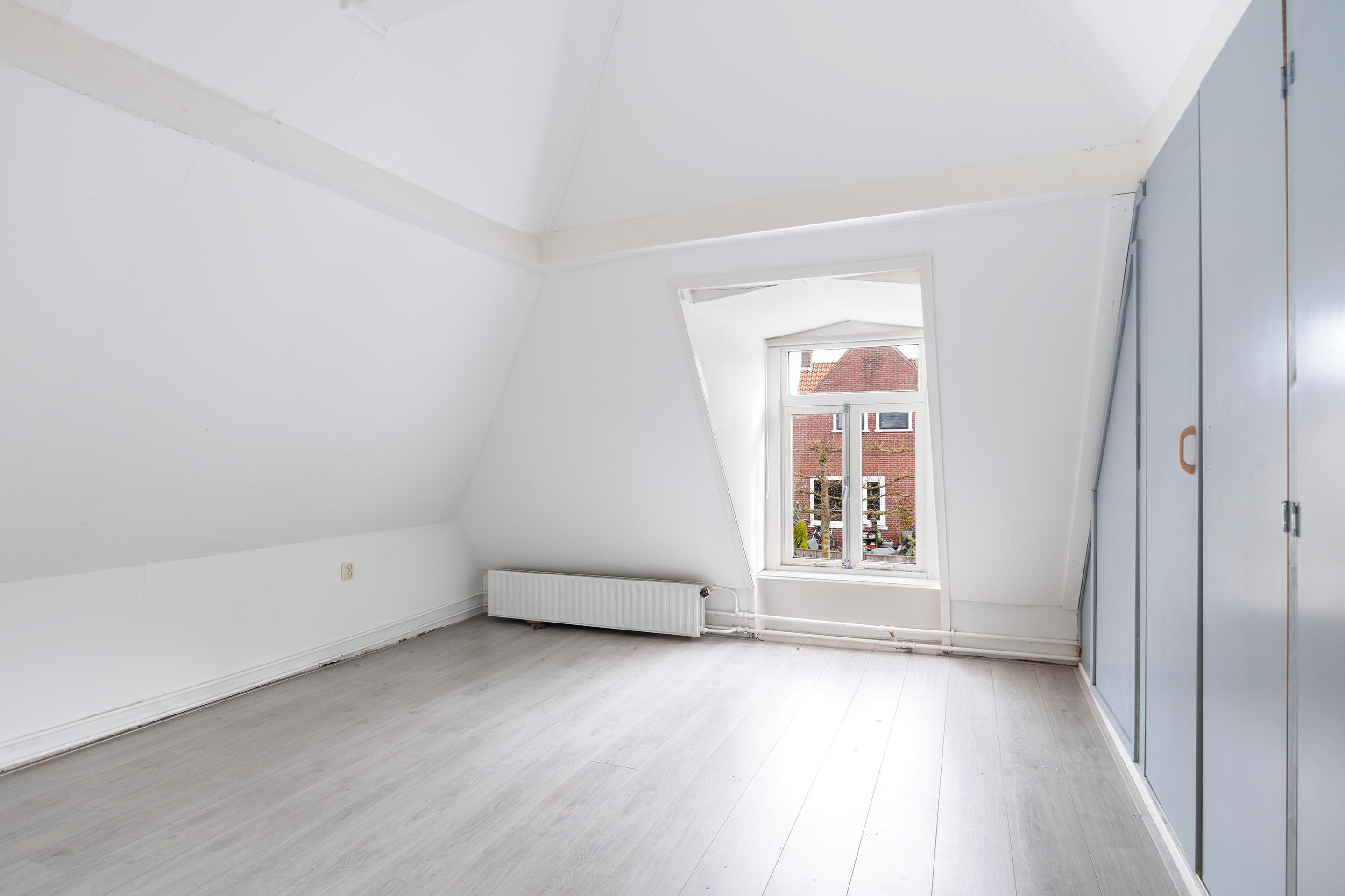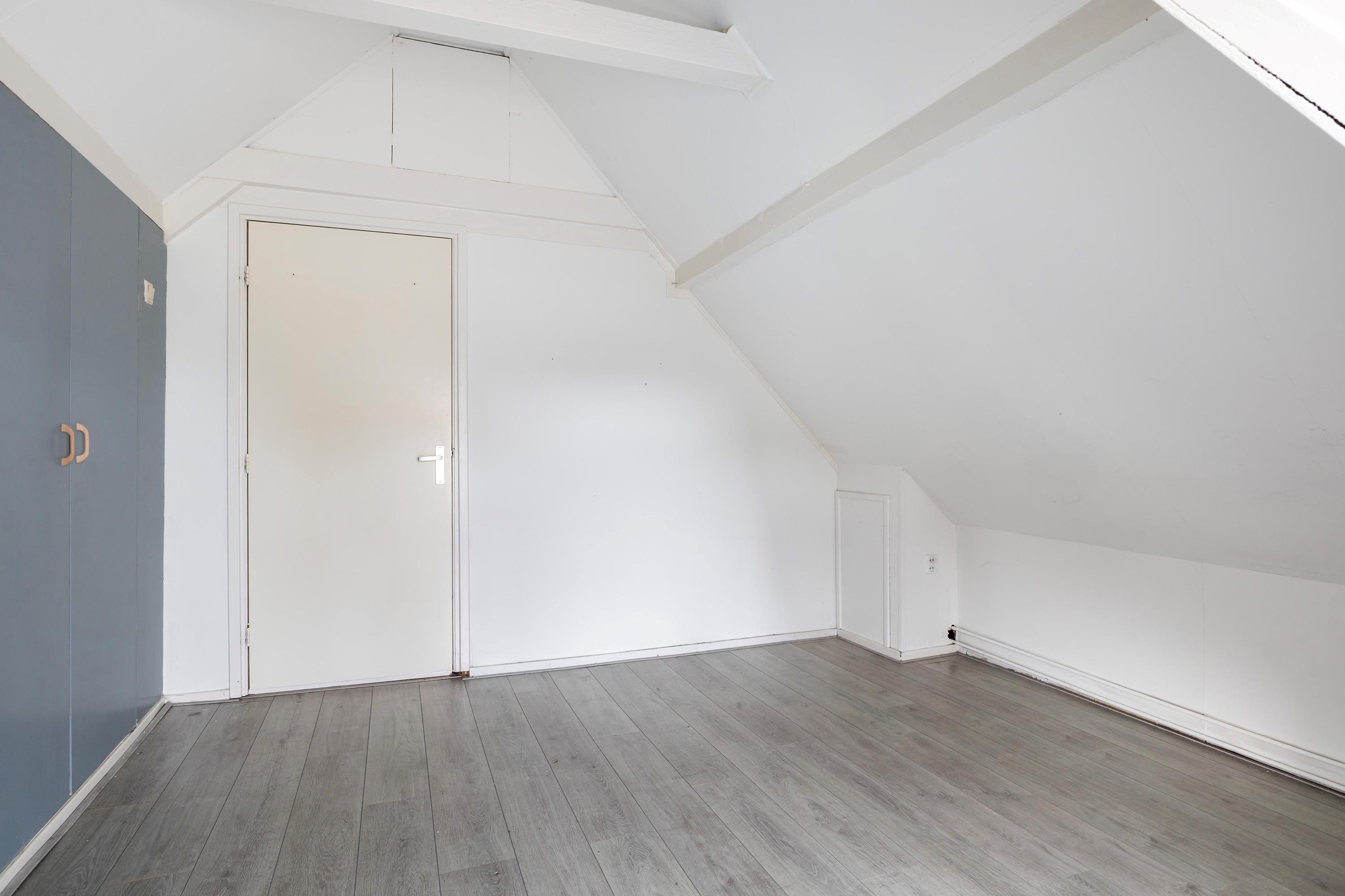 Op de verdieping bevinden zich drie slaapkamers, elk met een eigen indeling door de speelse kapvorm. De grootste slaapkamer beschikt over vaste kastruimte. De overige kamers zijn ideaal als kinder-, werk- of hobbykamer. De badkamer is compact en voorzien van een ligbad met douche en wastafel, met daglicht via het dakraam.