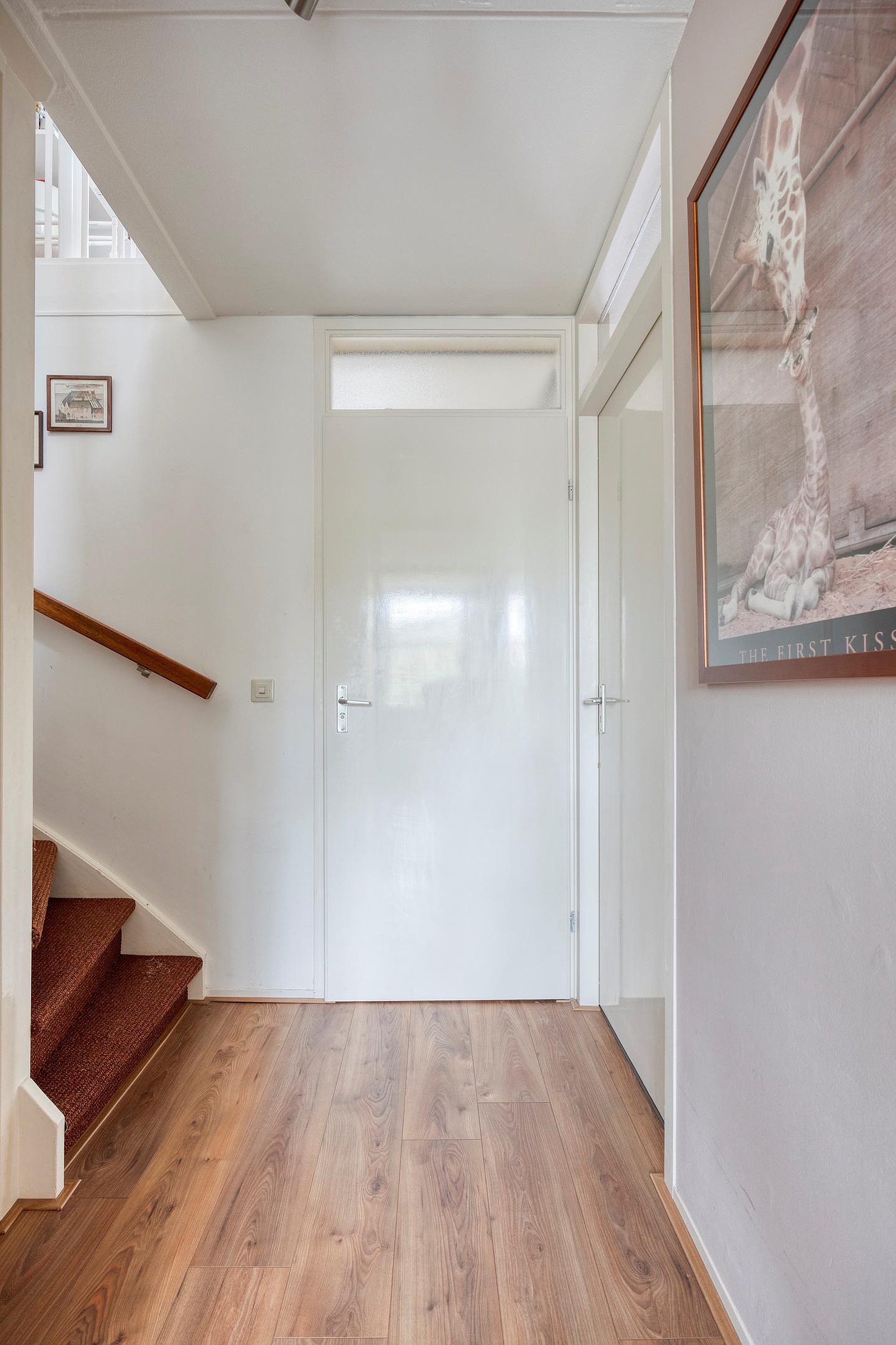 Via de hal stap je de woonkamer binnen; een heerlijke, lichte leefruimte met vrij uitzicht op de achtertuin. De strak gestuukte wanden, frisse kleuren en lichte eiken parketvloer zorgen samen voor een sfeervol geheel. Een plek waar je je direct thuis voelt. De open keuken aan de voorzijde is uitgevoerd in een lichte kleurstelling en voorzien van diverse inbouwapparatuur, zoals een hetelucht-/stoomoven, koelkast, magnetron en inductiekookplaat. De losse vaatwasser blijft achter.