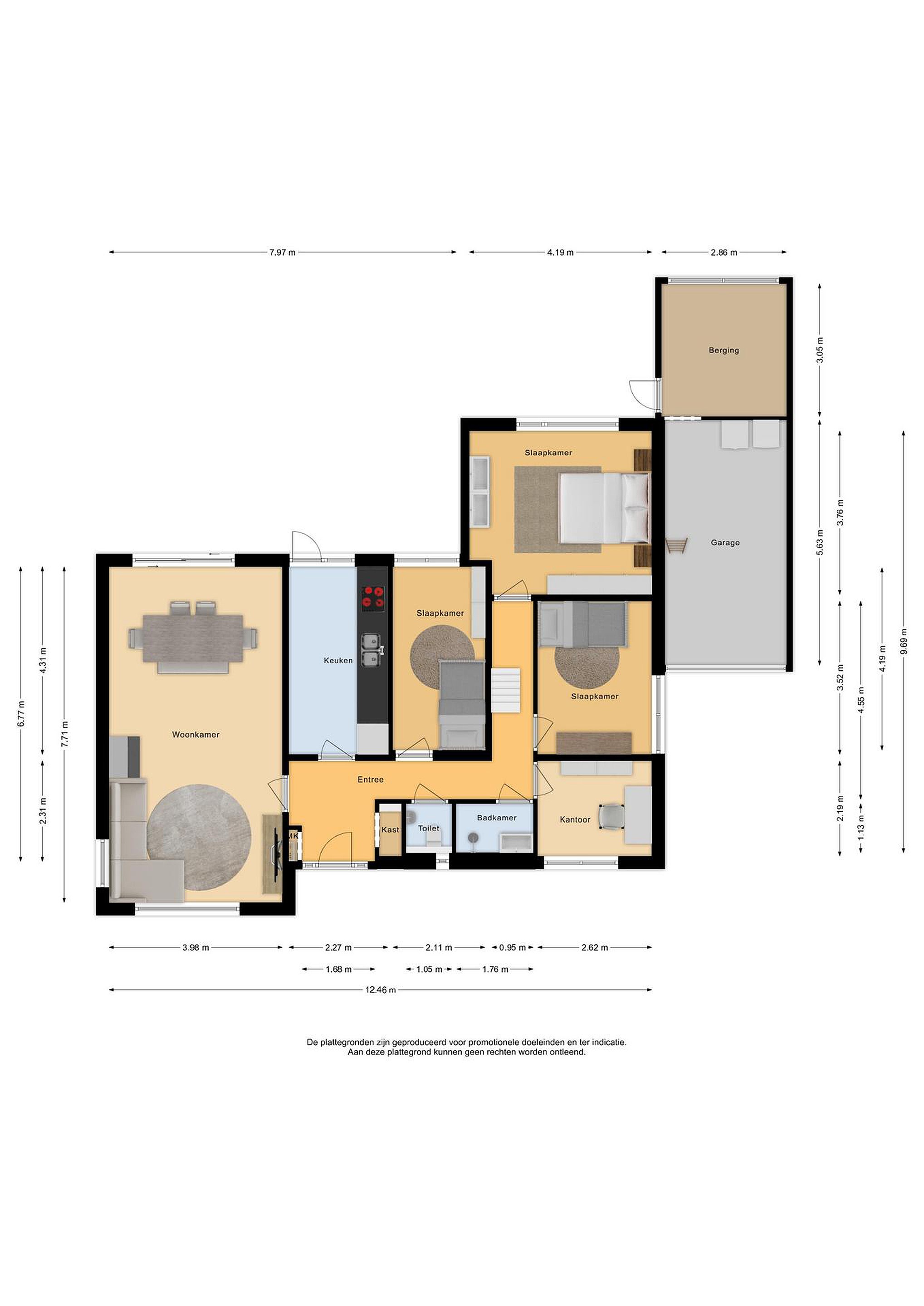 Begane grond Via de entree aan de voorzijde van de woning bereikt u de hal. De hal geeft toegang tot alle ruimtes. Vanuit de woonkamer heeft u leuk zicht op de achtertuin door de grote raampartij.