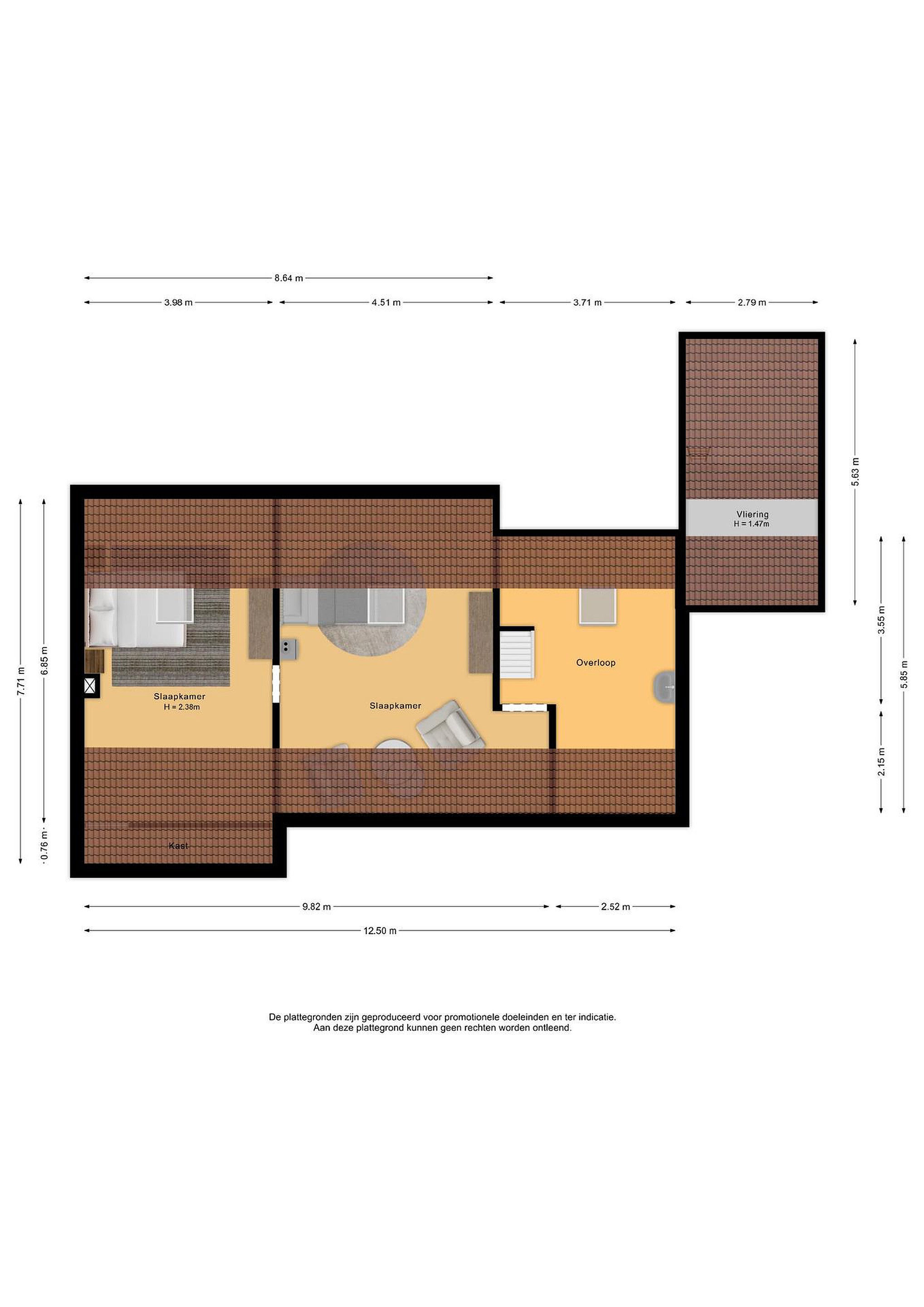 Hier zijn prima mogelijkheden om twee royale slaapkamers te realiseren.