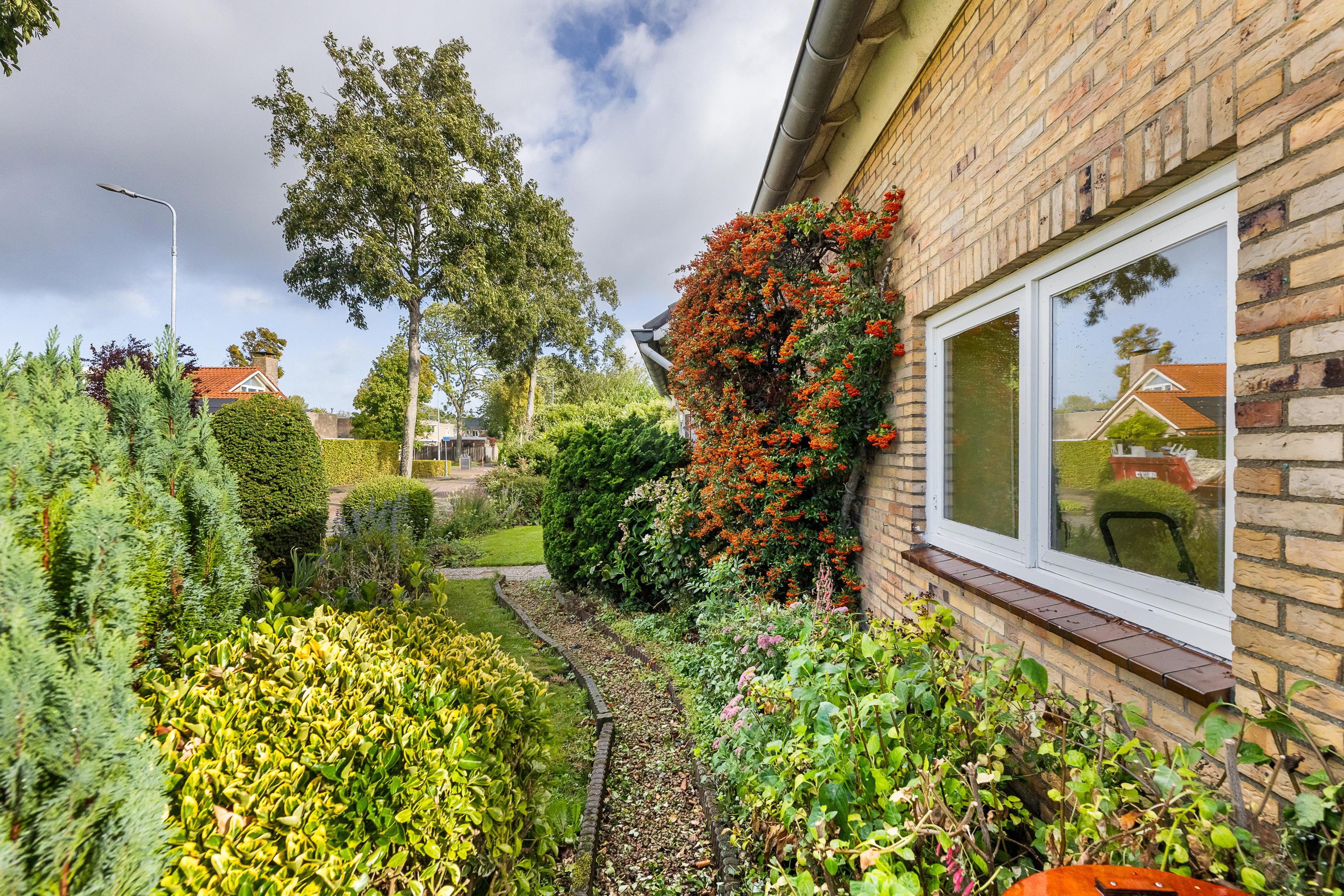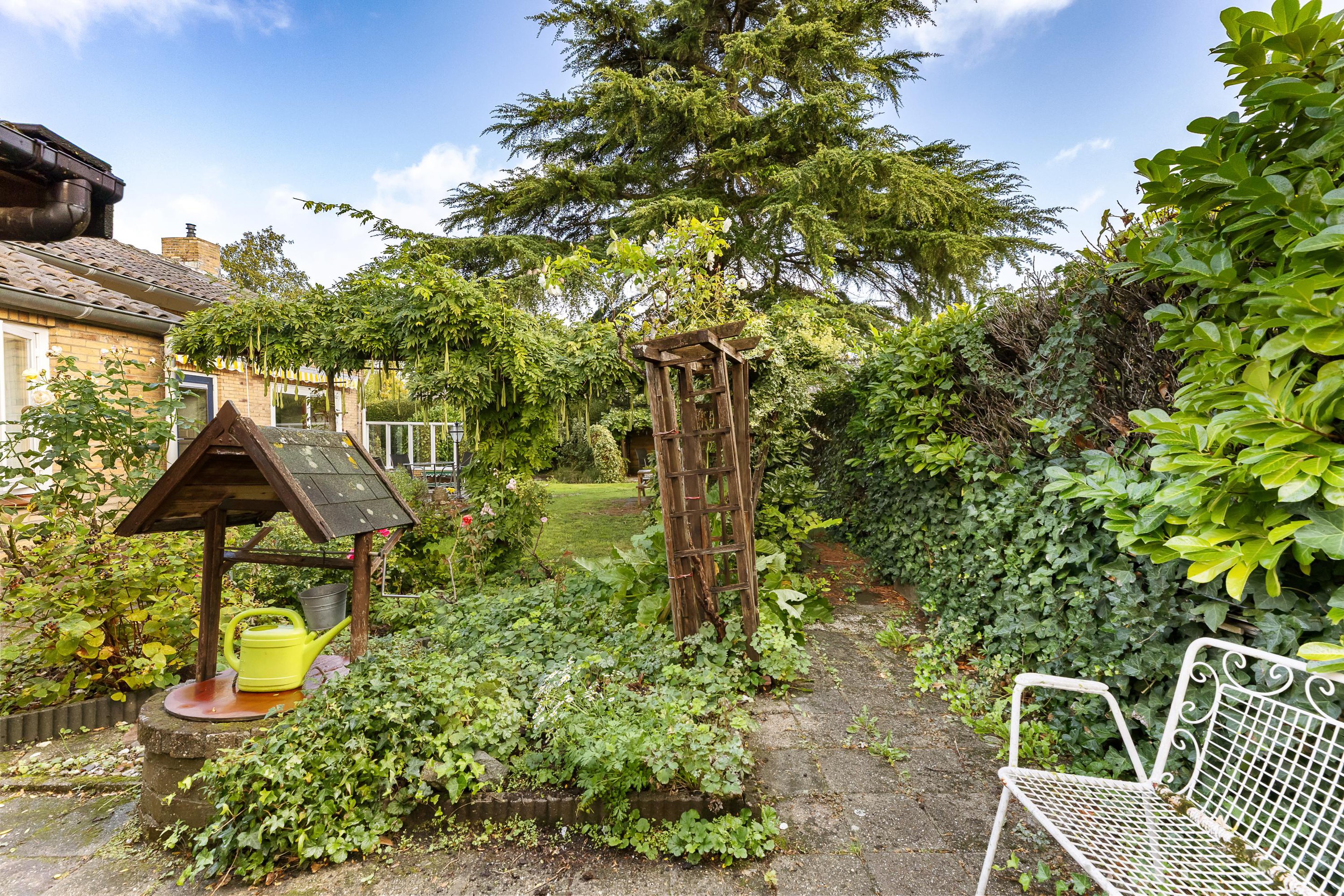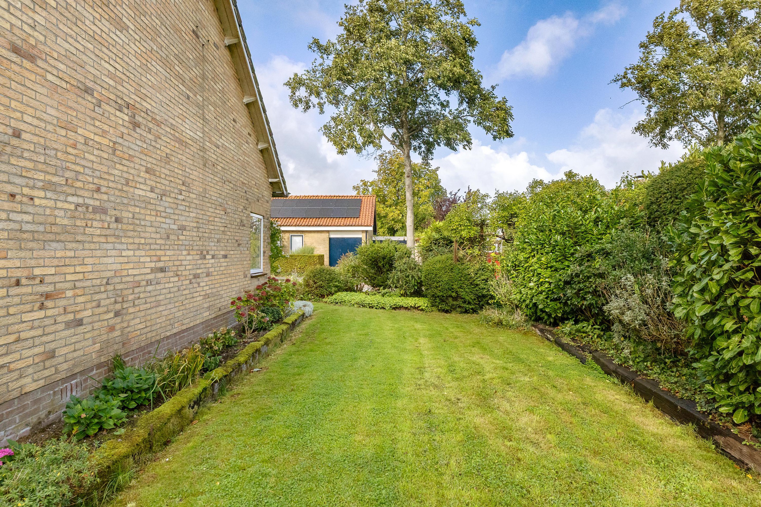 De woning heeft een fijne tuin voorzien van gras, terrassen en borders, perfect voor buitenactiviteiten, tuinieren of gewoon genieten van de buitenlucht.