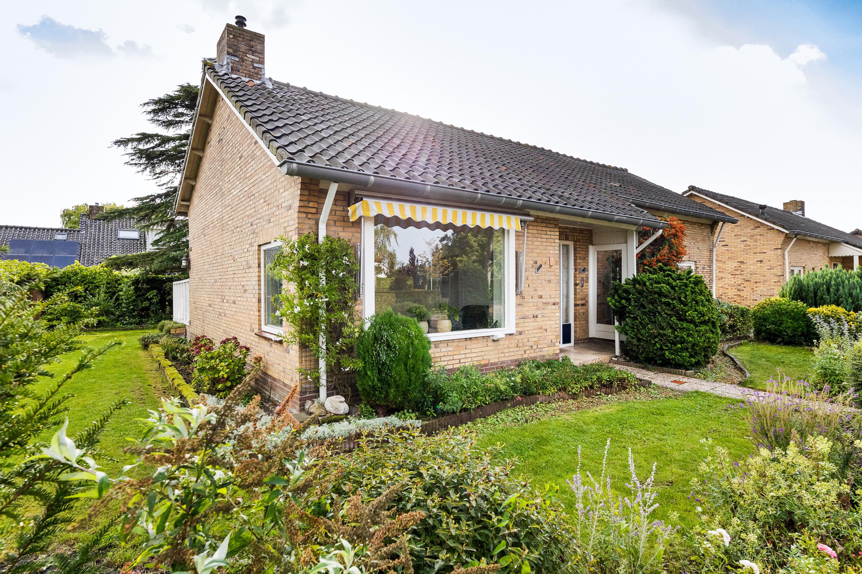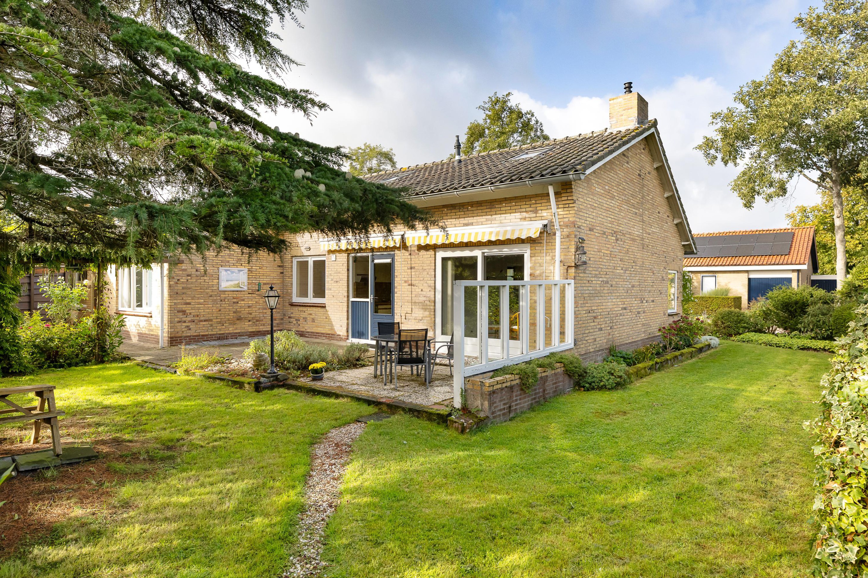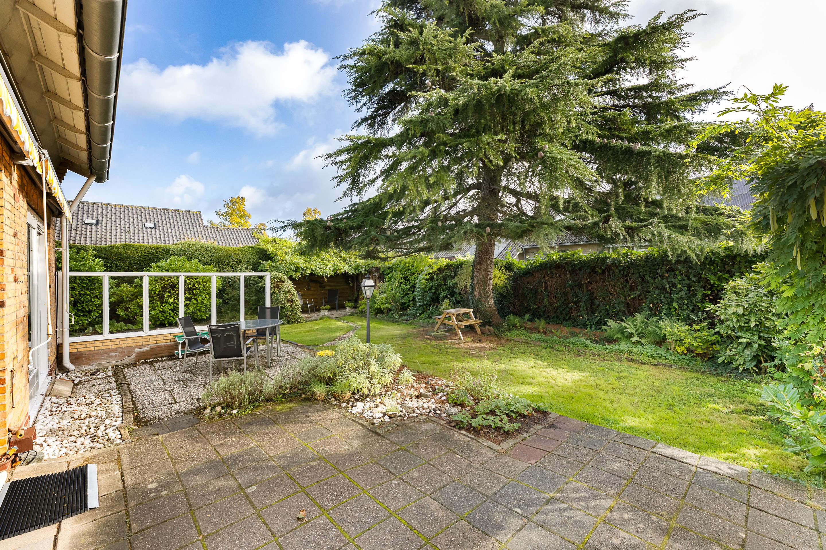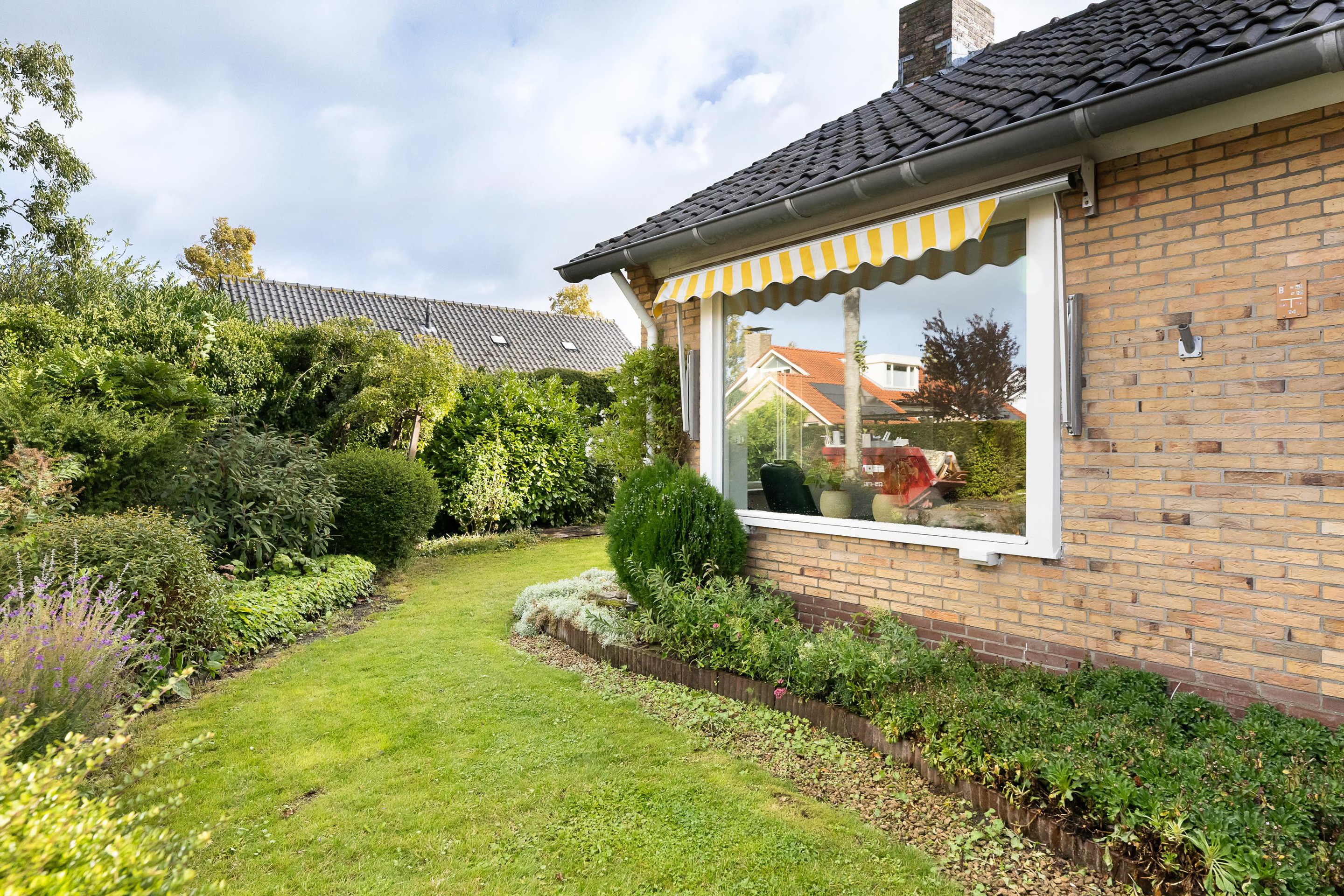 De woning heeft een fijne tuin voorzien van gras, terrassen en borders, perfect voor buitenactiviteiten, tuinieren of gewoon genieten van de buitenlucht.