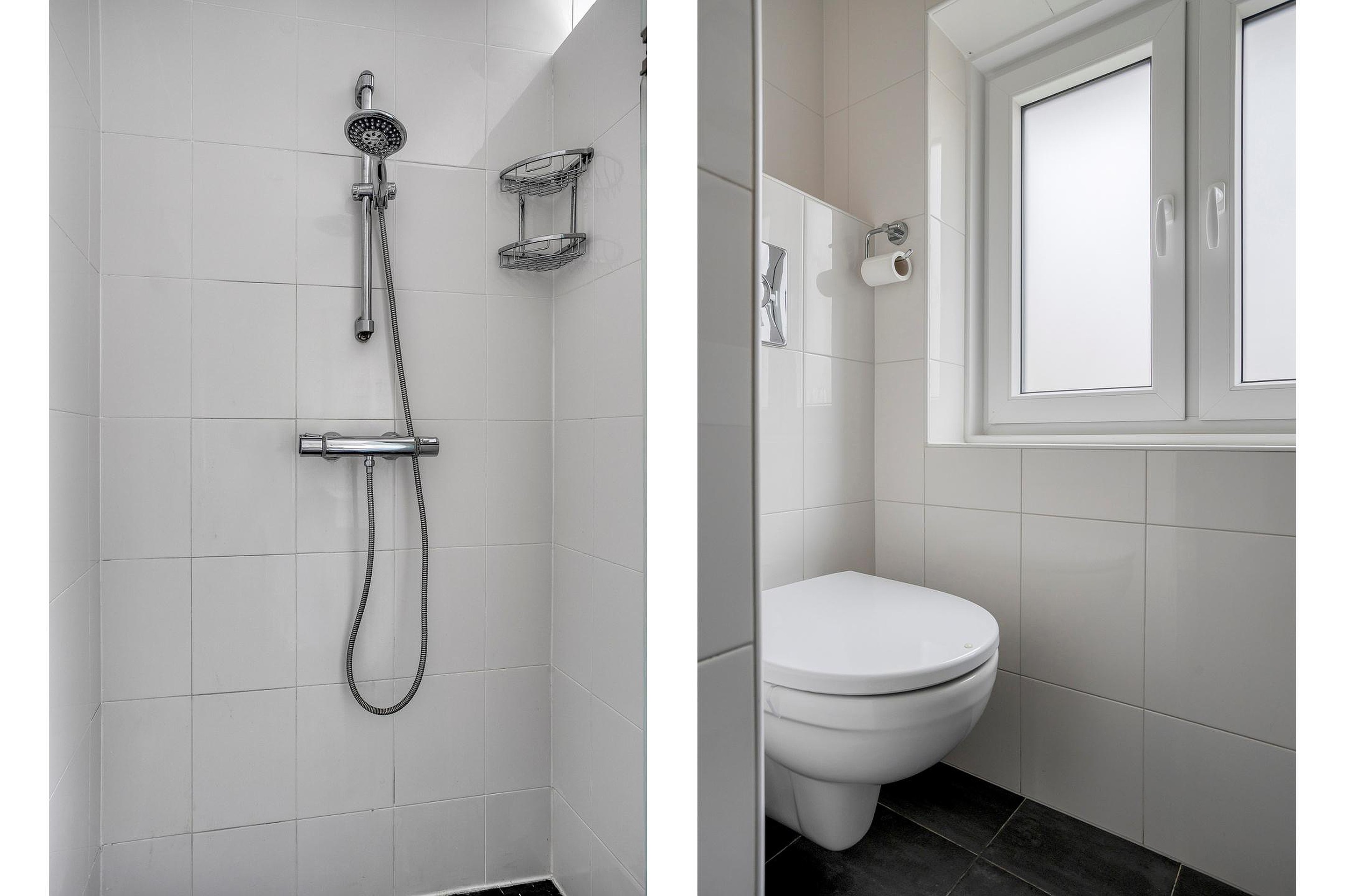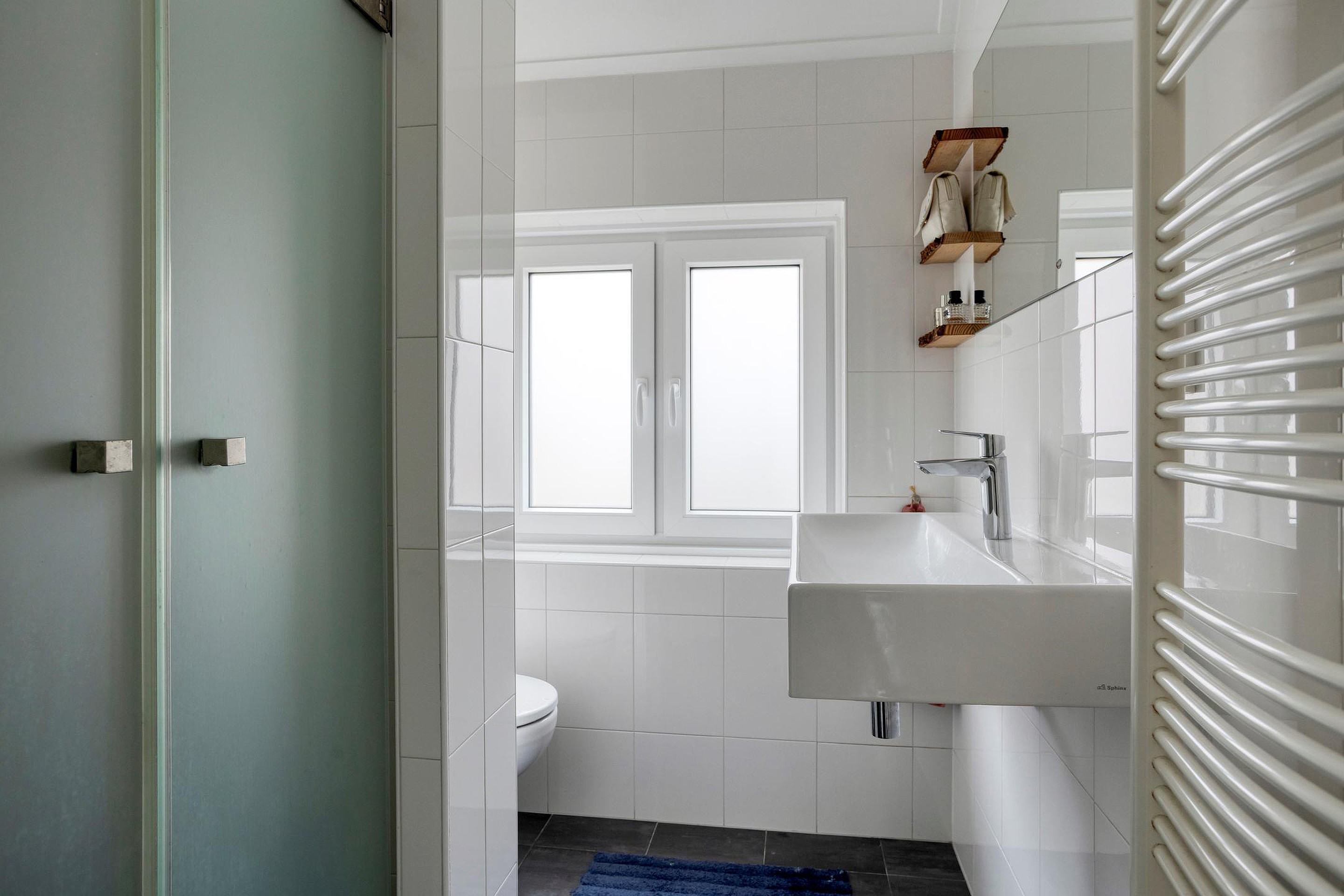 Via de sfeervolle voordeur betreedt u de woning en komt u in de hal met meterkast, trapopgang naar de bovenliggende verdiepingen, trapkast en een toilet. In de hal ligt een nette, donkere tegelvloer. Het toilet is uitgevoerd met een hangtoilet en is verzorgd betegeld.