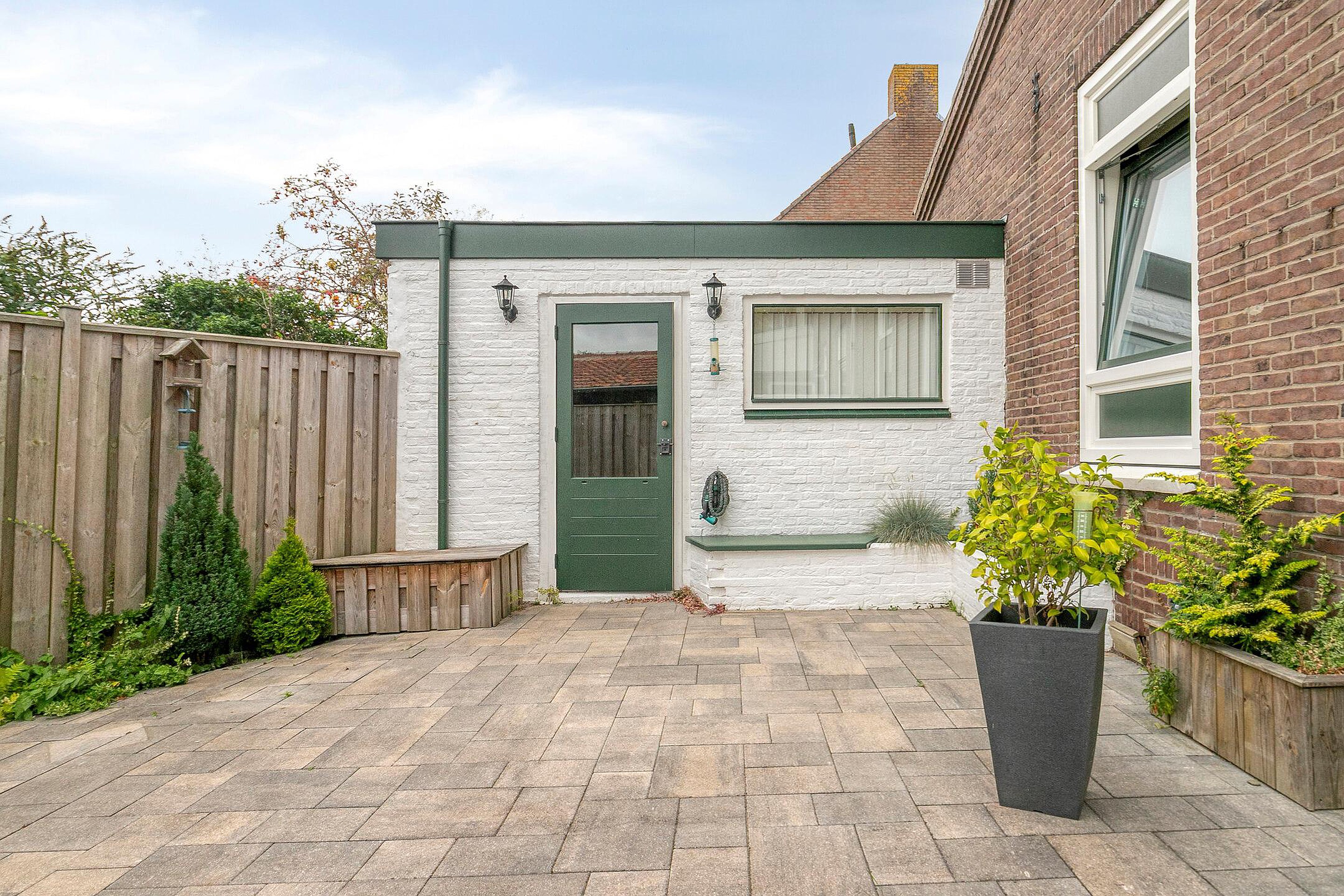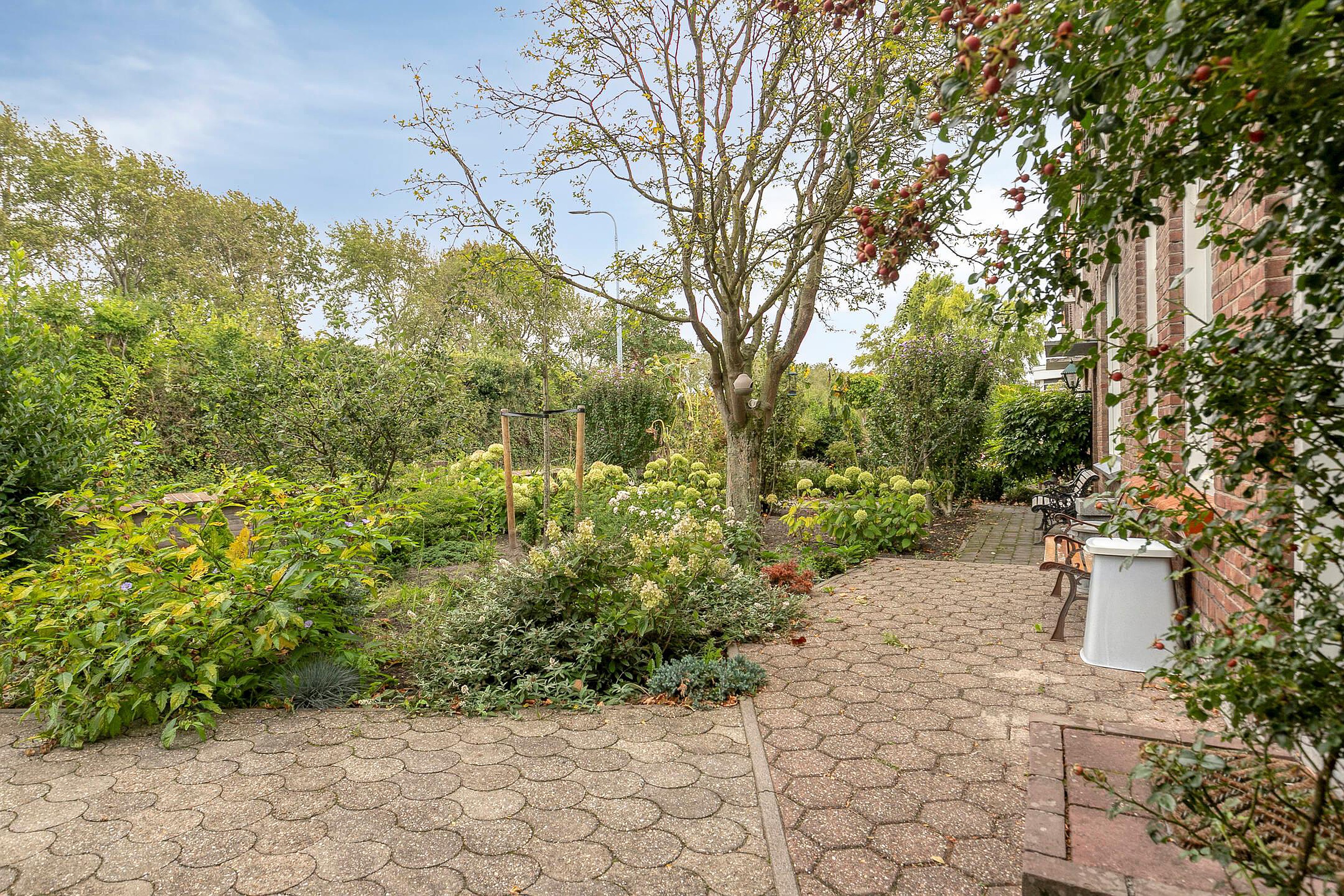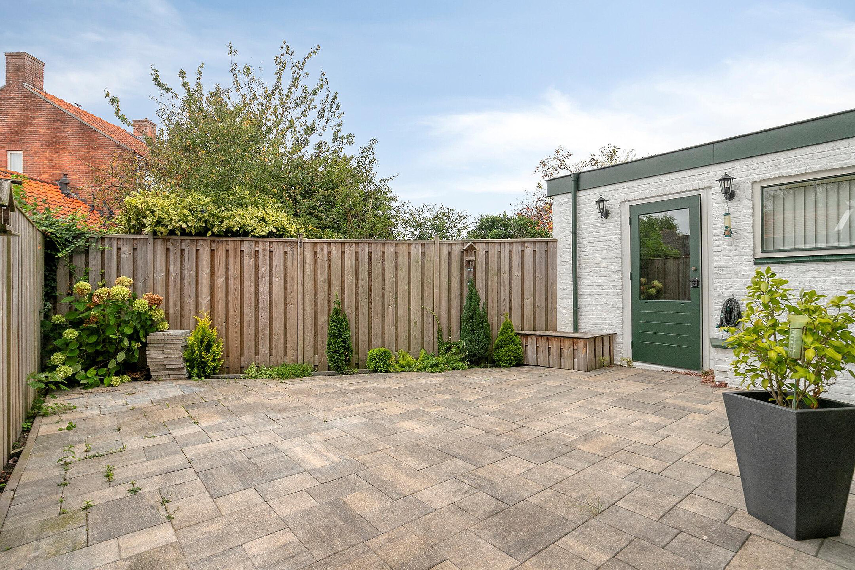 De achtertuin is recentelijk vernieuwd en voorzien van siertegels, de tuin is gelegen op het westen en biedt privacy. Vanuit de achtertuin is de 2e stenen berging bereikbaar. De voortuin heeft een eigen oprit, zodat uw auto veilig staat geparkeerd.