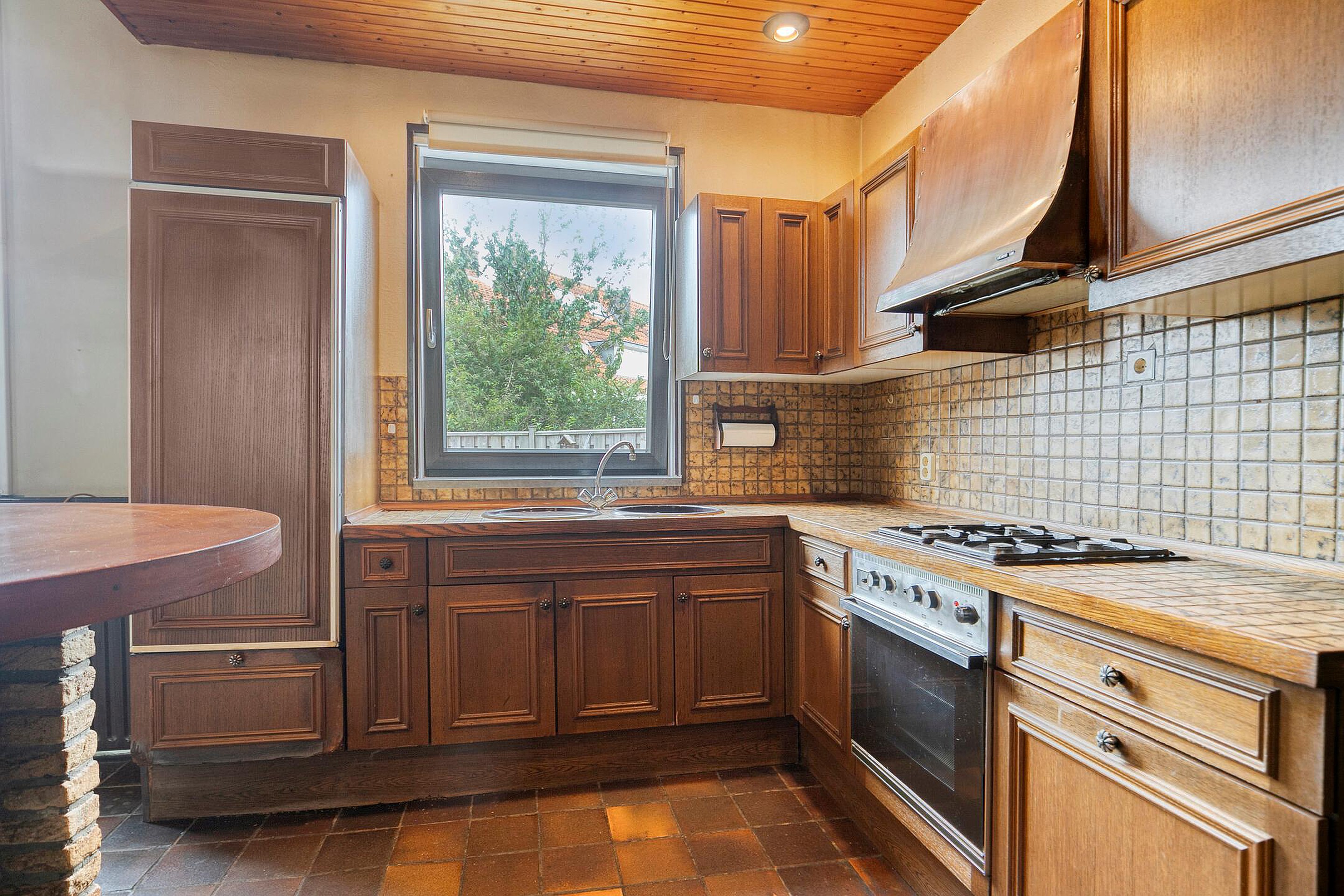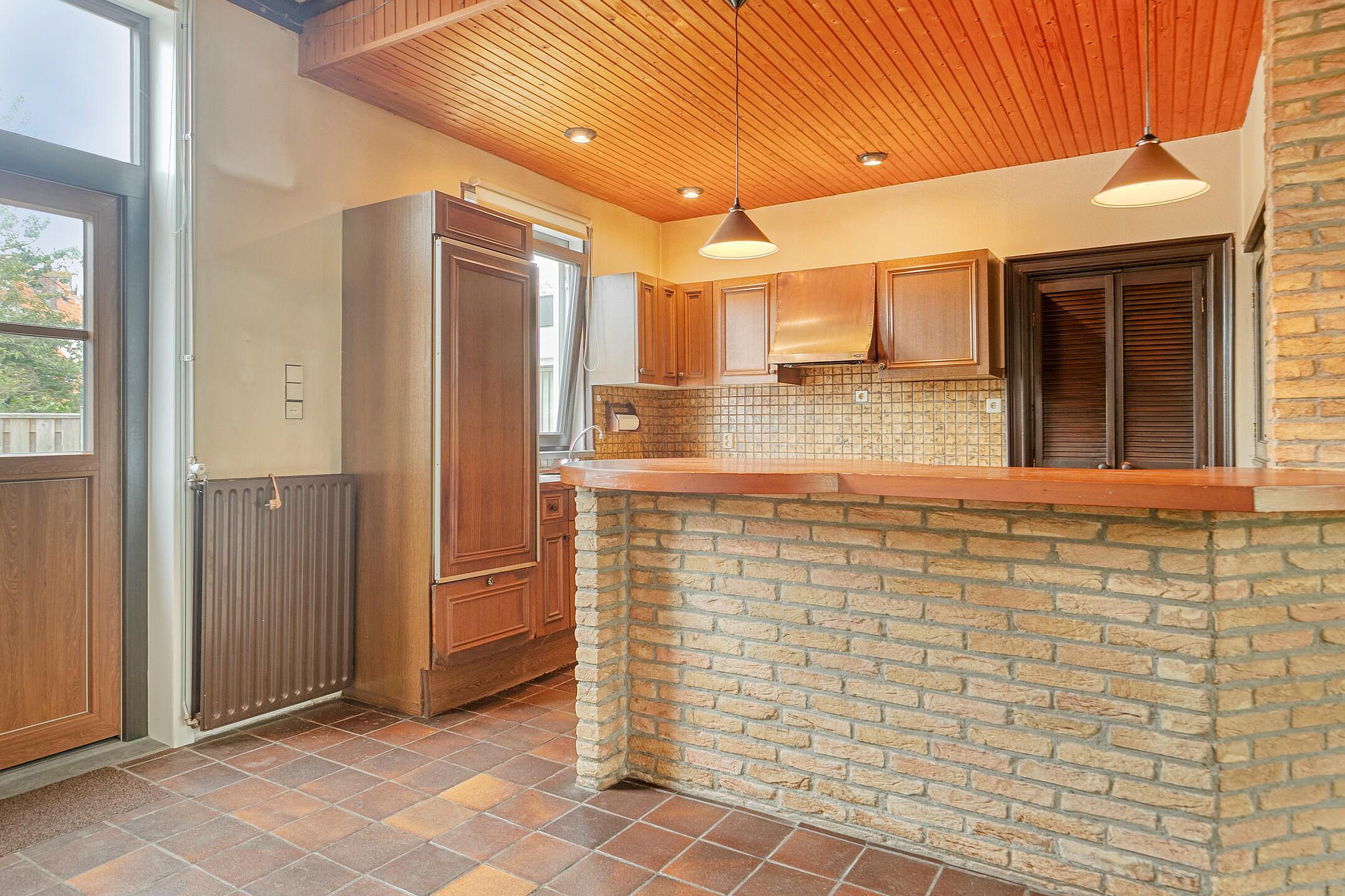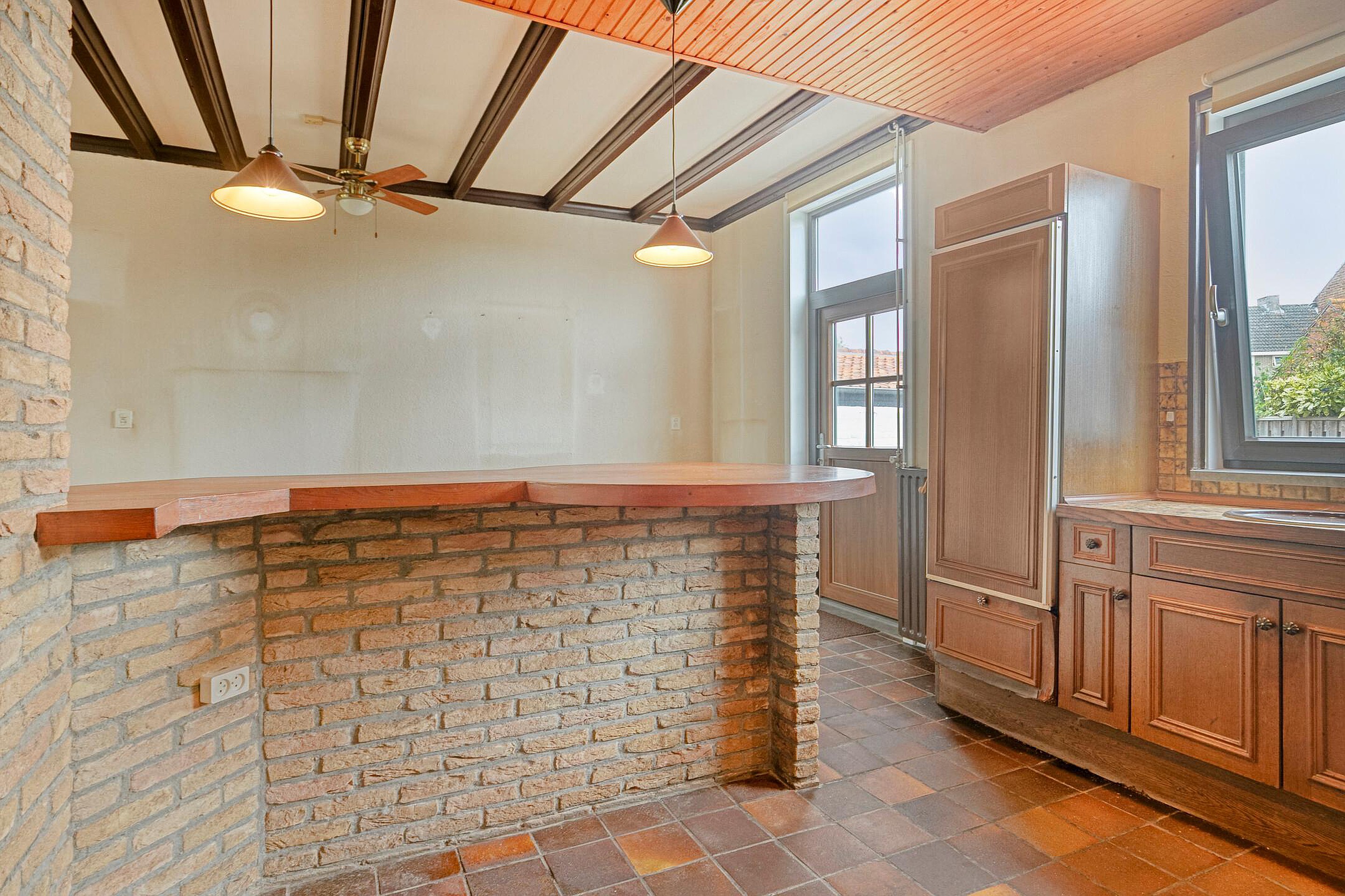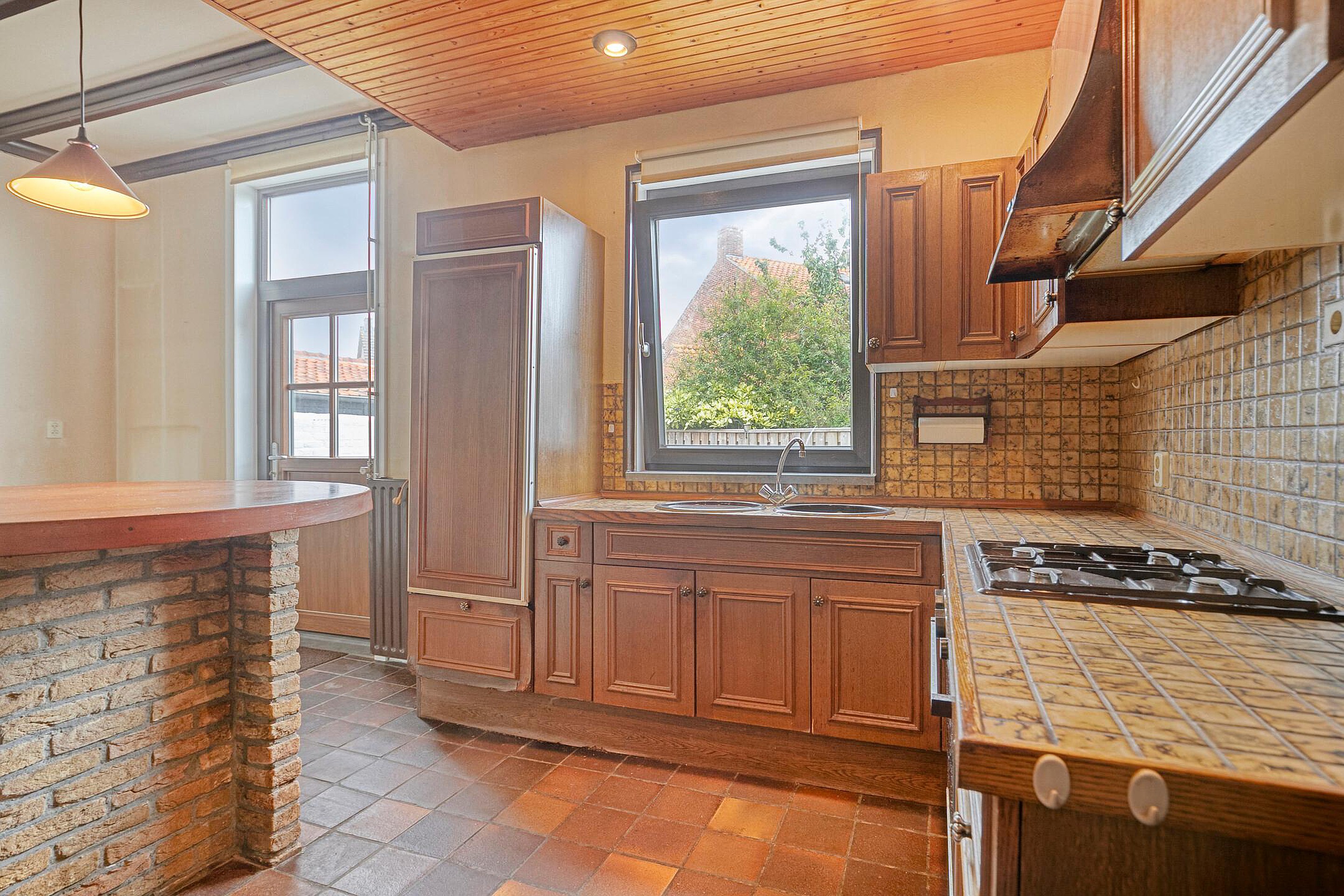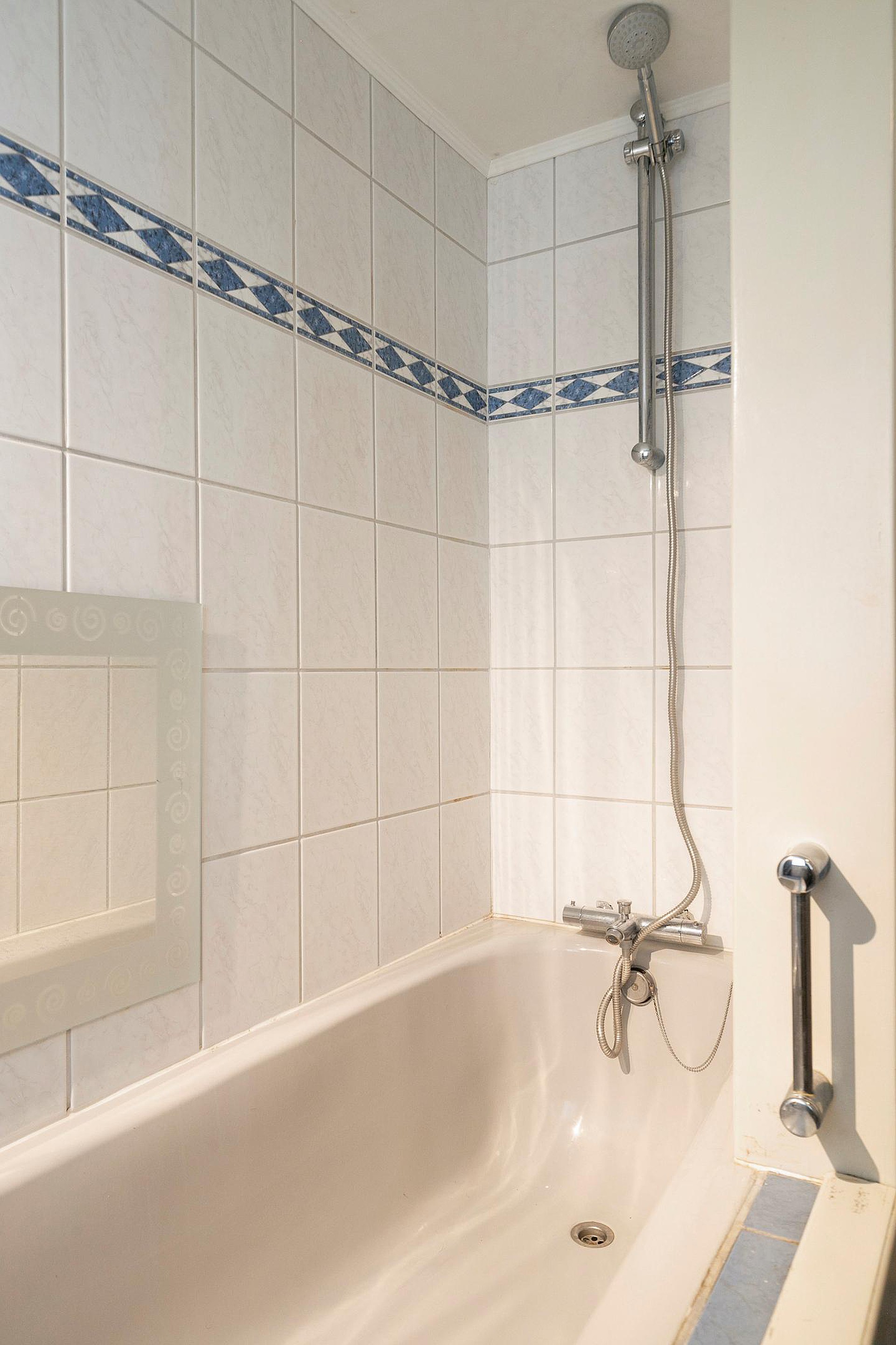 Aansluitend aan de keuken de bijkeuken met ruimte voor de wasmachine en droger. Hier bevindt zich tevens het toilet en de badkamer met wastafel in meubel en ligbad. Er is geen vrije achterom maar dat is wel zo veilig. Fietsen, scooters etc. kunt u in de inpandige berging stallen, de berging is binnendoor bereikbaar maar ook vanaf de voorzijde van de woning.