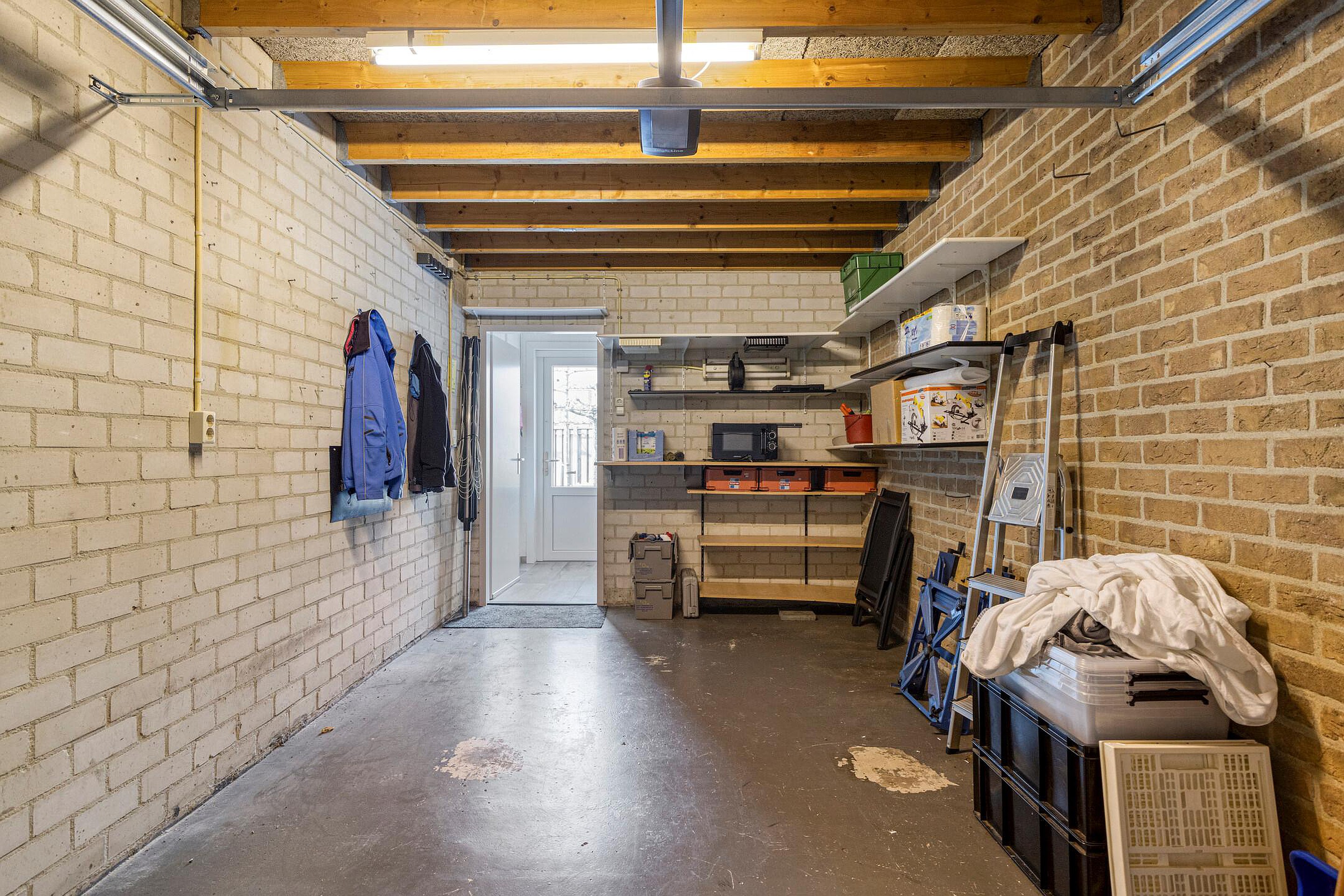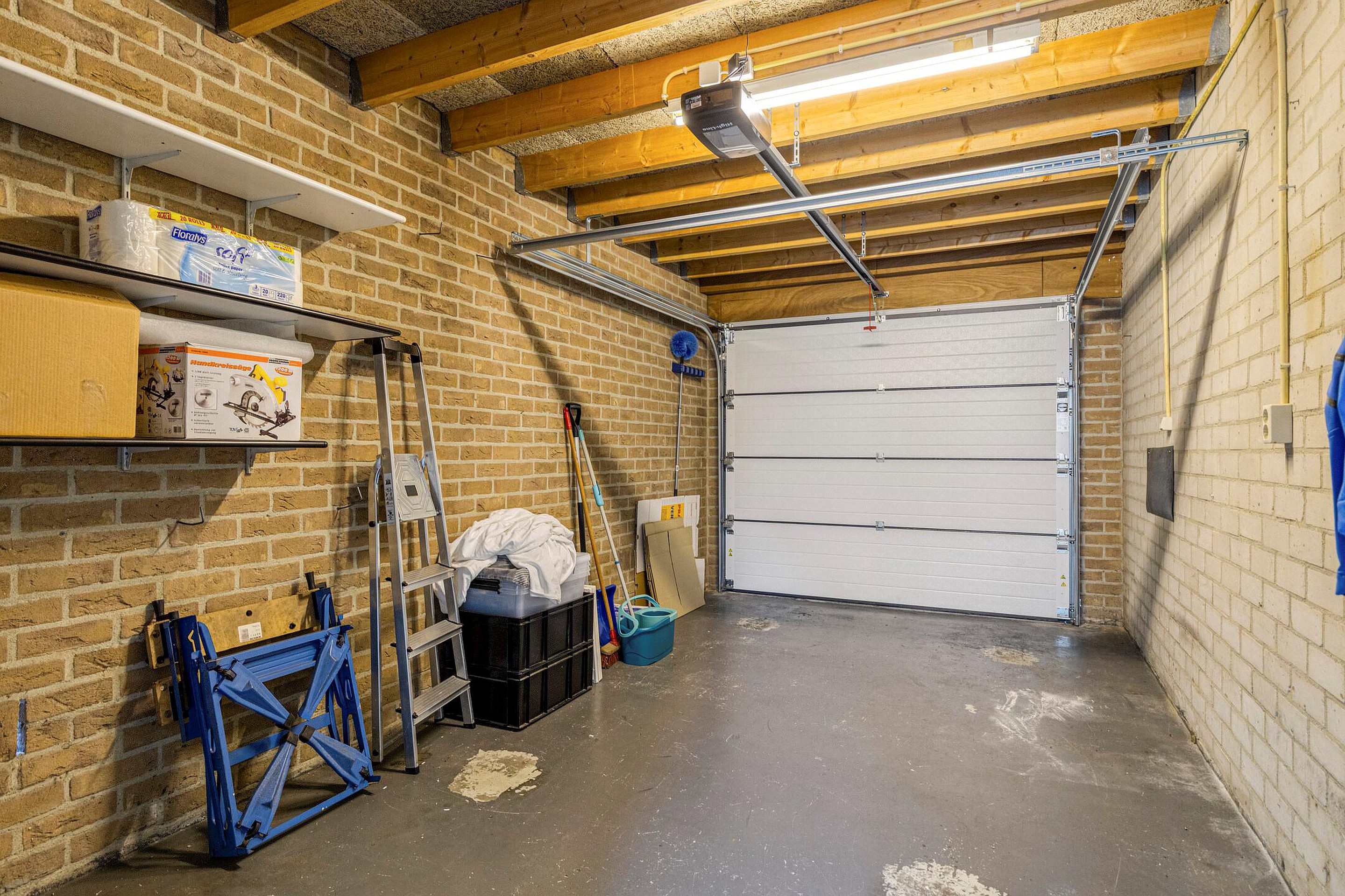 Details De garage is binnendoor bereikbaar en is voorzien van een elektrisch bedienbare geïsoleerde sectionaal deur (februari 2025), elektra is in de garage aanwezig.