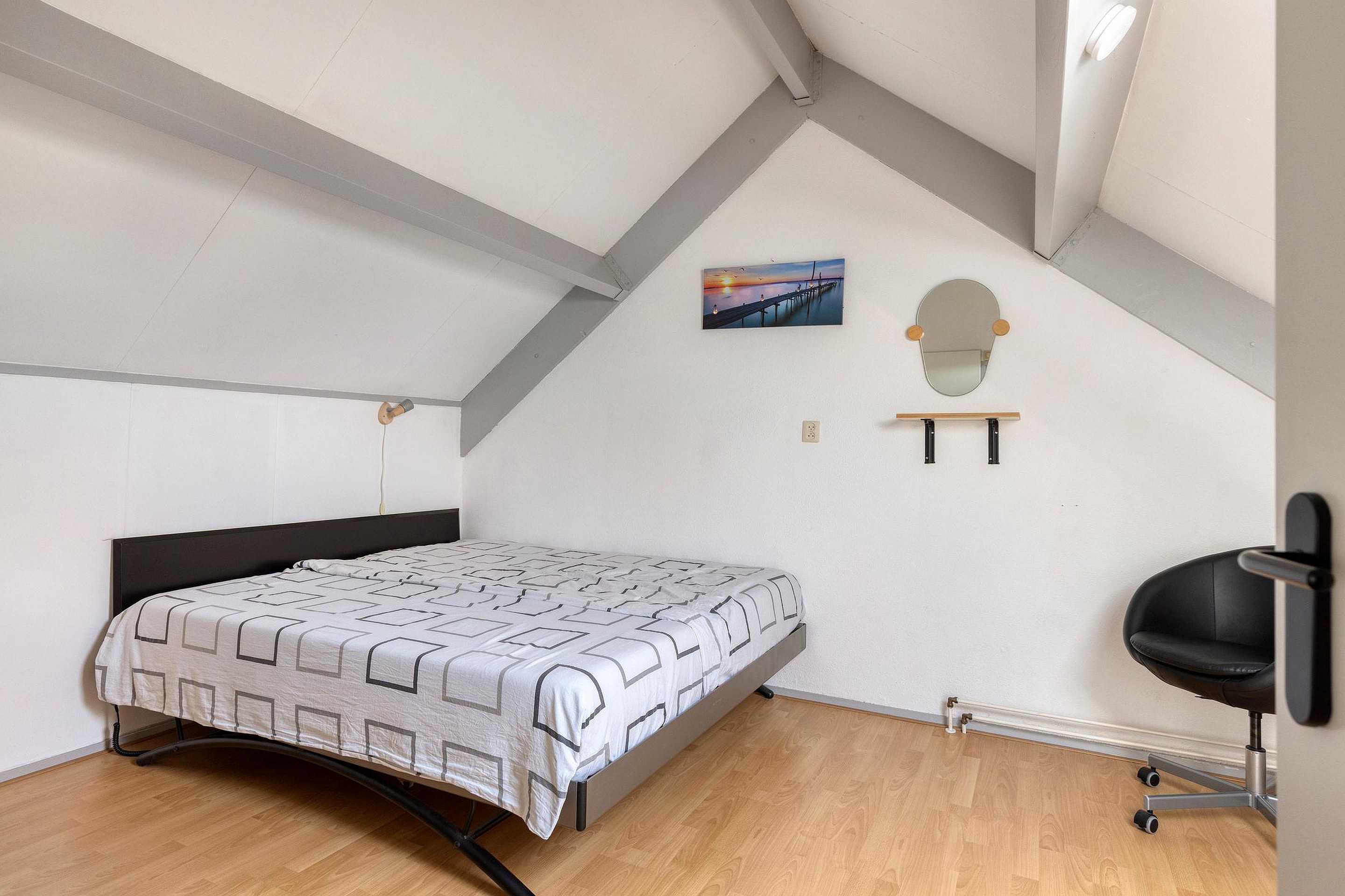 Tweede verdieping De 2e verdieping is via een vaste trap bereikbaar met de verrassend ruime 4e slaapkamer en diverse vaste bergruimte.