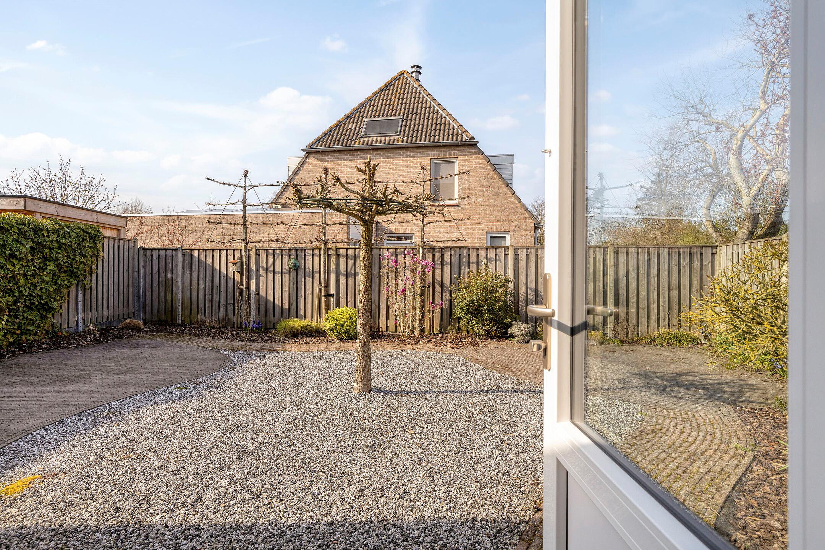 Tuin De tuin is verzorgd en strak aangelegd met terrassen, siergrind en groen. Gunstig gelegen ten opzichte van de (avond) zon.