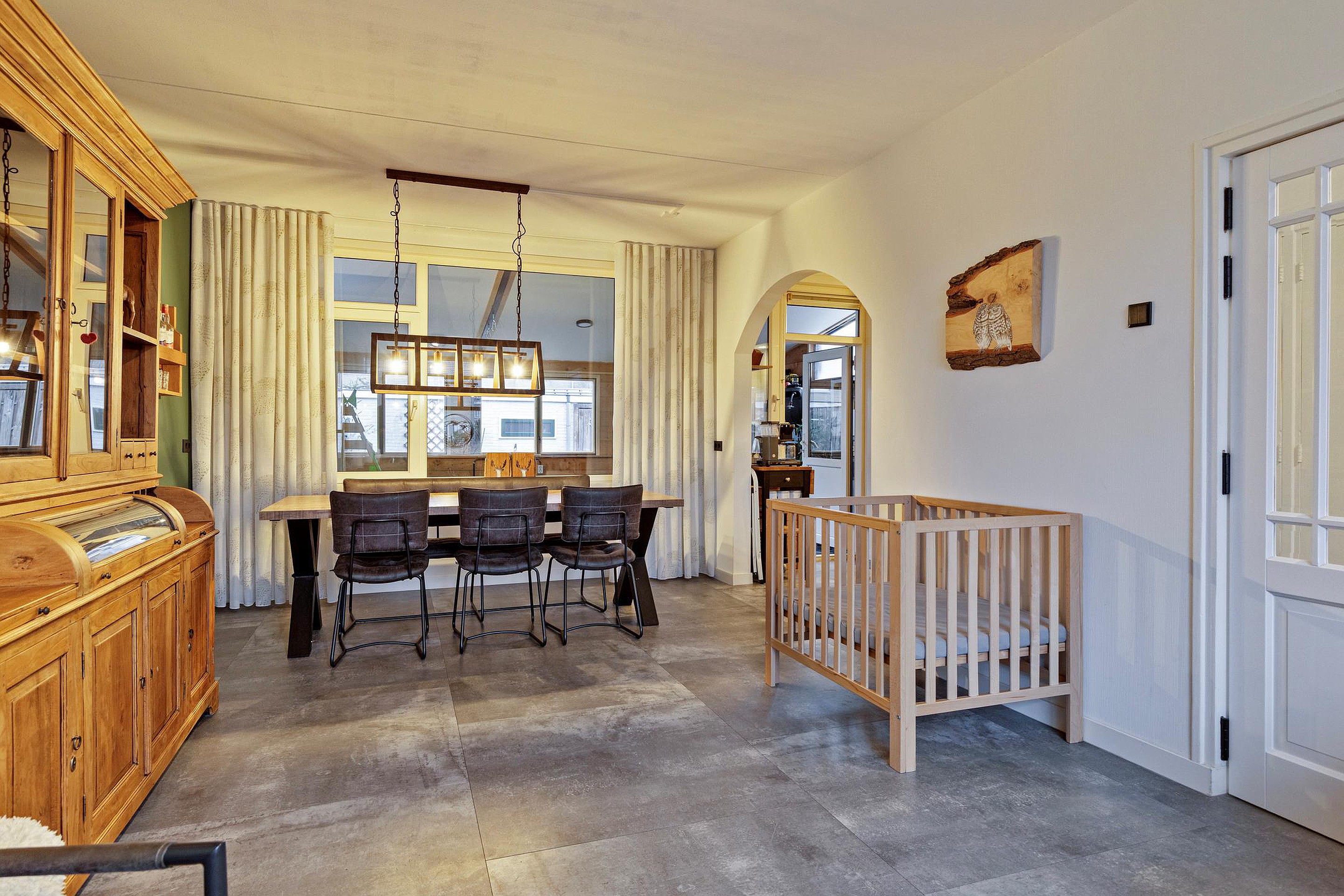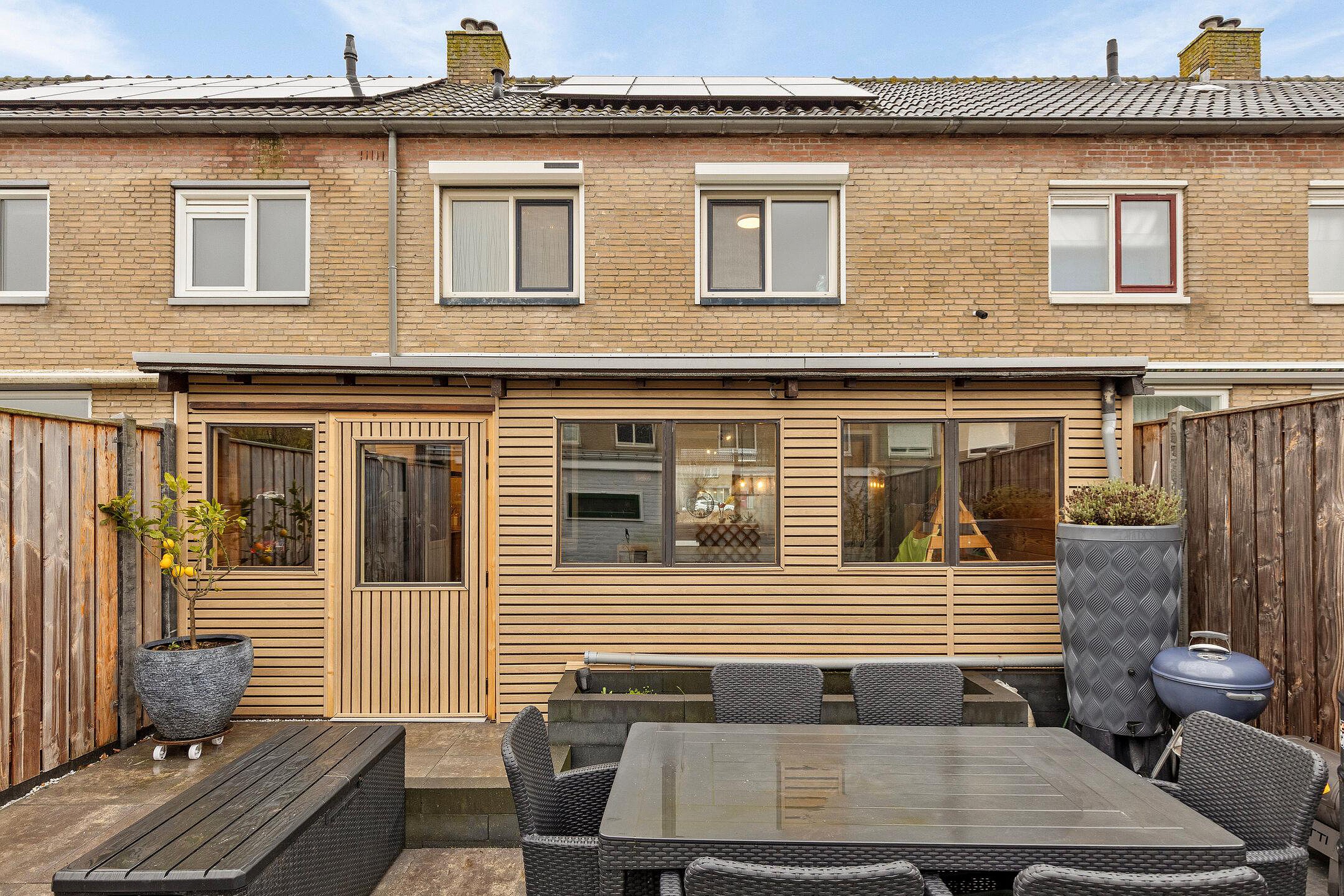 Aan de achterzijde is een aanbouw gerealiseerd met een praktische en ruime serre; een heerlijke plek om het hele jaar door te genieten. De serre staat in directe verbinding met de tuin.