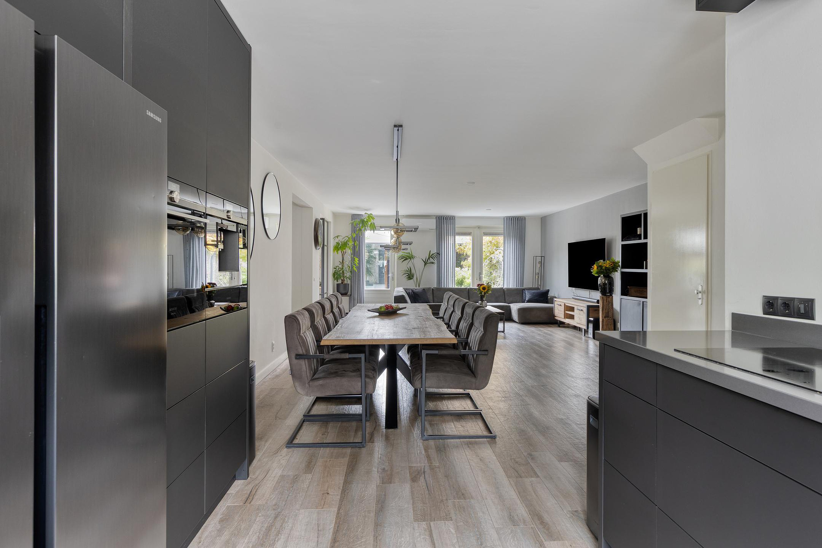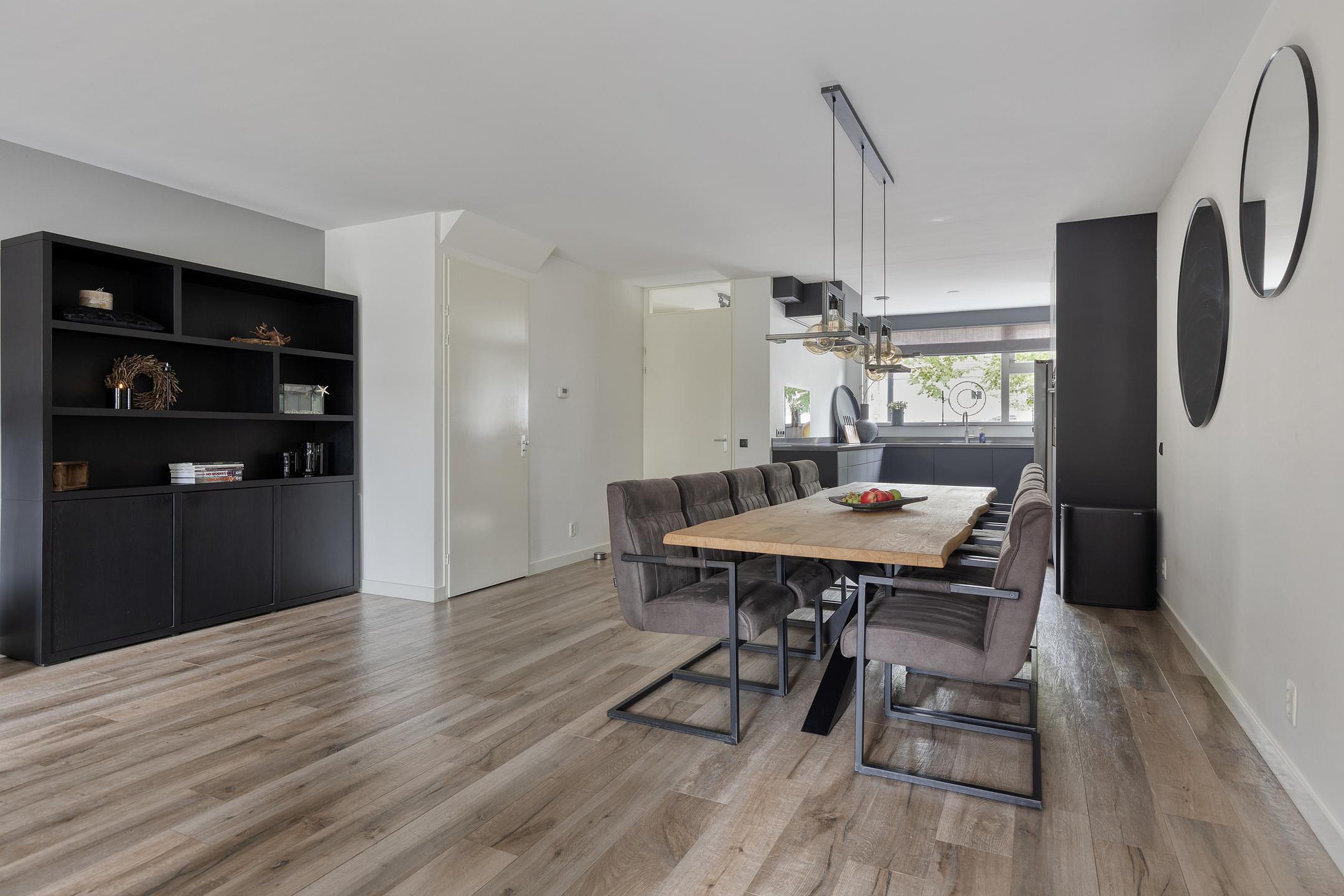 Wanneer je de woning binnenkomt, word je ontvangen in een lichte entree met toilet en trapopgang. Vanuit hier stap je direct de moderne keuken in, die in open verbinding staat met de eetkamer. De keuken is voorzien van alle gemakken en biedt meer dan genoeg werk- en kastruimte, ideaal voor de kookliefhebber. Aansluitend bevindt zich de royale woonkamer, waar grote raampartijen zorgen voor veel daglicht en een prettig uitzicht op de tuin. Op de begane grond is bovendien een extra kamer aanwezig die uitstekend gebruikt kan worden als slaapkamer, logeerkamer of speelruimte. De bijkeuken maakt de begane grond helemaal compleet.