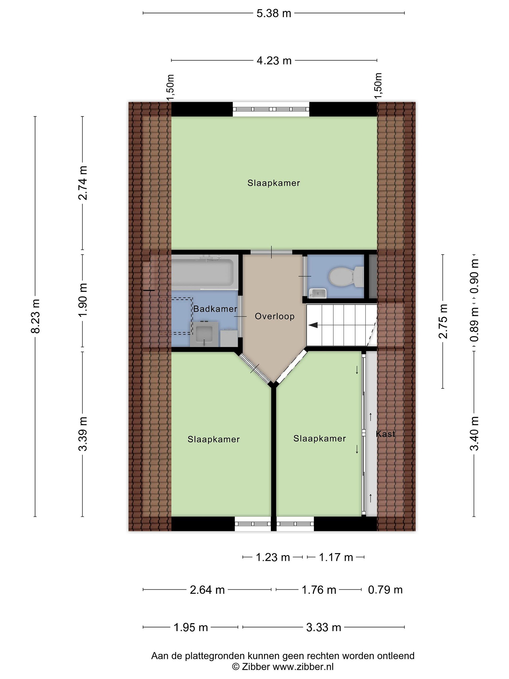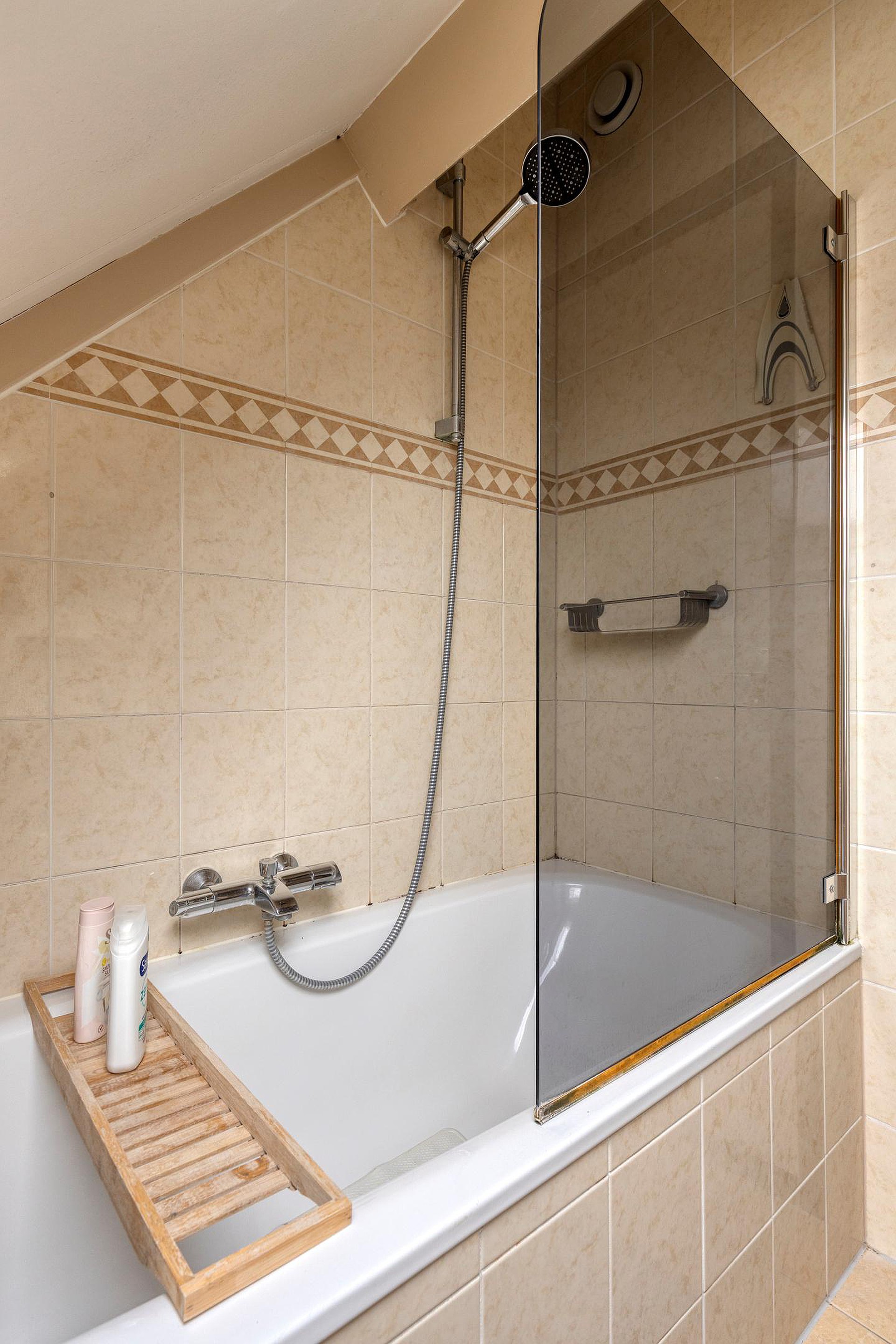 Eerste verdieping Hier bevinden zich drie slaapkamers en een nette badkamer met tweede toilet. De kamers hebben rechte wanden, veel licht en zijn praktisch in gebruik.
