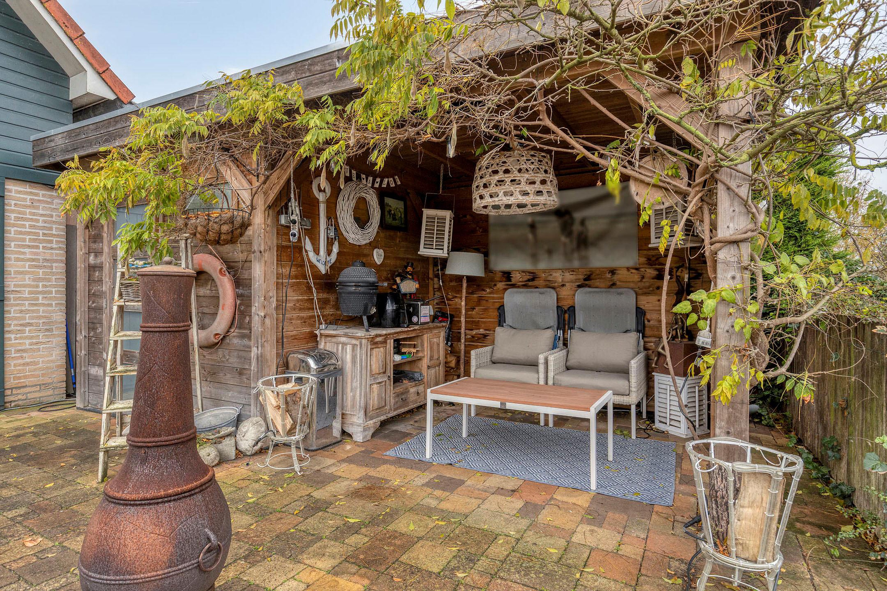 Tuin De tuin rondom geeft volop privacy en ruimte om te ontspannen. Aan de zijkant van het perceel vind je een vrijstaande houten berging (5,2 m2) met overkapping. Parkeren kan comfortabel op je eigen oprit met meerdere auto's.