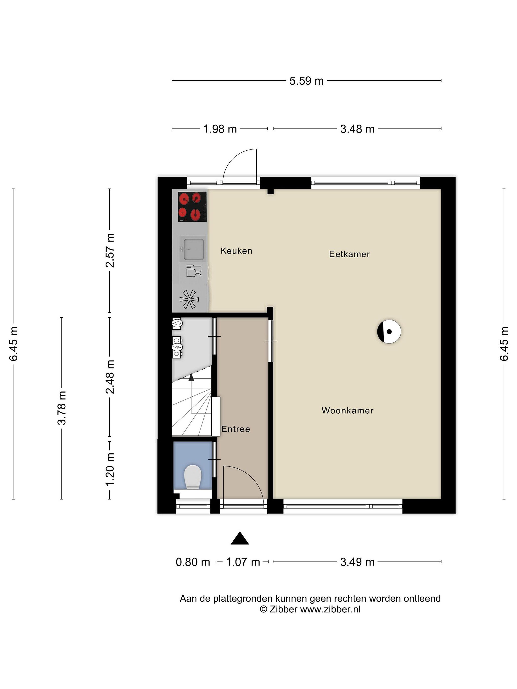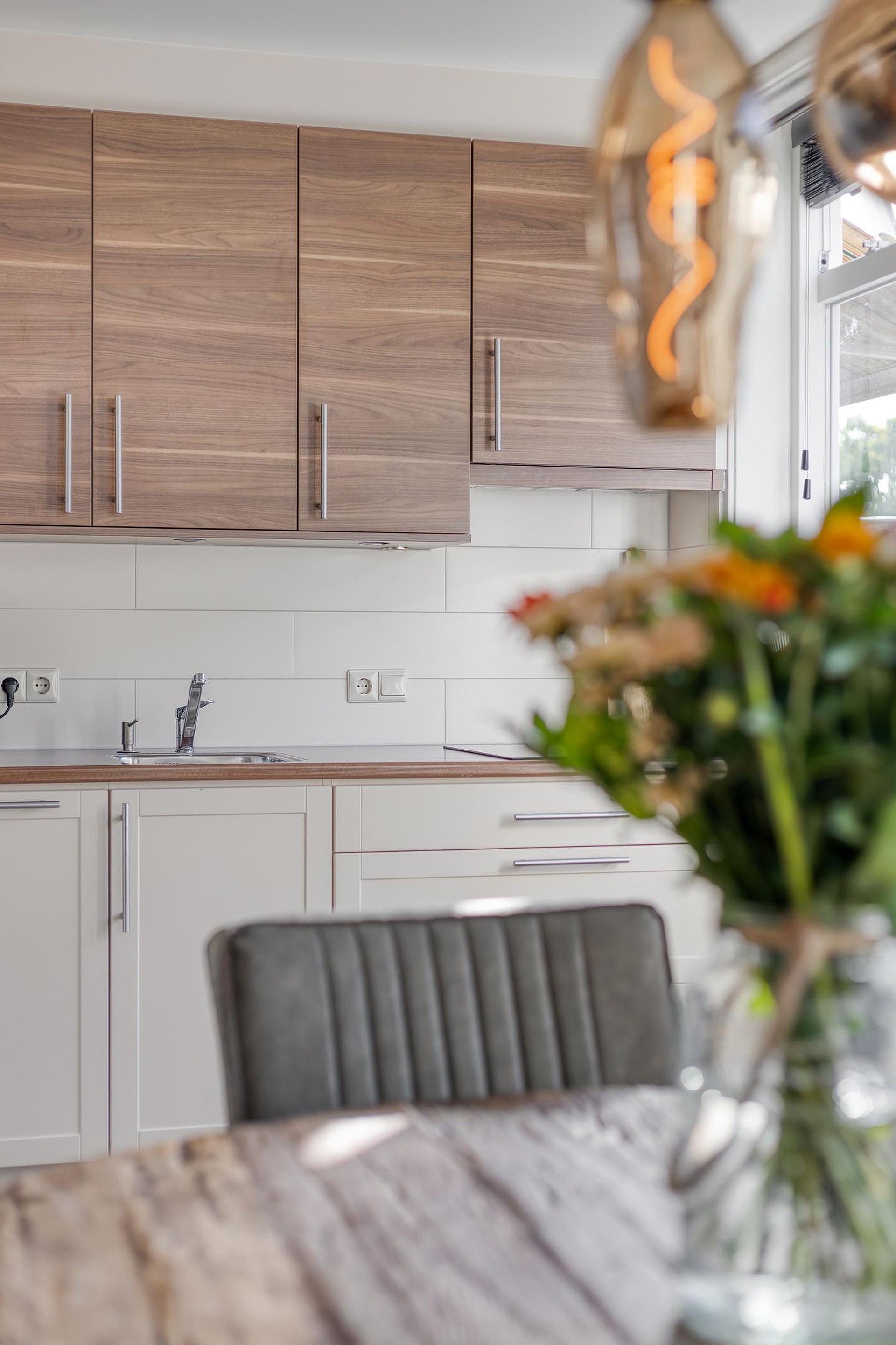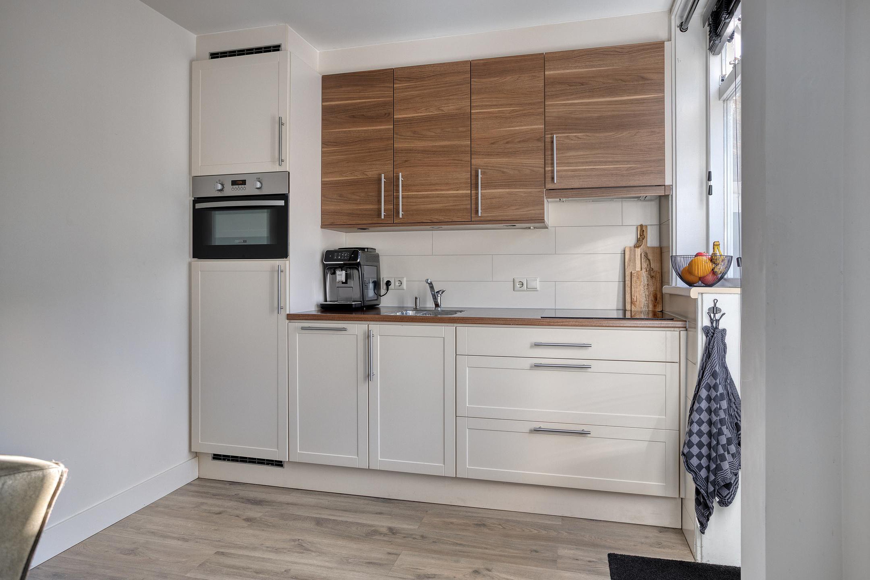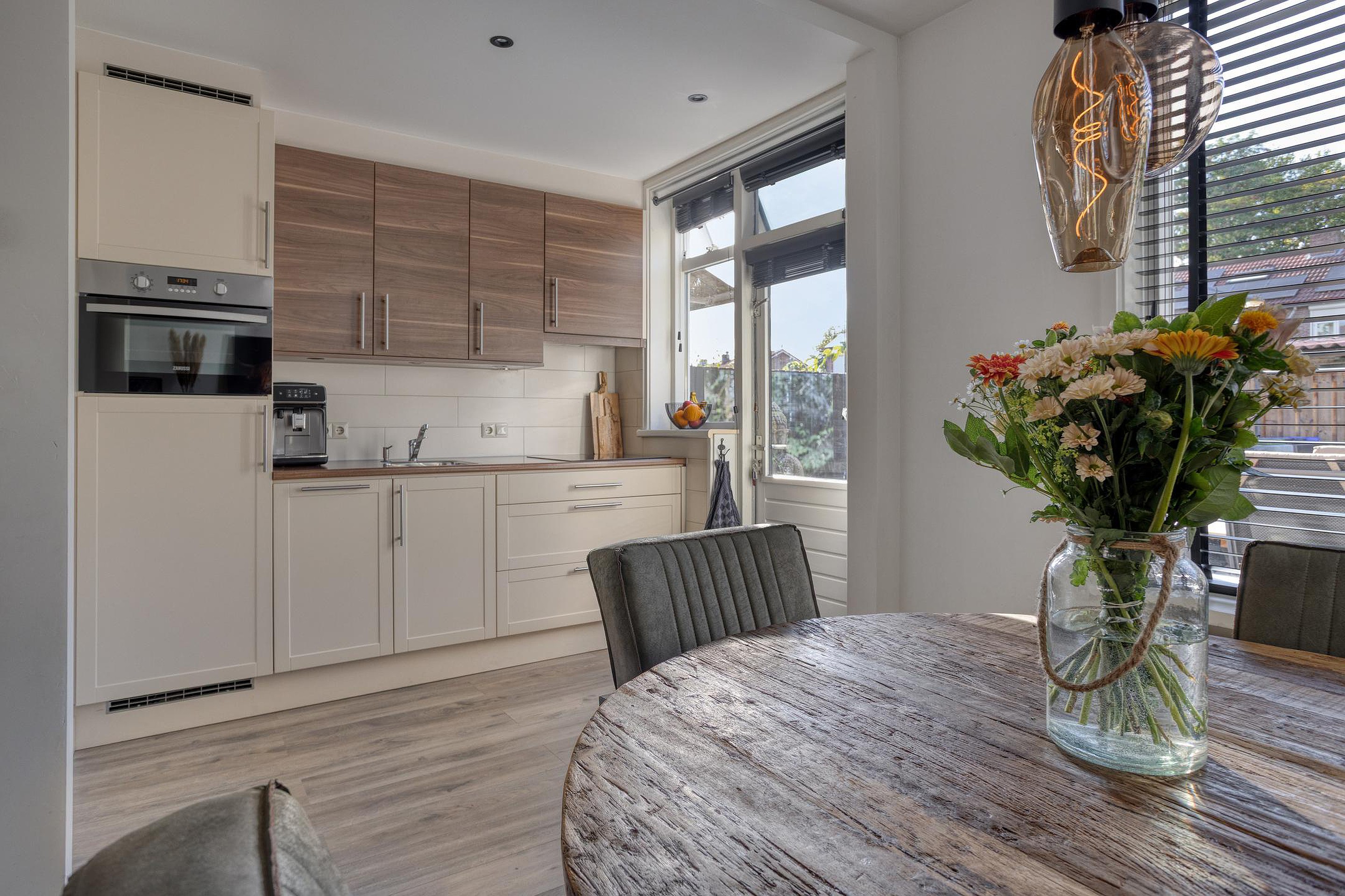 Via de entree kom je binnen in de hal met toegang tot de trap, de trapkast met vernieuwde meterkast en het toilet (2021). De woonkamer is licht en sfeervol en staat in verbinding met de moderne keuken (2015), die voorzien is van diverse inbouwapparatuur en voldoende kastruimte.