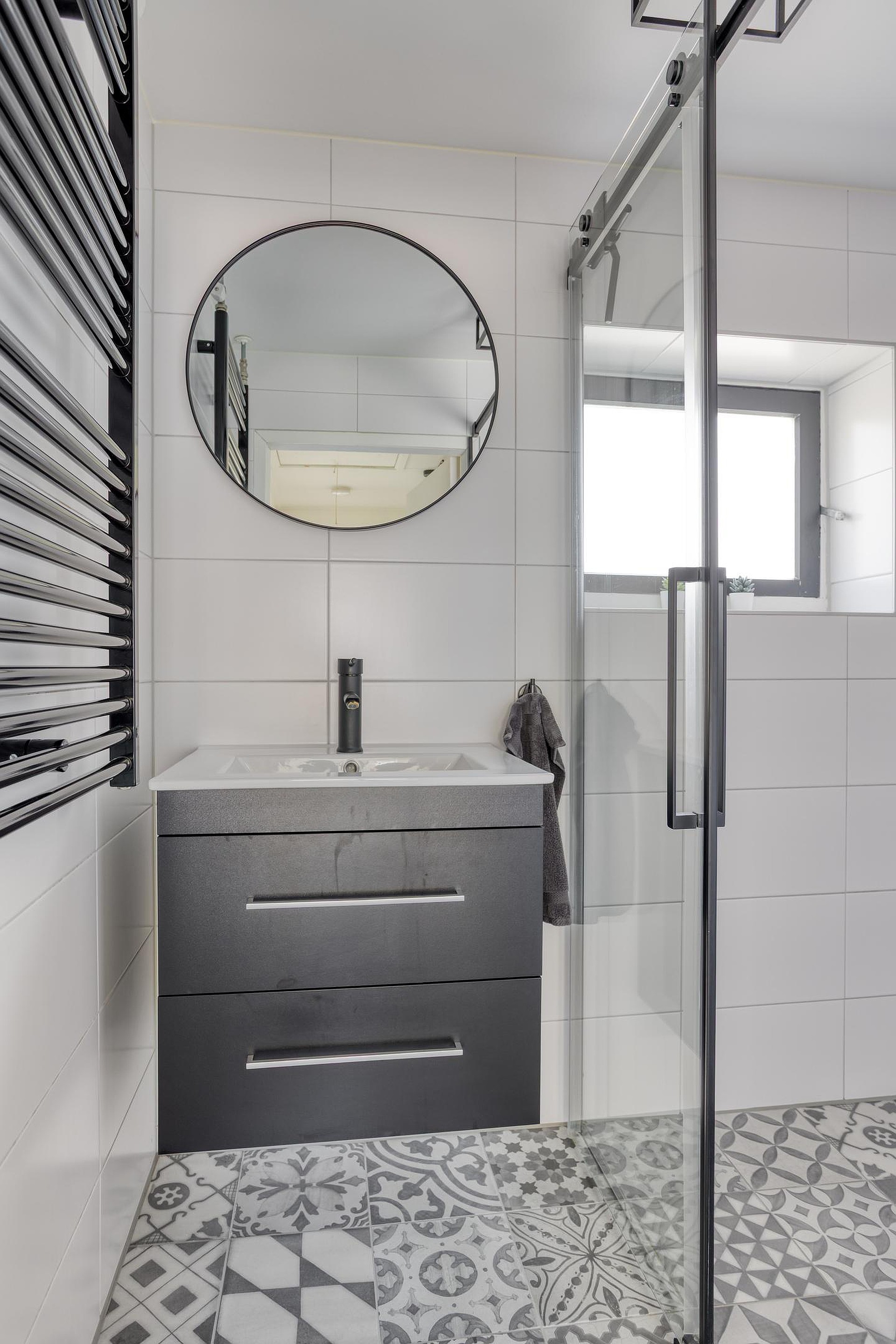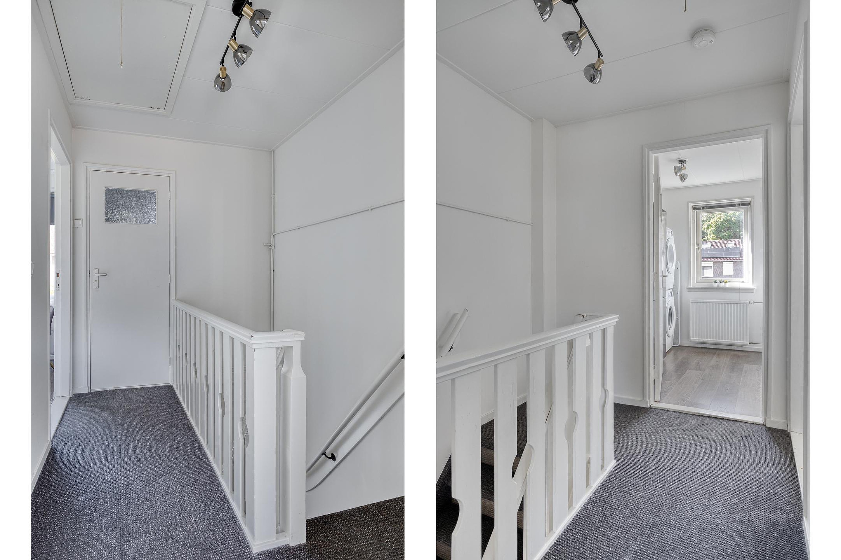 Op de eerste verdieping vind je twee slaapkamers en een extra (berg)kamer met witgoedaansluitingen. De badkamer is netjes en uitgerust met een douche en wastafel (2021).