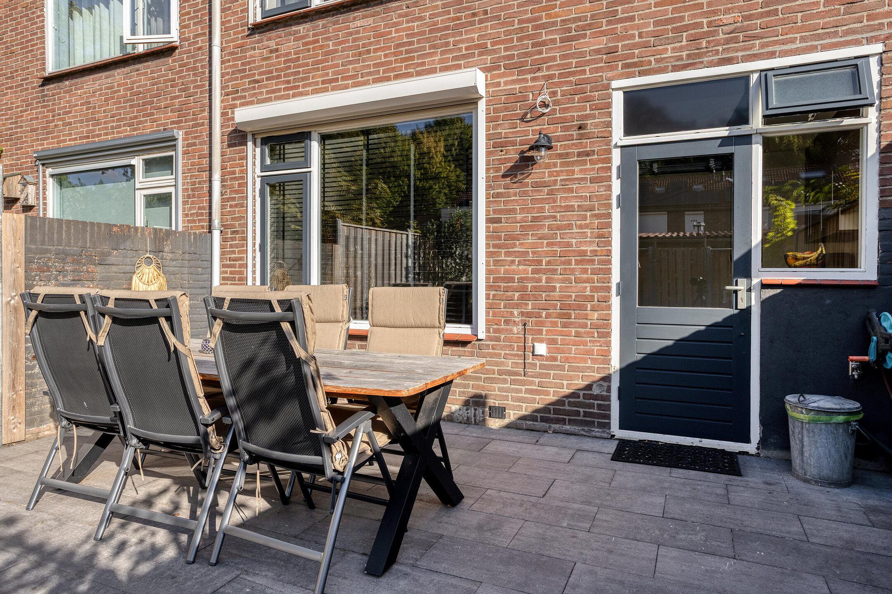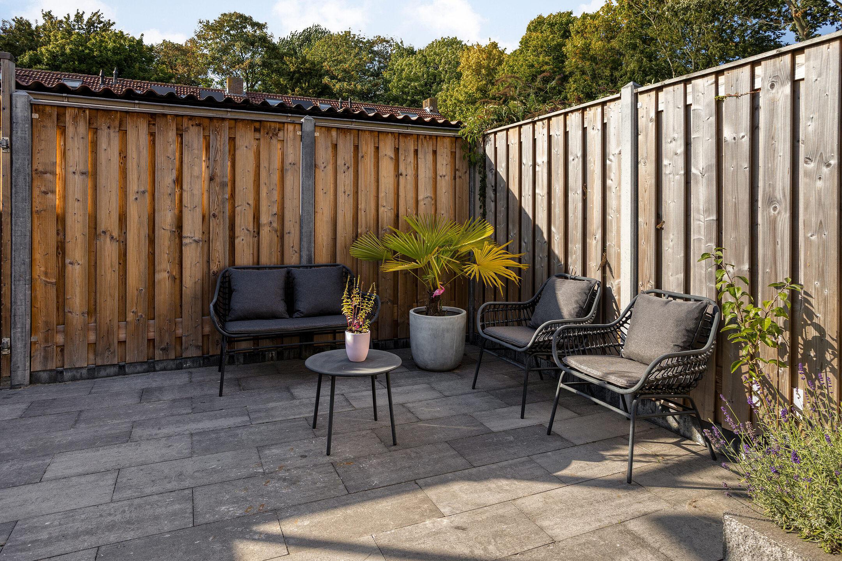 De achtertuin is keurig aangelegd en in 2023 compleet vernieuwd. Achter de tuin staat een ruime berging, bereikbaar via het achterpad, ideaal voor fietsen en tuingereedschap.