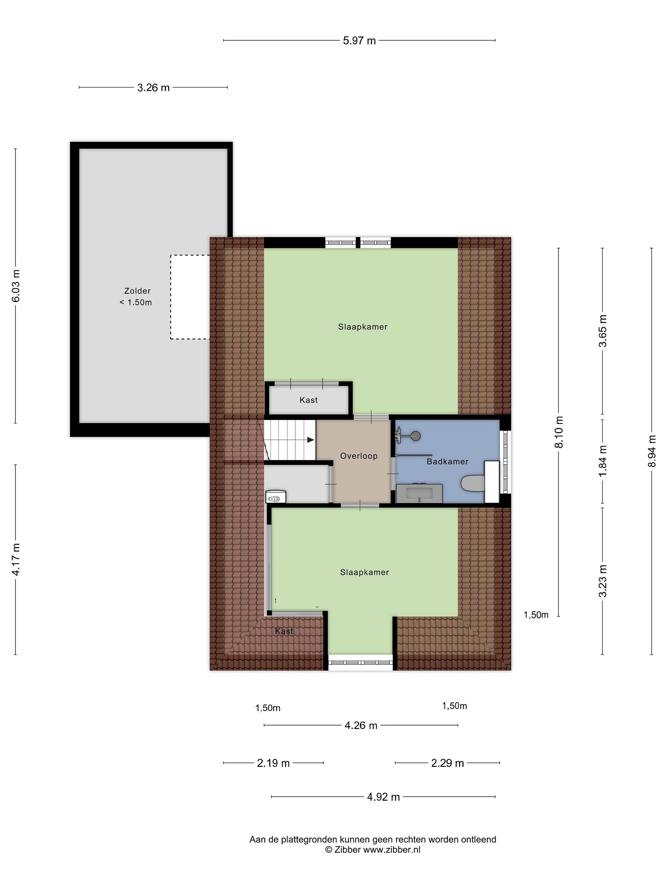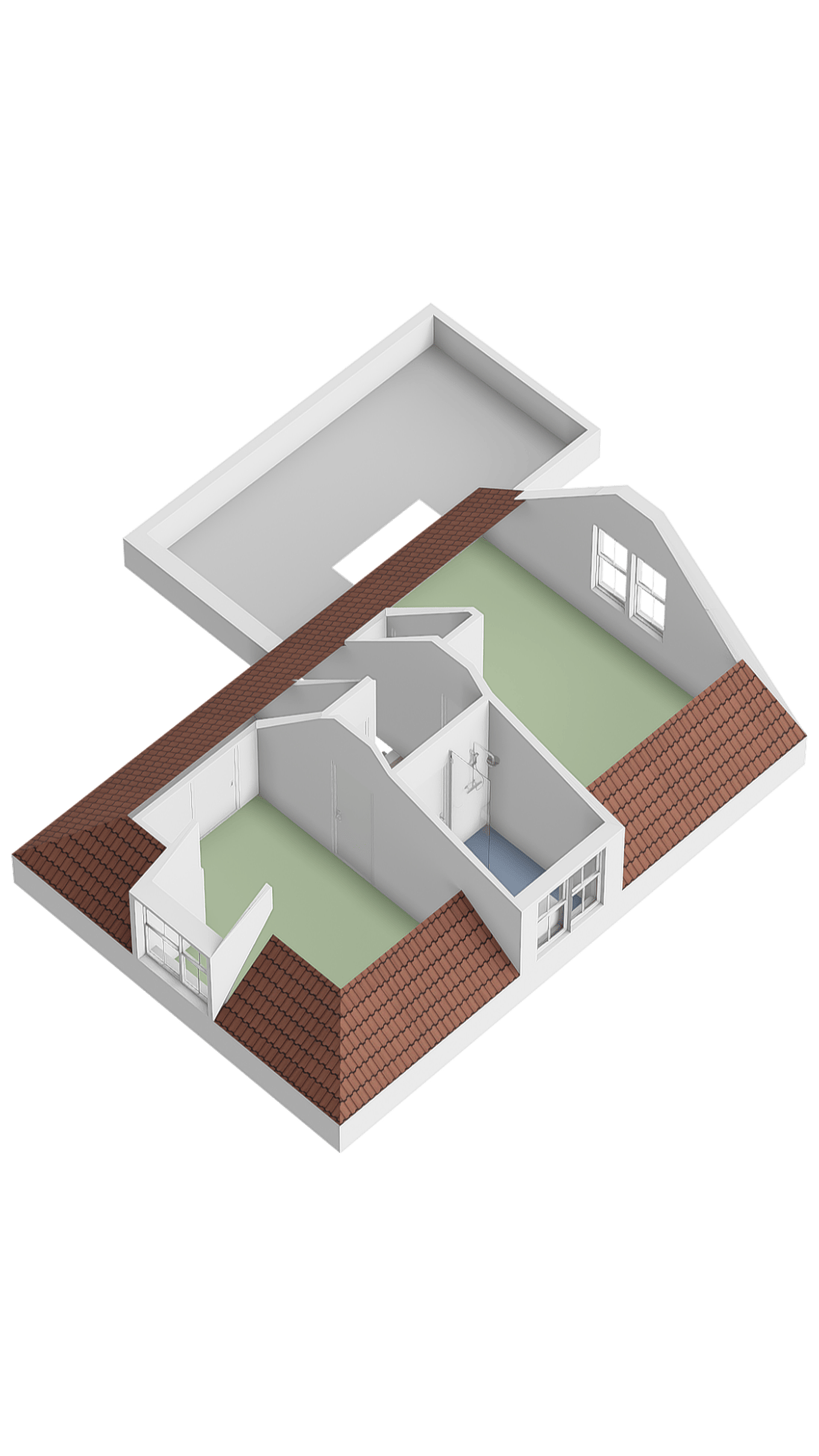 Eerste verdieping Twee volwaardige slaapkamers (mogelijkheid tot drie slaapkamers) met dakkapellen, een badkamer met douche, wastafel en toilet en een vaste kast. Toegang tot de bergzolder.