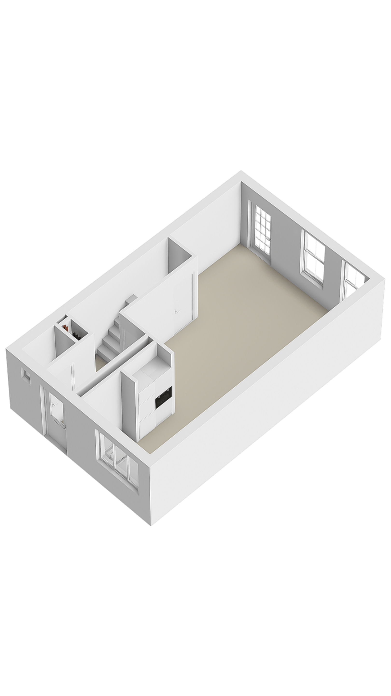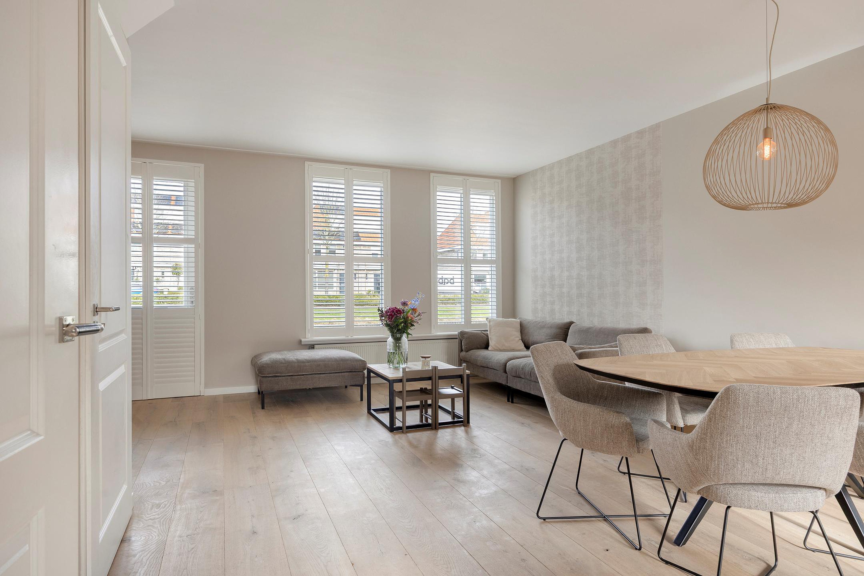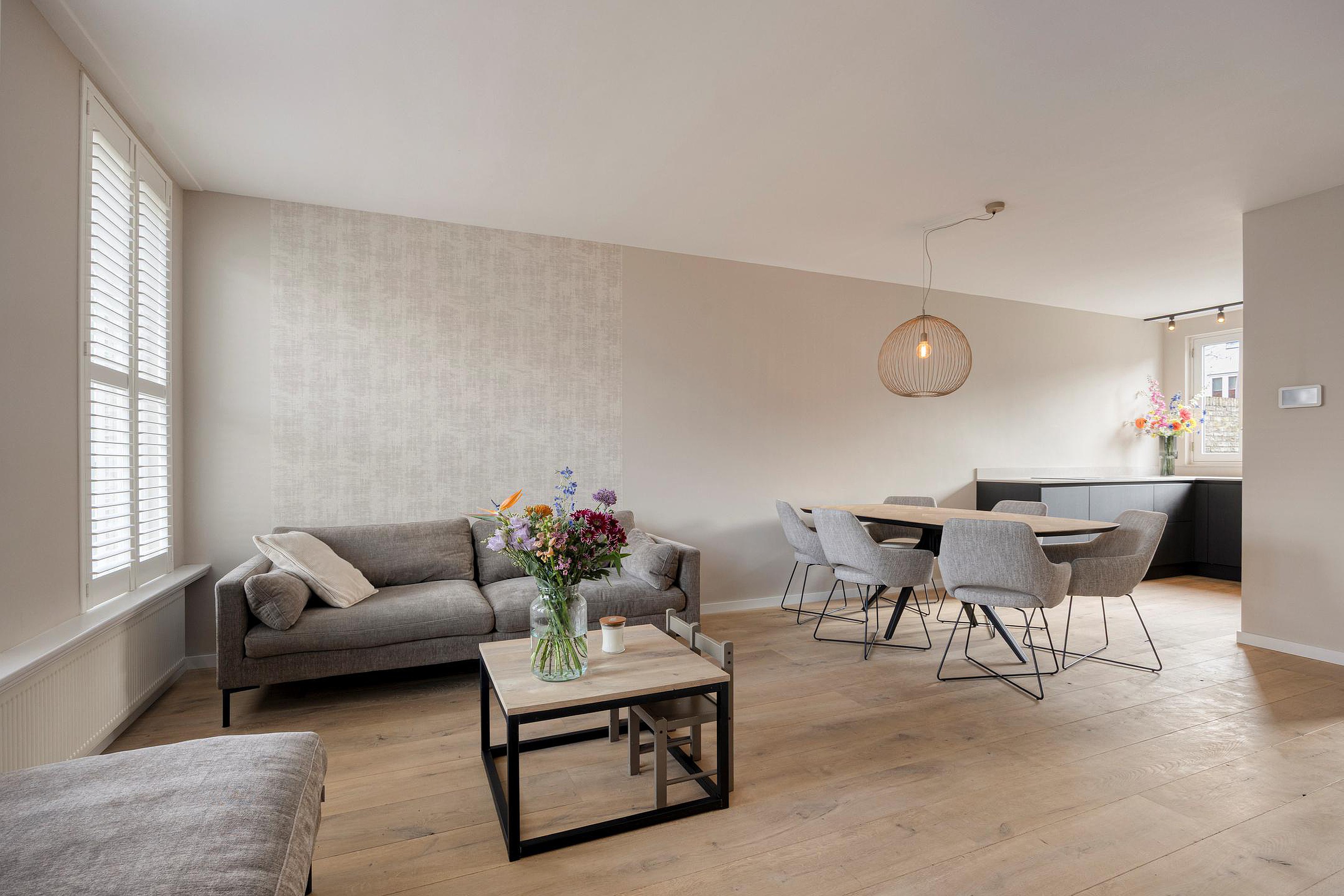 Via de entree met toilet en trapopgang kom je in de lichte woonkamer. Grote raampartijen zorgen voor een prettige verbinding met de tuin en laten het daglicht rijkelijk binnenstromen. De leefruimte voelt open en comfortabel.