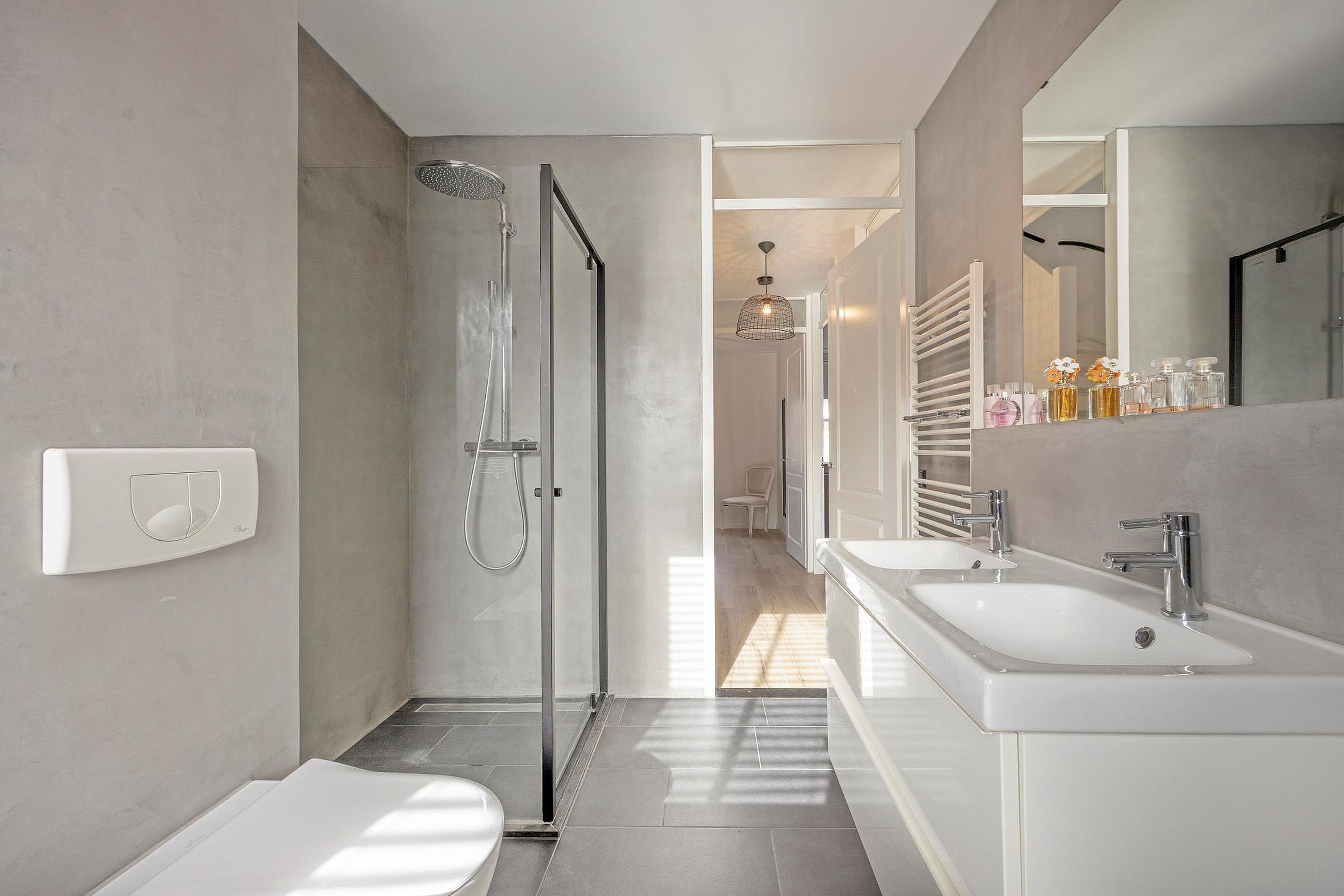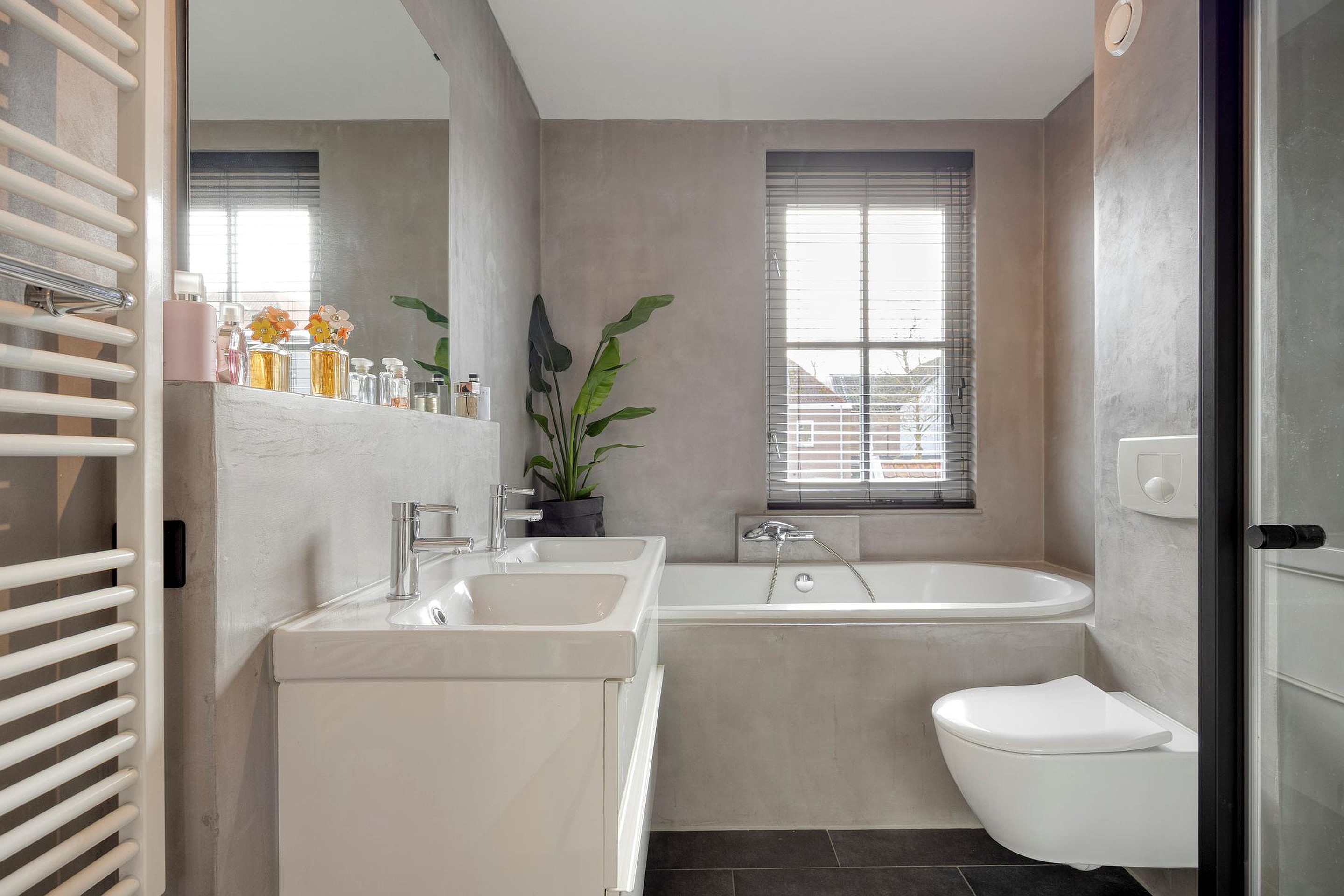 Op de eerste verdieping bevinden zich drie volwaardige slaapkamers en een verzorgde, moderne badkamer (2021) met ligbad, douche, toilet en dubbele wastafel, praktisch en stijlvol ingericht voor het hele gezin.