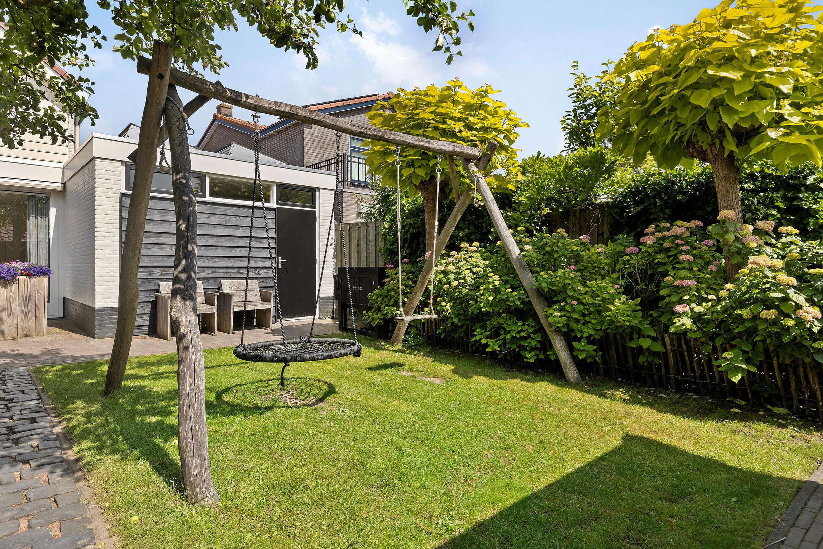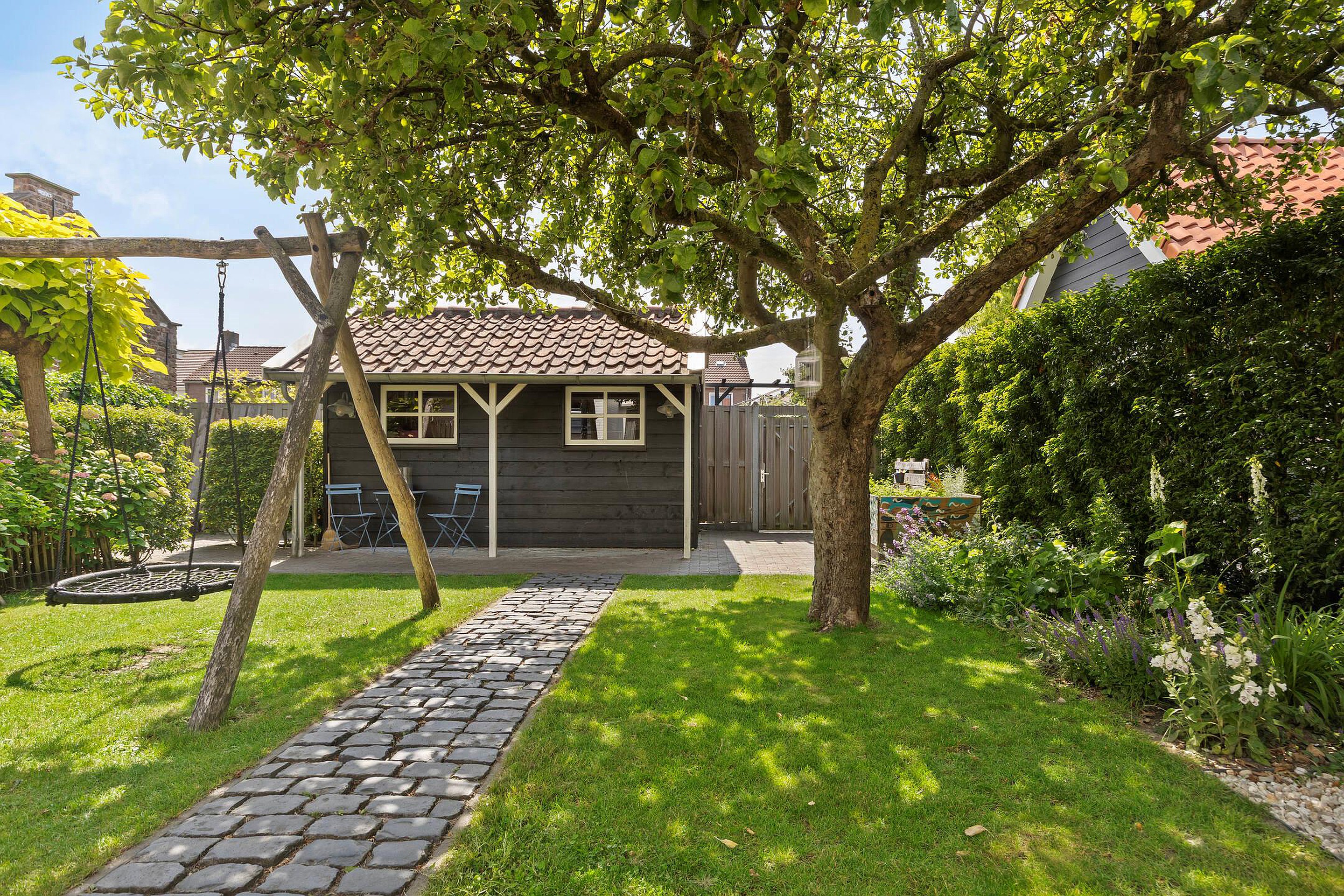De fraai aangelegde achtertuin is ruim, goed onderhouden en beschikt over een gepotdekselde berging met karakteristieke oude dakpannen. Of u nu van tuinieren houdt of juist lekker wilt ontspannen: dit is een plek waar u alle kanten op kunt. Aan de voorzijde beschikt u over een oprit met ruimte voor twee auto’s.