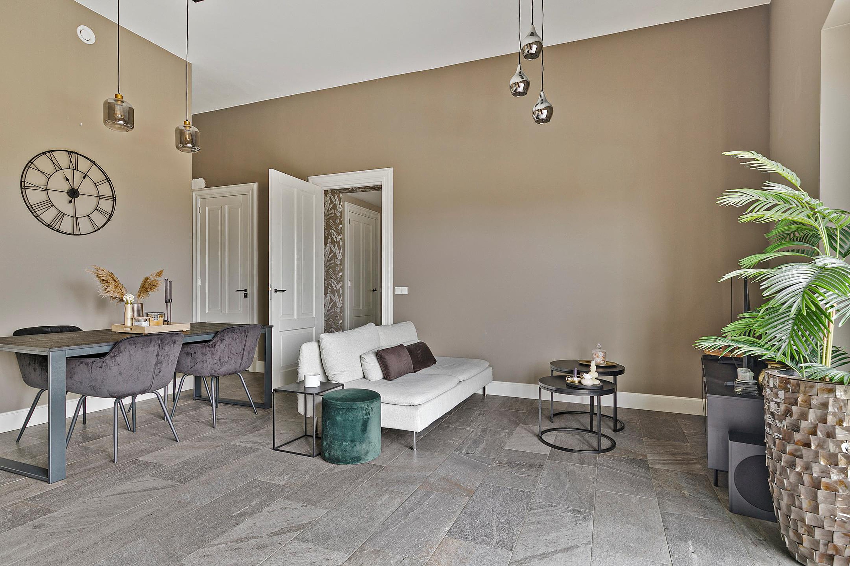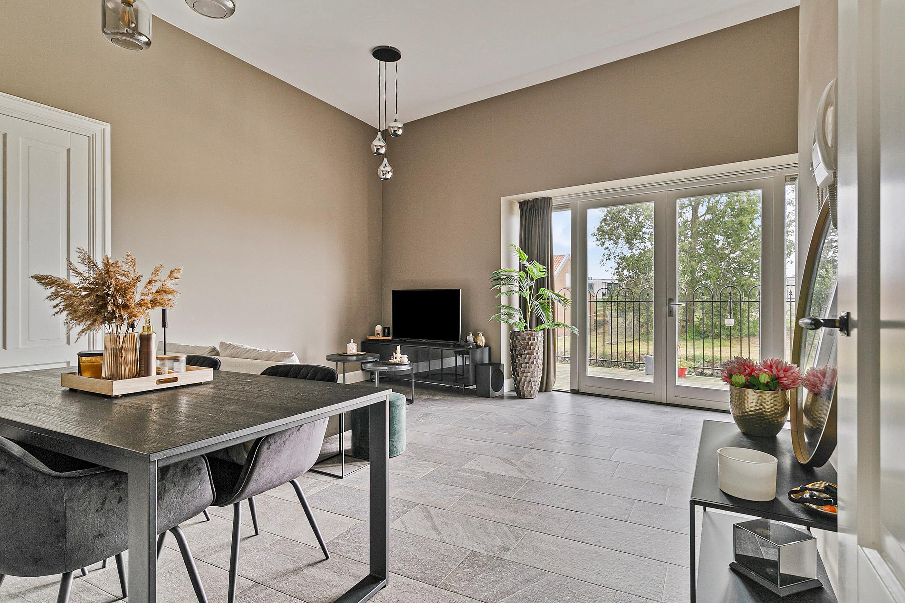 Begane grond Via de entree stap je binnen in de lichte, moderne woonkamer met vloerverwarming. De grote raampartijen halen het daglicht naar binnen en creëren een warme, uitnodigende sfeer.