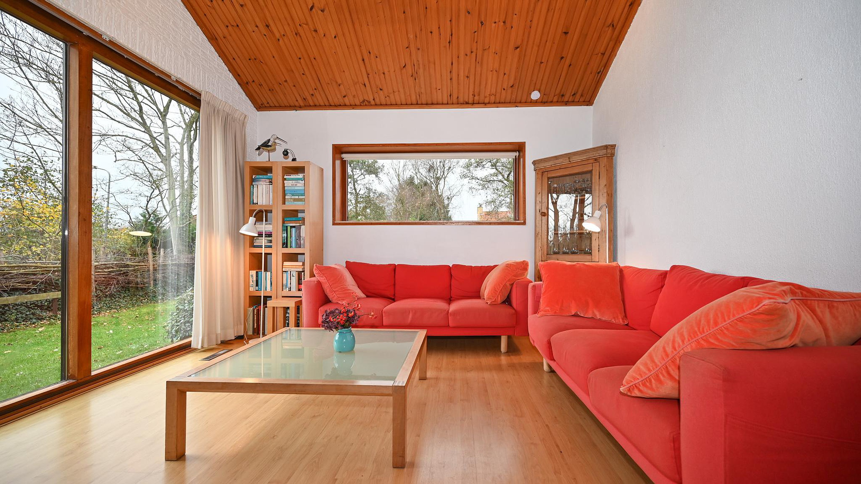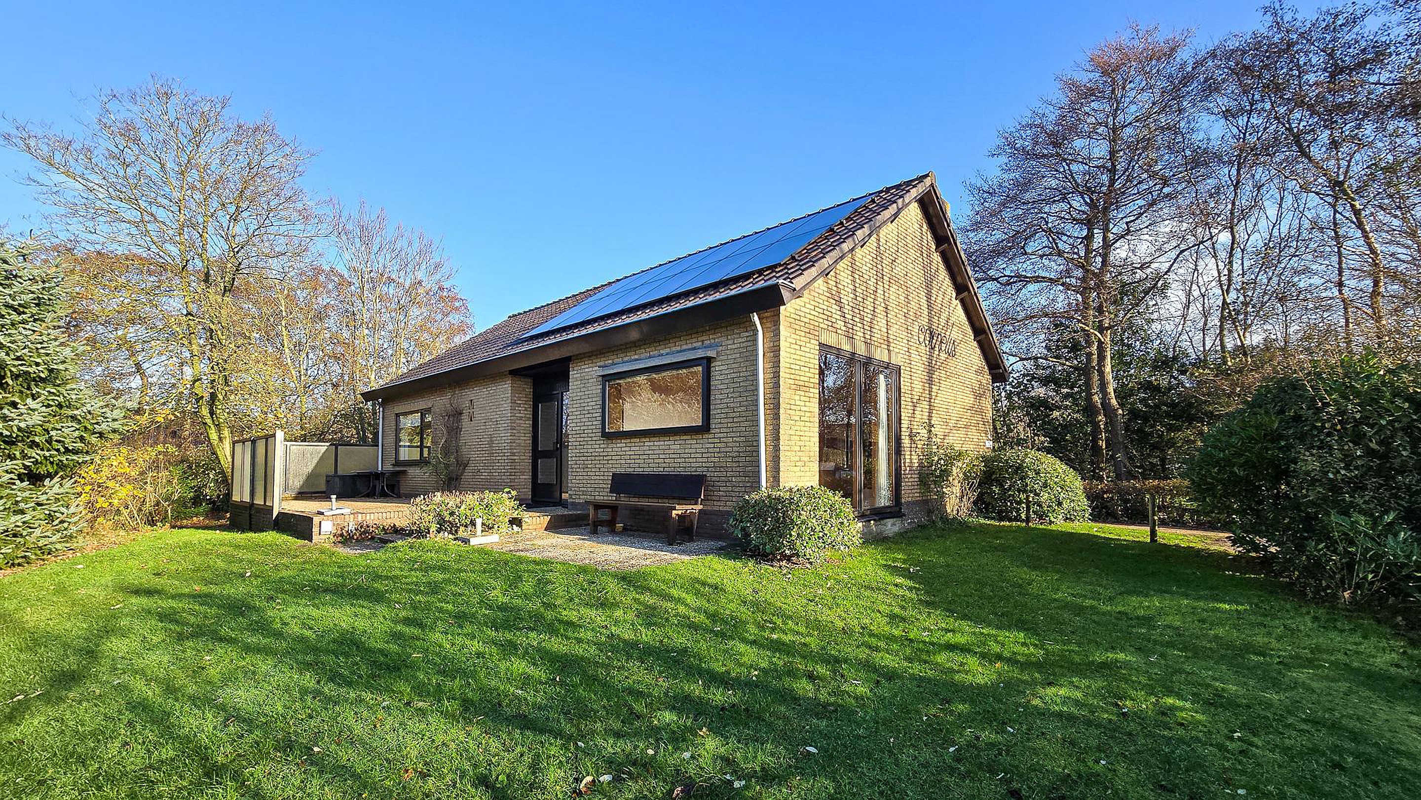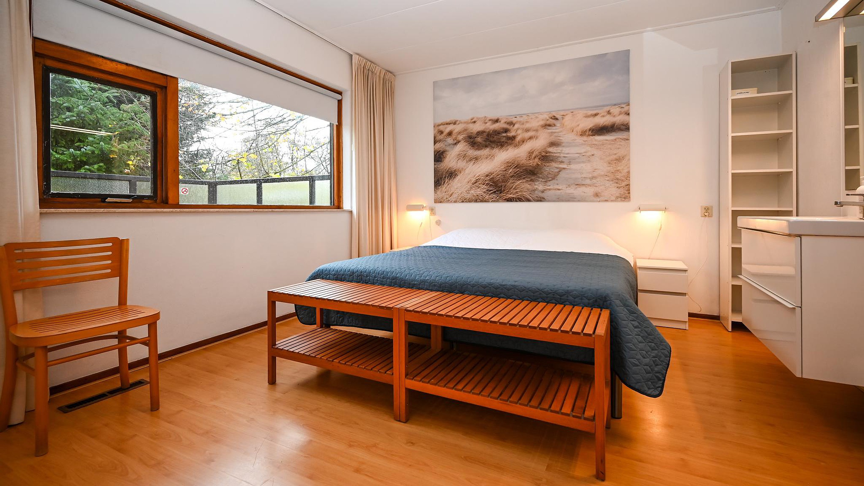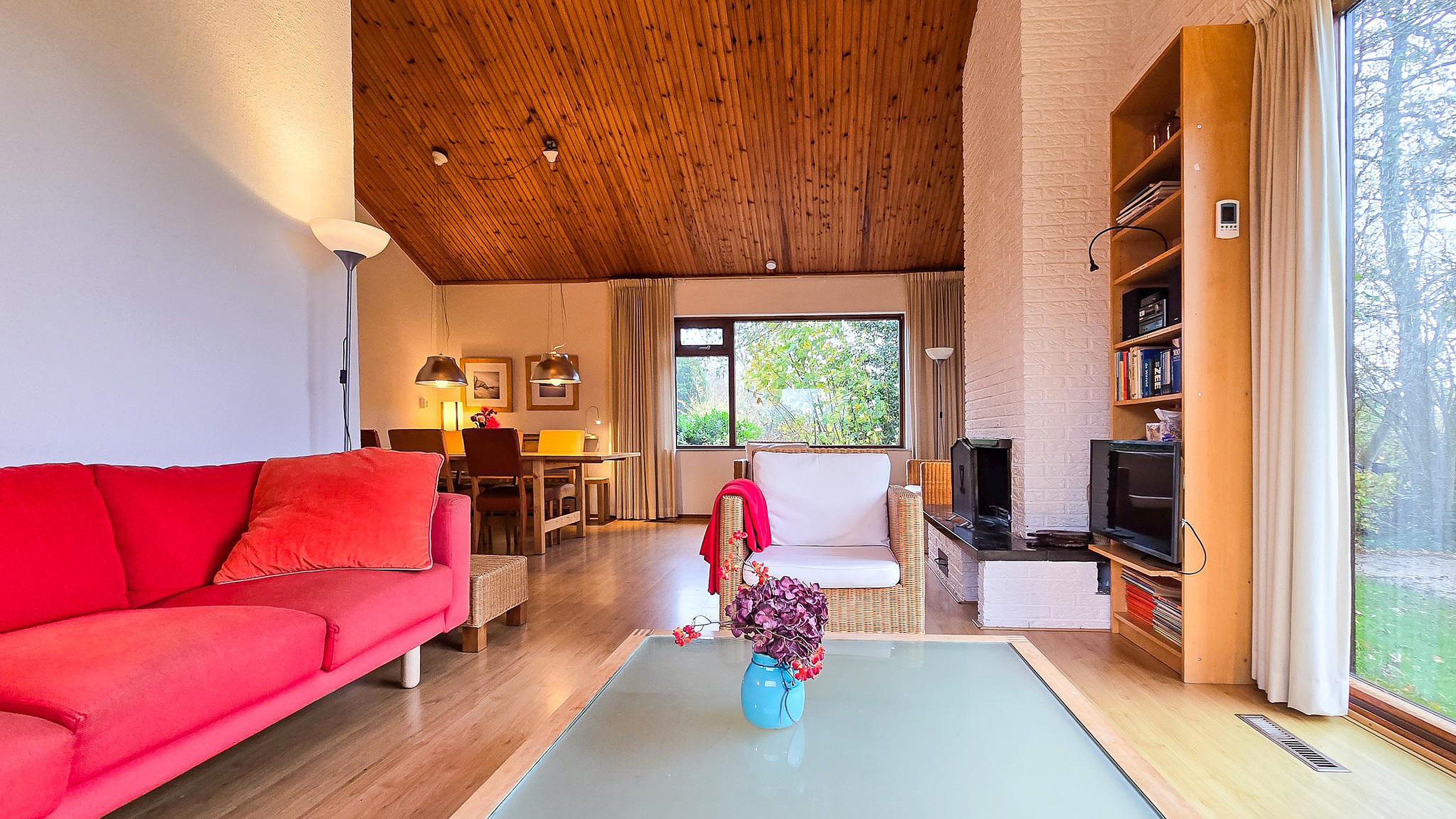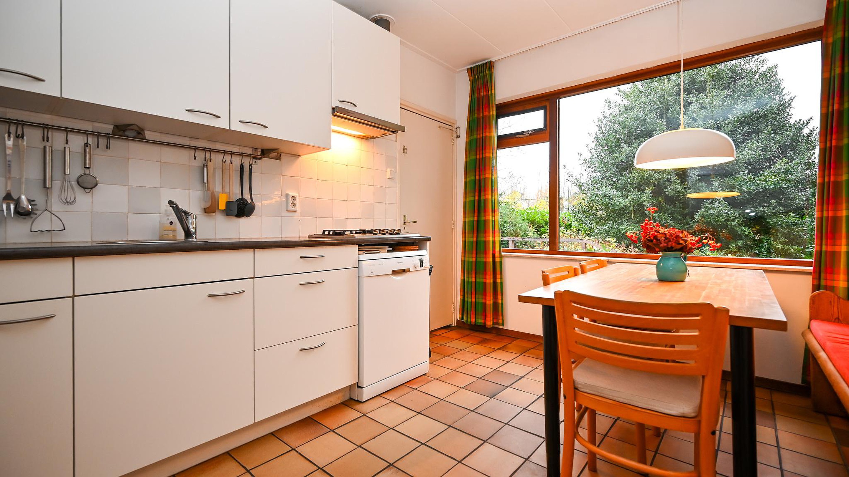 De woning beschikt over een royale woonkamer met uitzicht op de tuin en een open kapconstructie, waardoor de ruimte extra ruimtelijk en sfeervol aanvoelt. De woonkamer beschikt daarbij over een eethoek en een open haard voor warmte en sfeer. De keuken, direct verbonden met de woonkamer, is voorzien van moderne gemakken. Vanuit hier is de praktische bijkeuken bereikbaar, met toegang tot zowel de tuin als de badkamer. Op de begane grond bevindt zich daarnaast een ruime slaapkamer met inbouwkasten en een wastafel, een separaat toilet en een royale hal. Op de verdieping bevinden zich twee comfortabele slaapkamers. Eén kamer biedt plaats aan drie slaapplekken, de andere aan twee, en beide zijn voorzien van een eigen wastafel. Daarnaast beschikt de overloop over een separaat toilet.