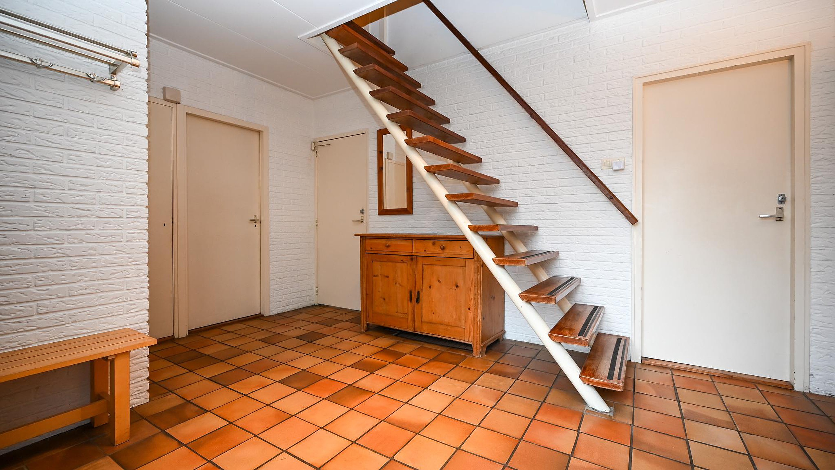 Hal, afmeting ca. 2.10/3.70 x 3.20/4.30 m (incl. trapopgang)