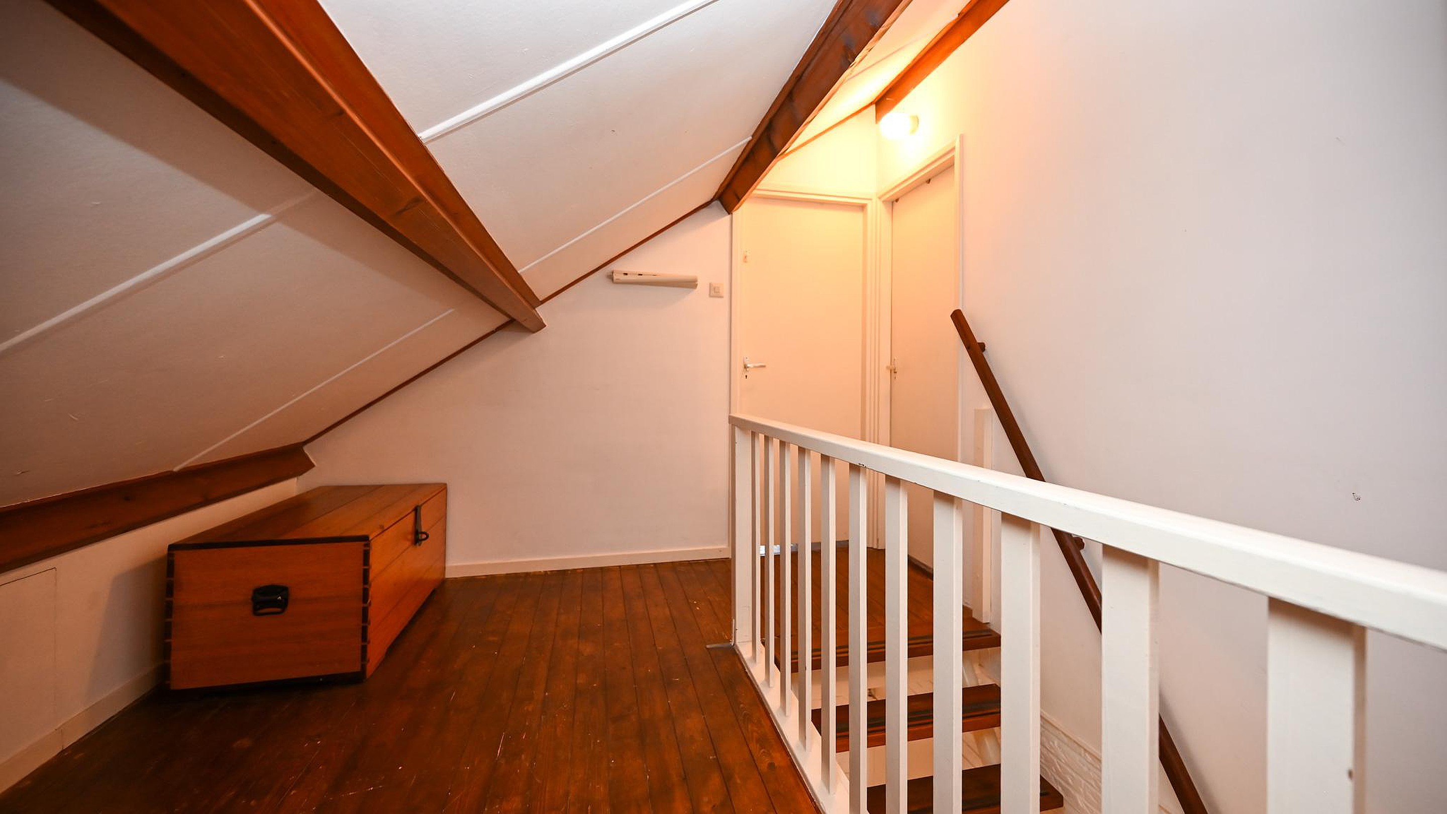Eerste verdieping Via de trapopgang in de hal bereikt u de overloop. Vanaf de overloop heeft u toegang tot twee slaapkamers en een separaat toilet.