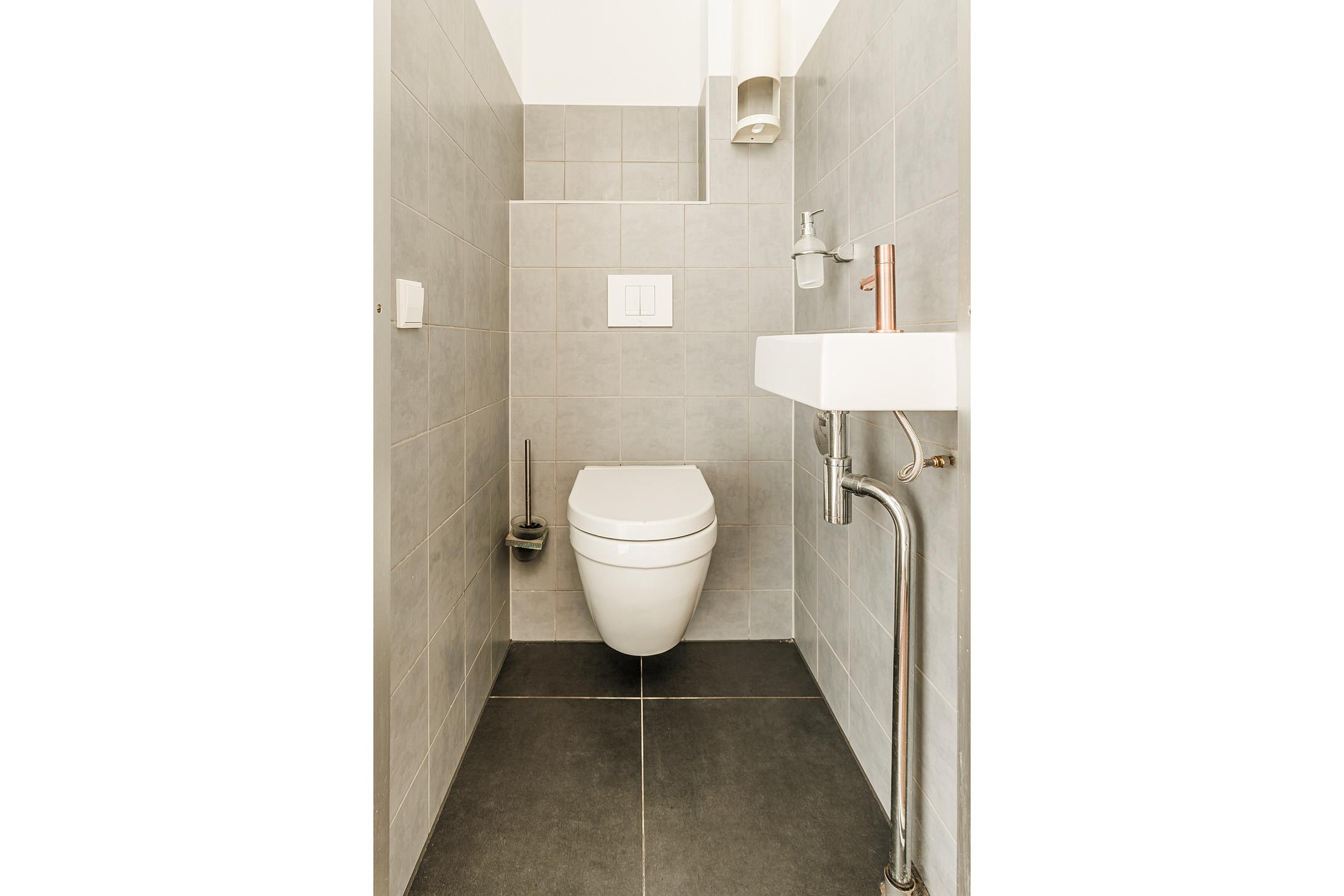 Entree in de hal met meterkast en toegang tot de woonkamer. De woonkamer is ruim, licht en biedt voldoende plaats voor een comfortabele zithoek en eettafel. Aan de achterzijde bevindt zich de keuken in L-vormige opstelling, voorzien van een nieuwe inductiekookplaat, afzuigkap en vaatwasser. De wandopstelling beschikt daarnaast over een koel-/vriescombinatie en een combi-oven. Vanuit de keuken stap je direct de zonnige achtertuin op het westen in. In de tussenhal bevinden zich het toilet en de trapopgang naar de eerste verdieping.