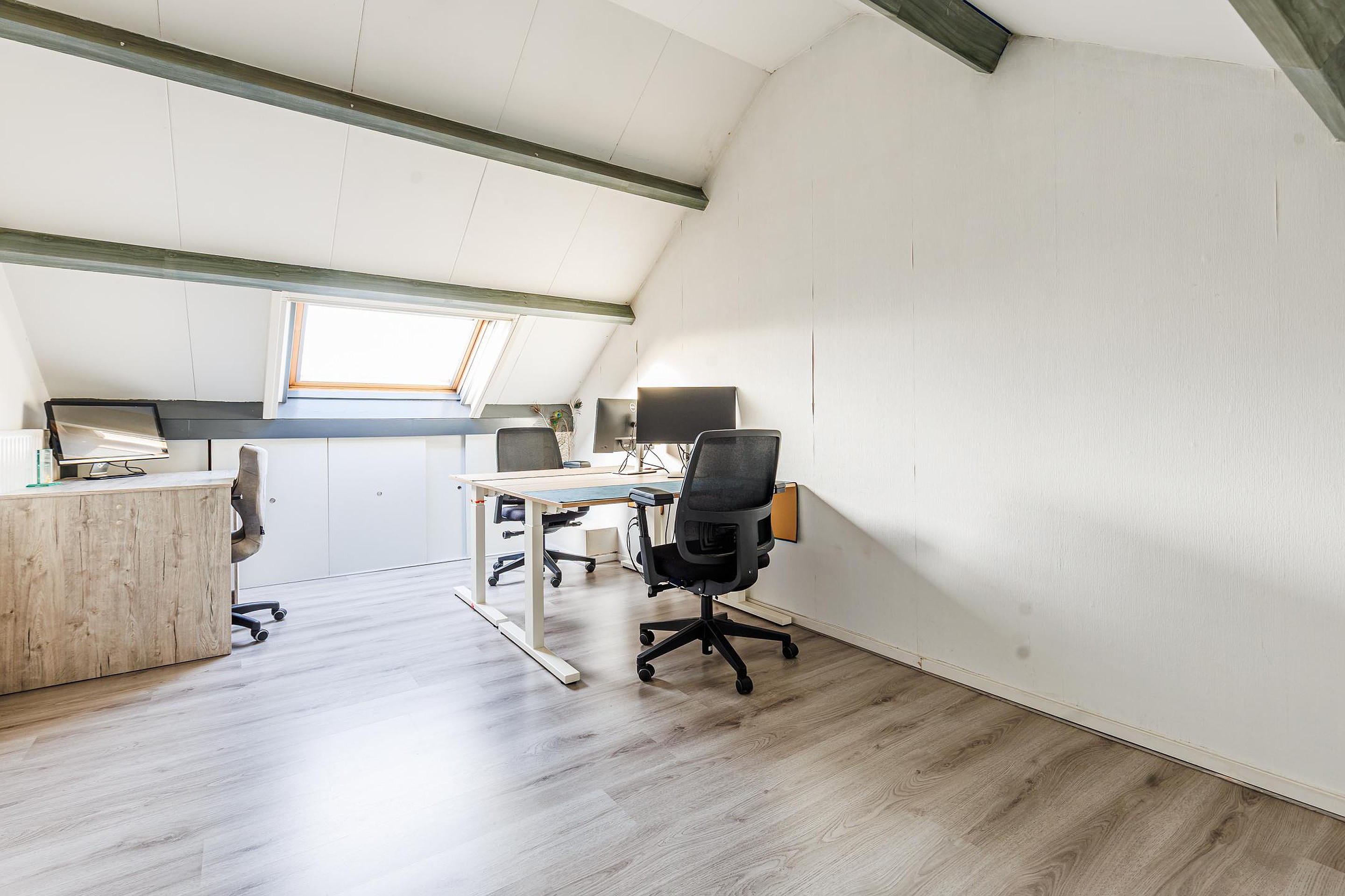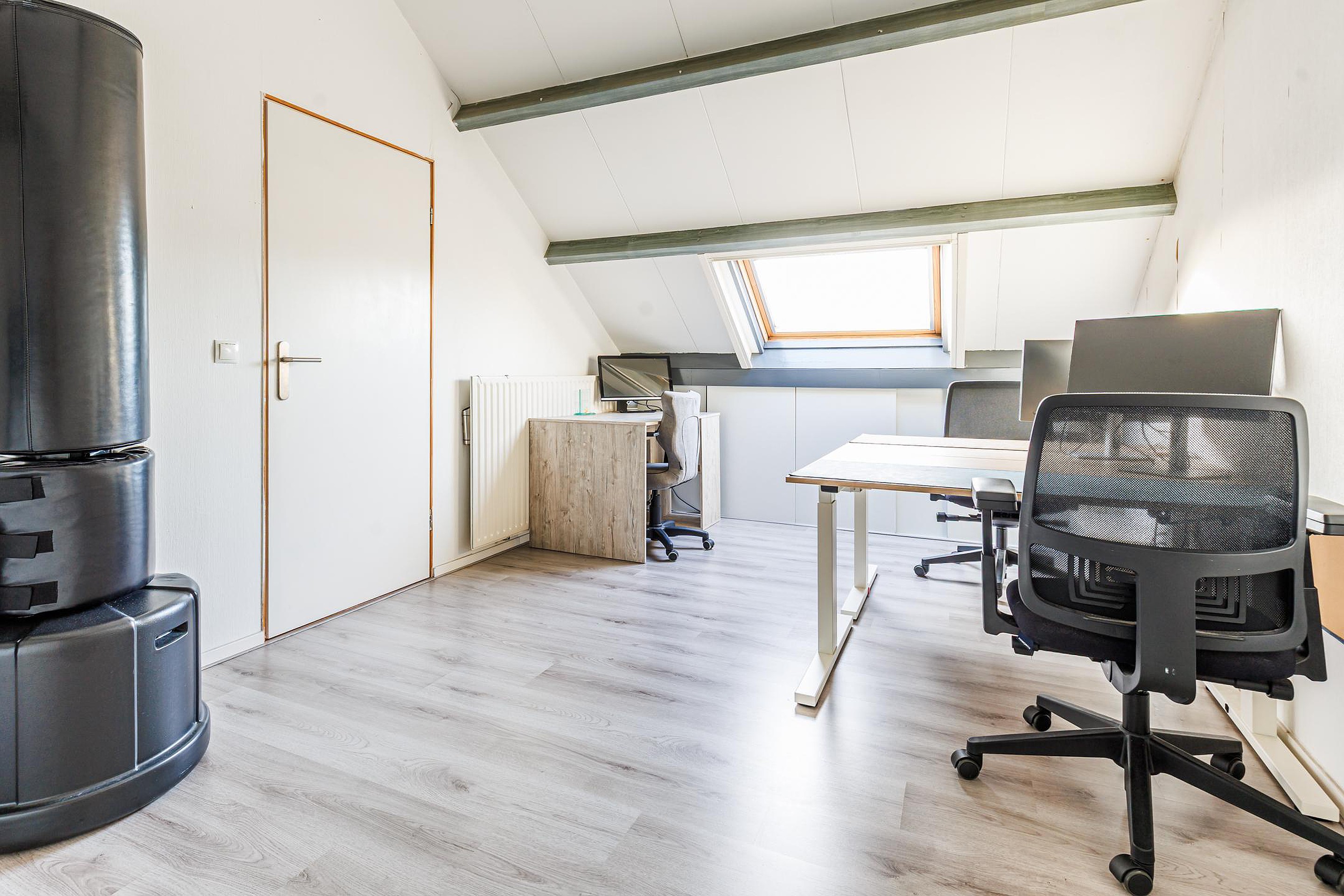 De voorzolder beschikt over een Velux-dakraam, aansluitingen voor wasapparatuur, de opstelplaats van de cv-ketel en extra bergruimte achter de knieschotten. Hier bevindt zich tevens de vierde slaapkamer, eveneens voorzien van een dakraam en handige bergruimte.