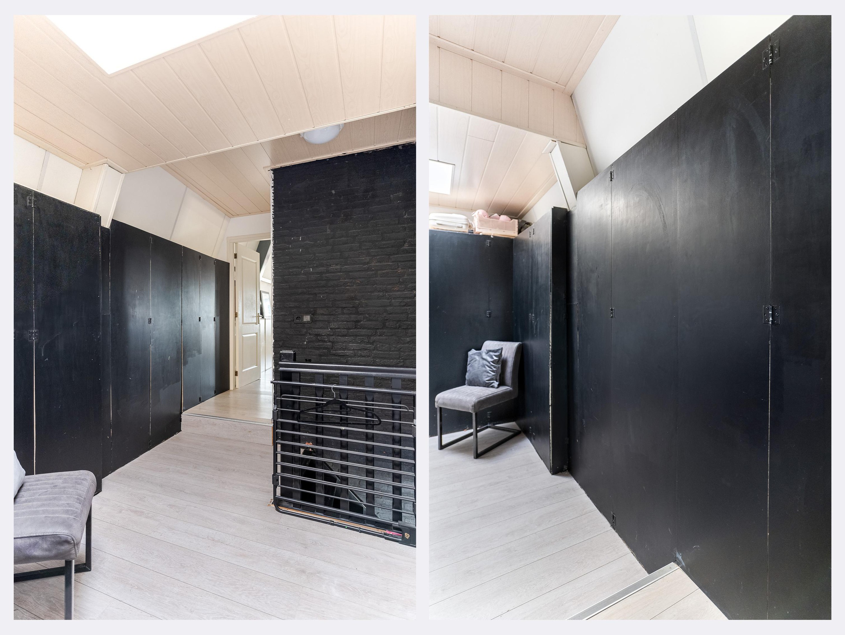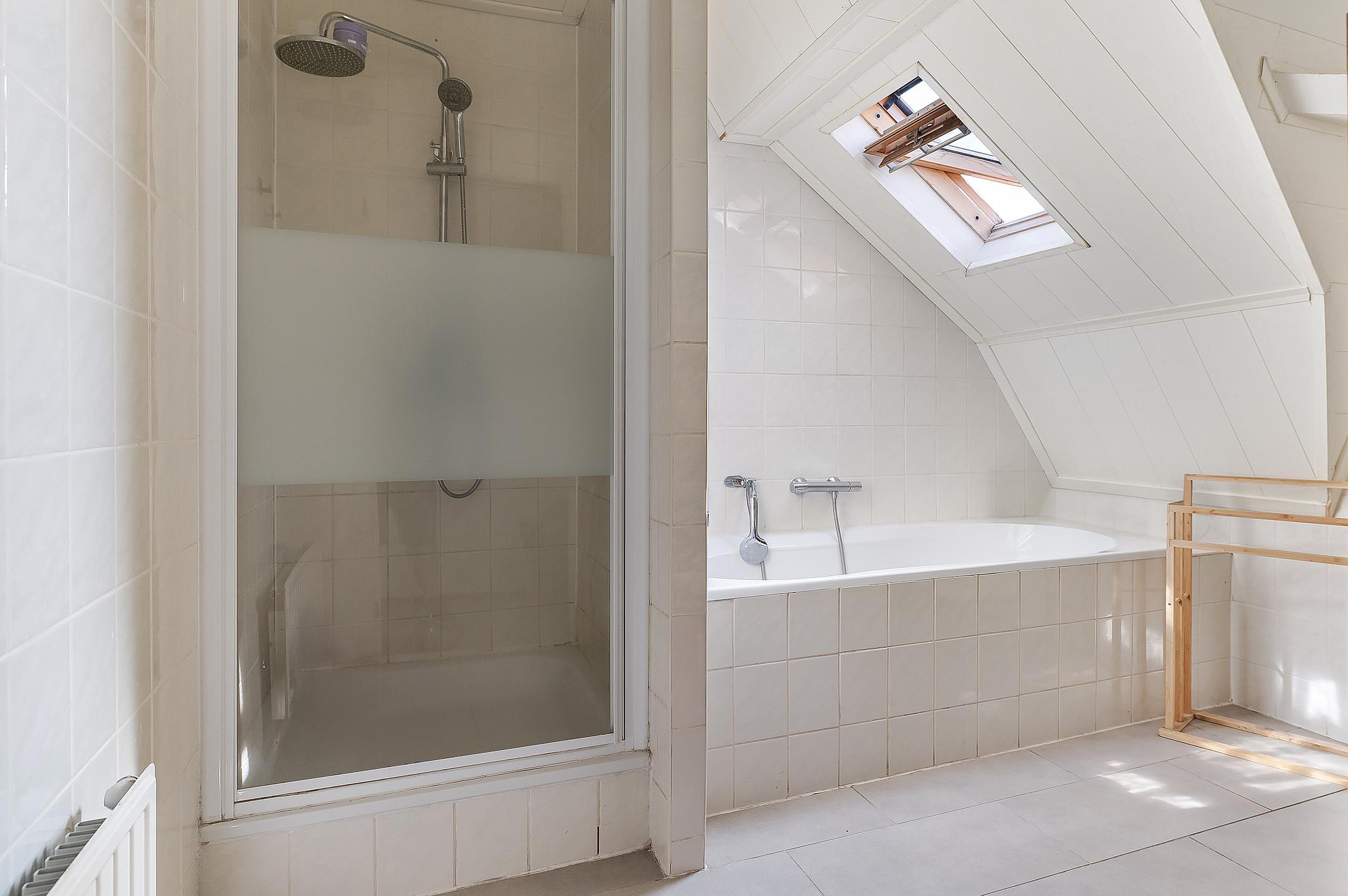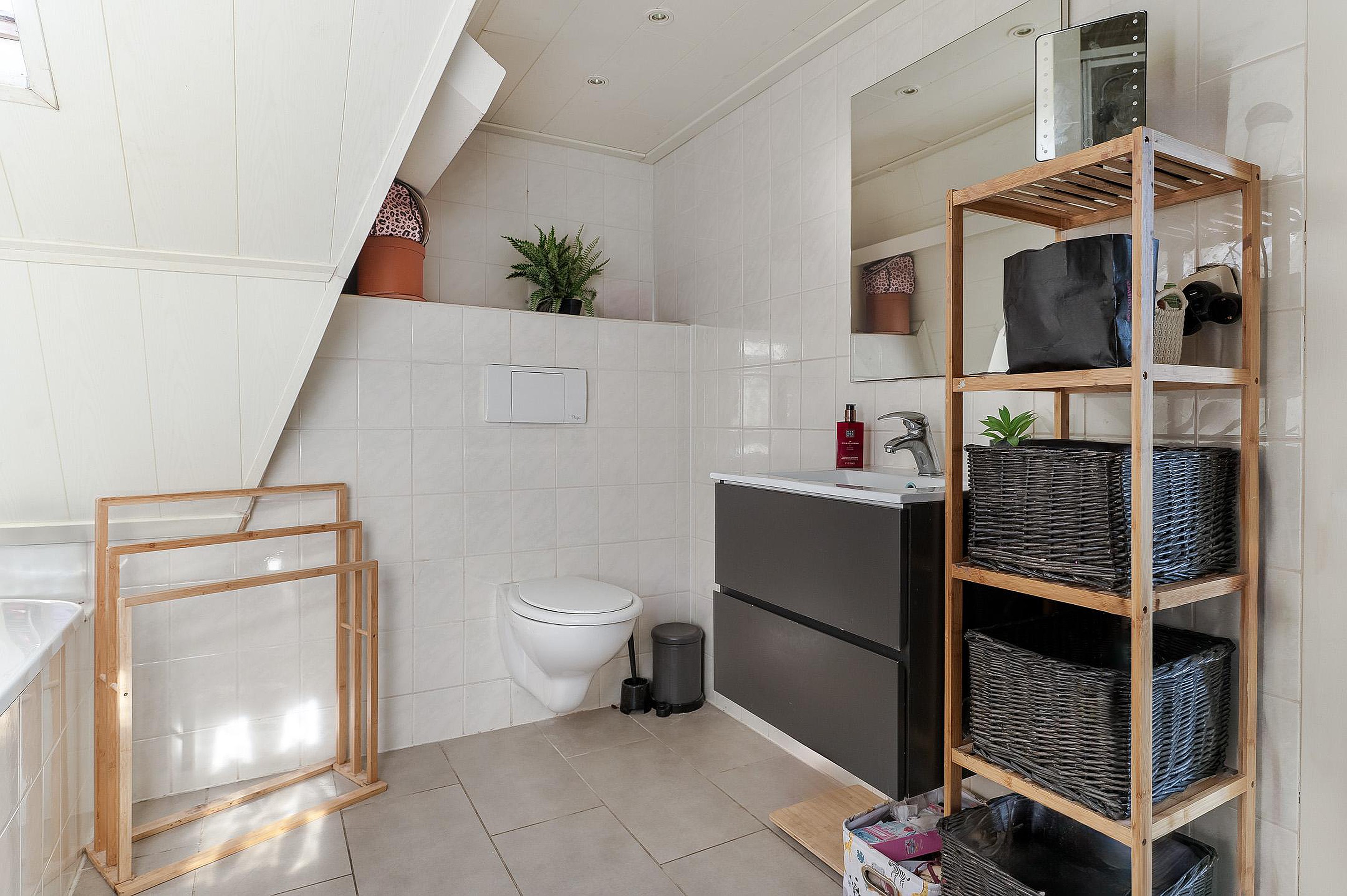 Overloop met vaste kasten en toegang tot drie ruime slaapkamers, waarvan de grootste is voorzien van airconditioning. De badkamer is compleet ingericht met ligbad, douche, wastafelmeubel en tweede toilet.