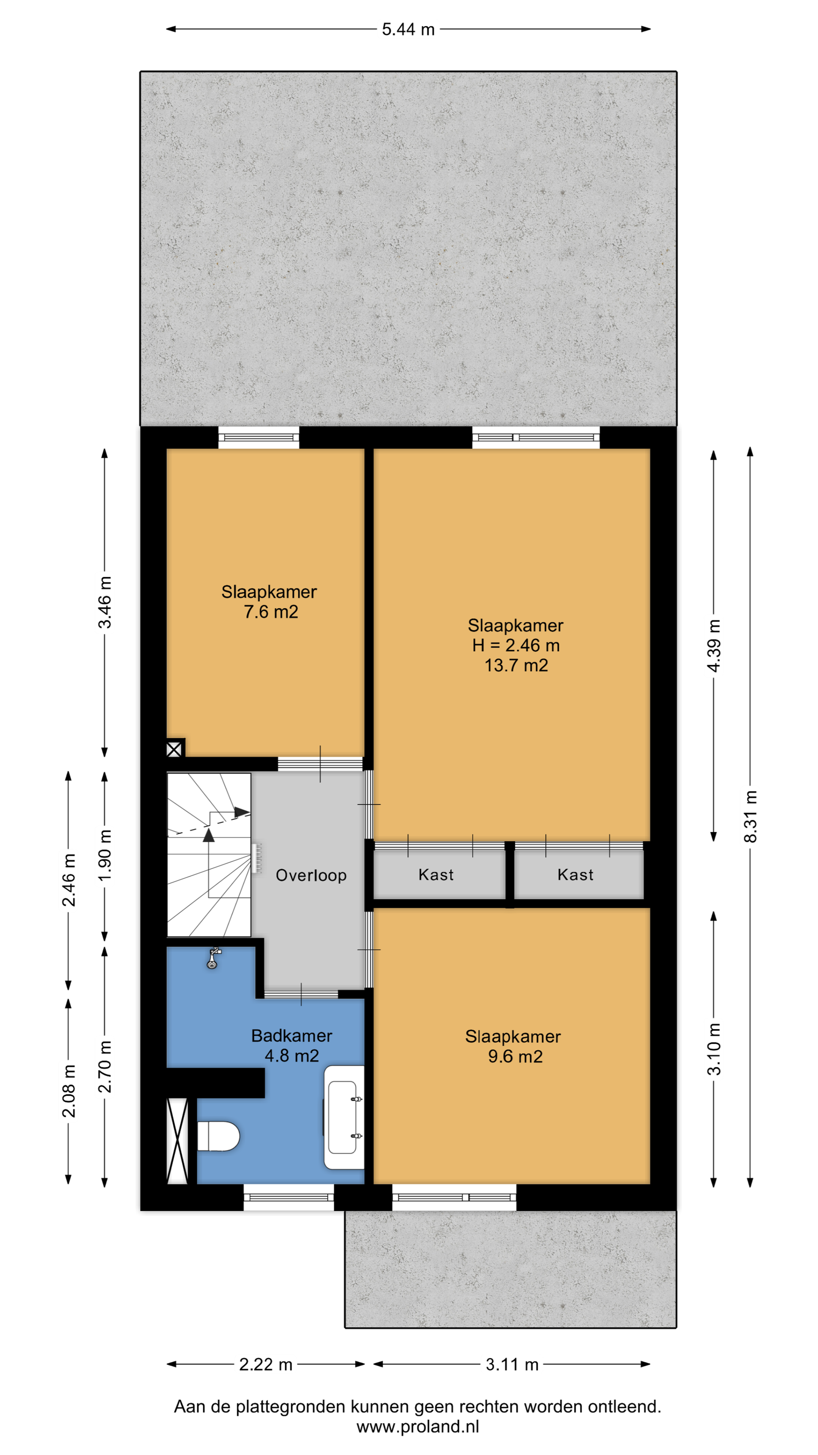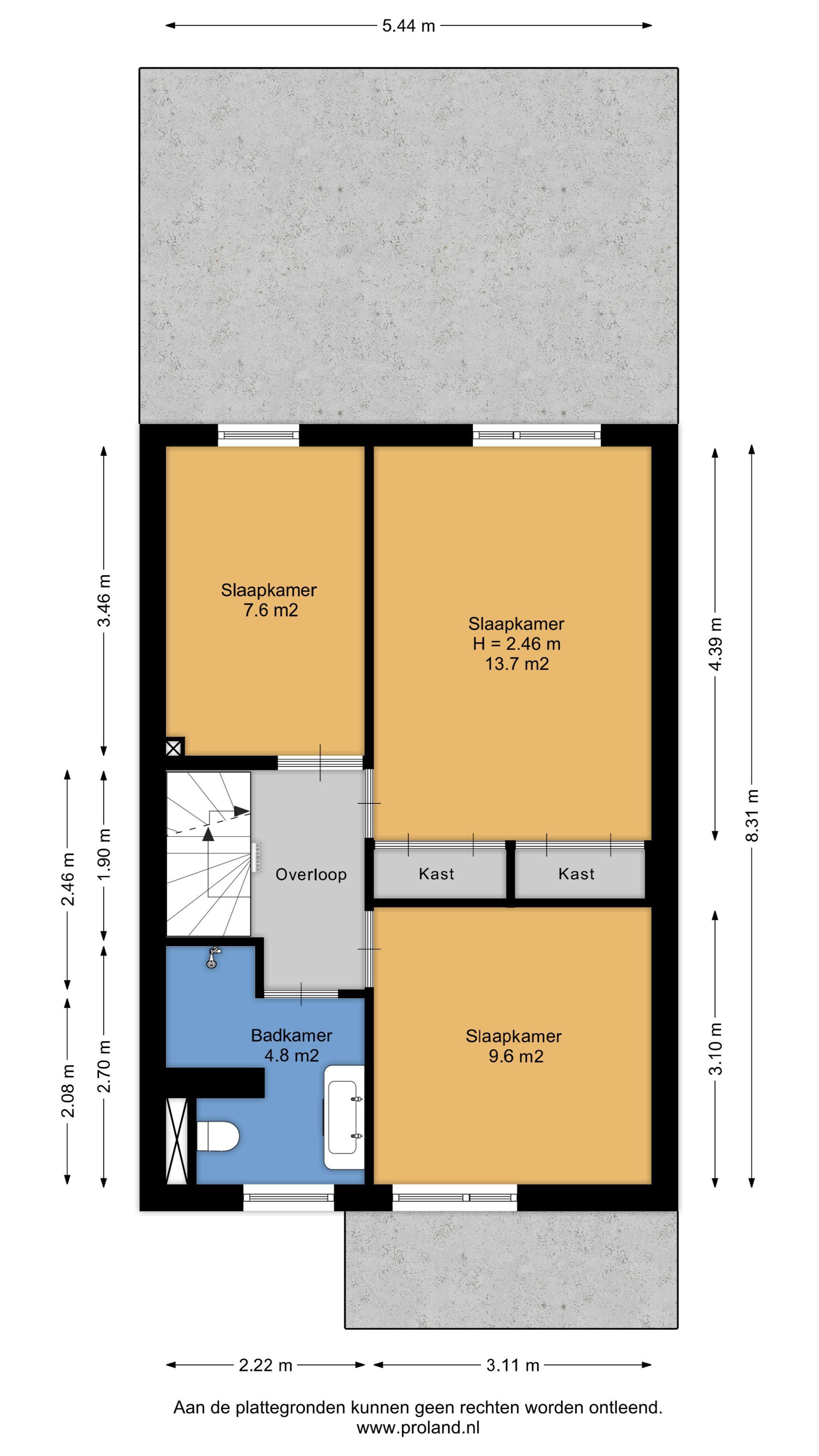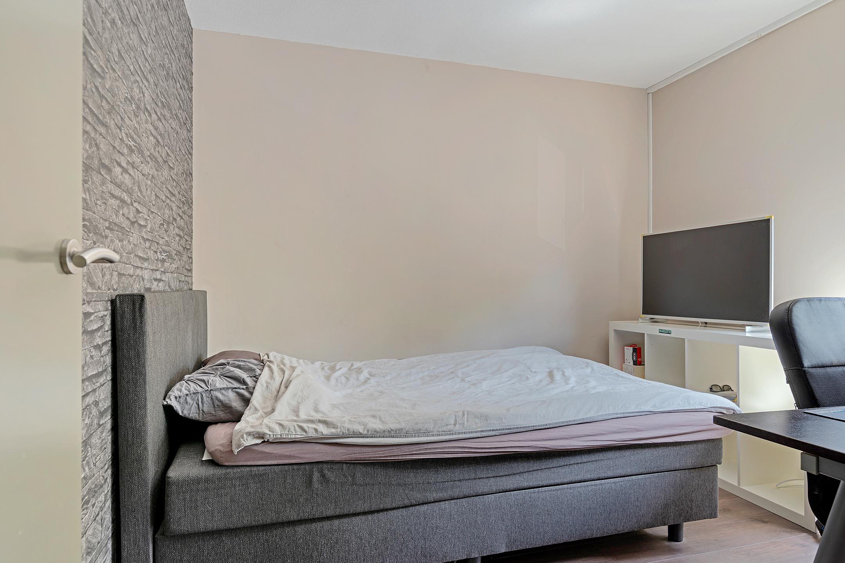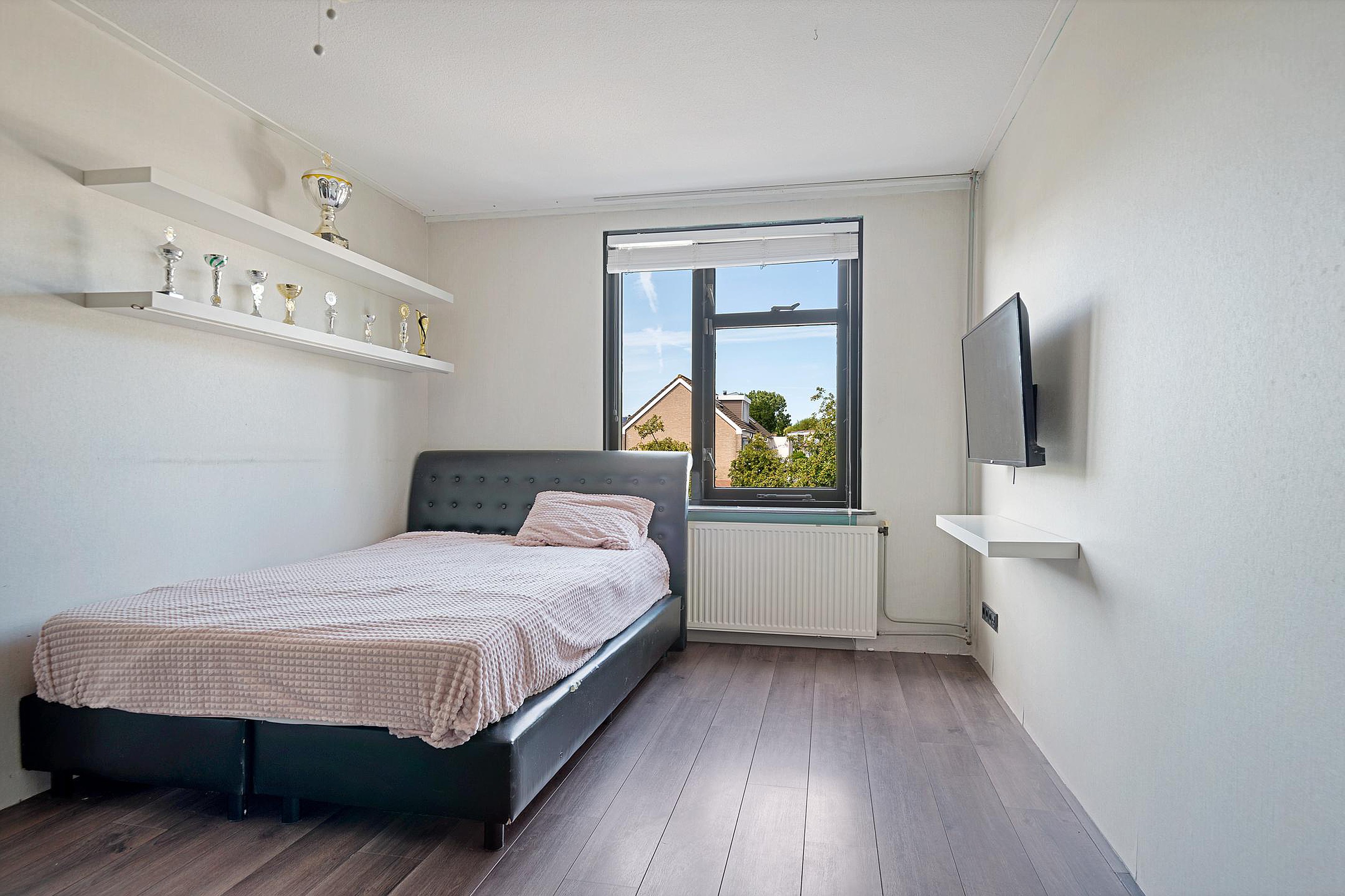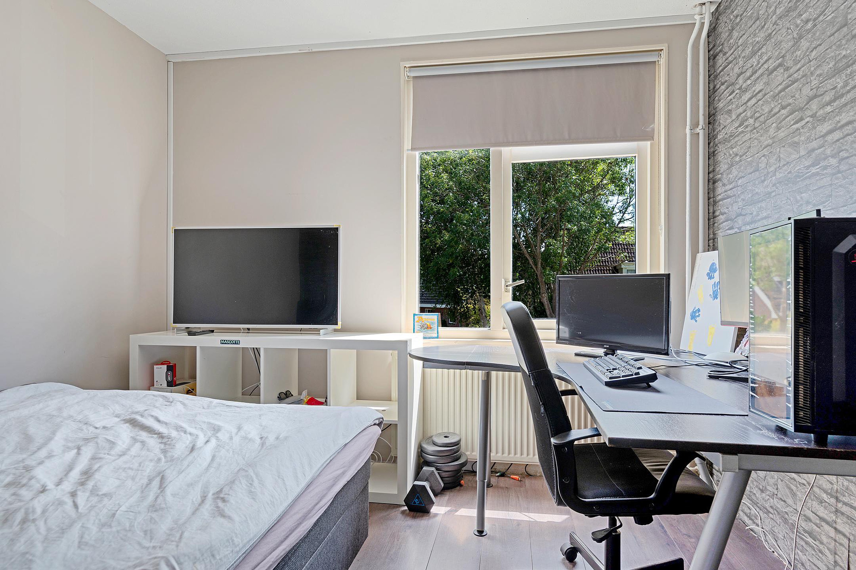 De trap in de hal brengt je op eerste etage waar je een drietal slaapkamers, voorzien van laminaatvloer, en een badkamer vindt. De 3 slaapkamers zijn ruim van formaat en zowel de grootste als de kleinste slaapkamer aan de achterzijde van de woning beschikken over een vaste kastenwand over de volle breedte van de kamer. Dat geeft nog eens lekker veel opbergruimte! De badkamer is recent vernieuwd en heeft een dubbele wastafel met meubel, een inloopdouche en een tweede toilet.