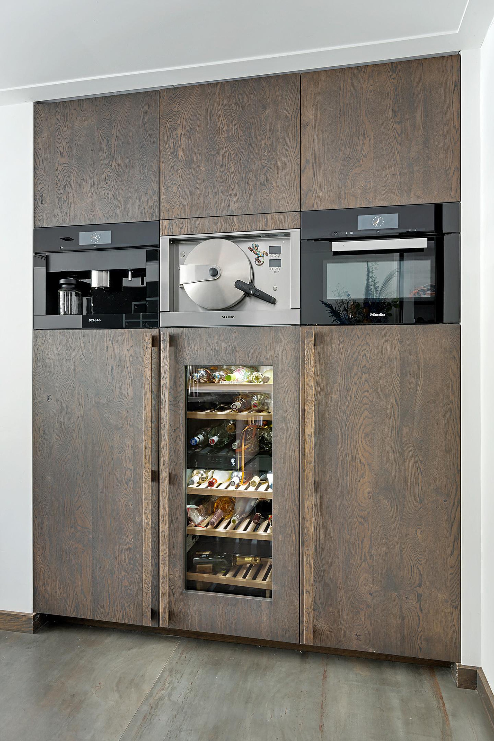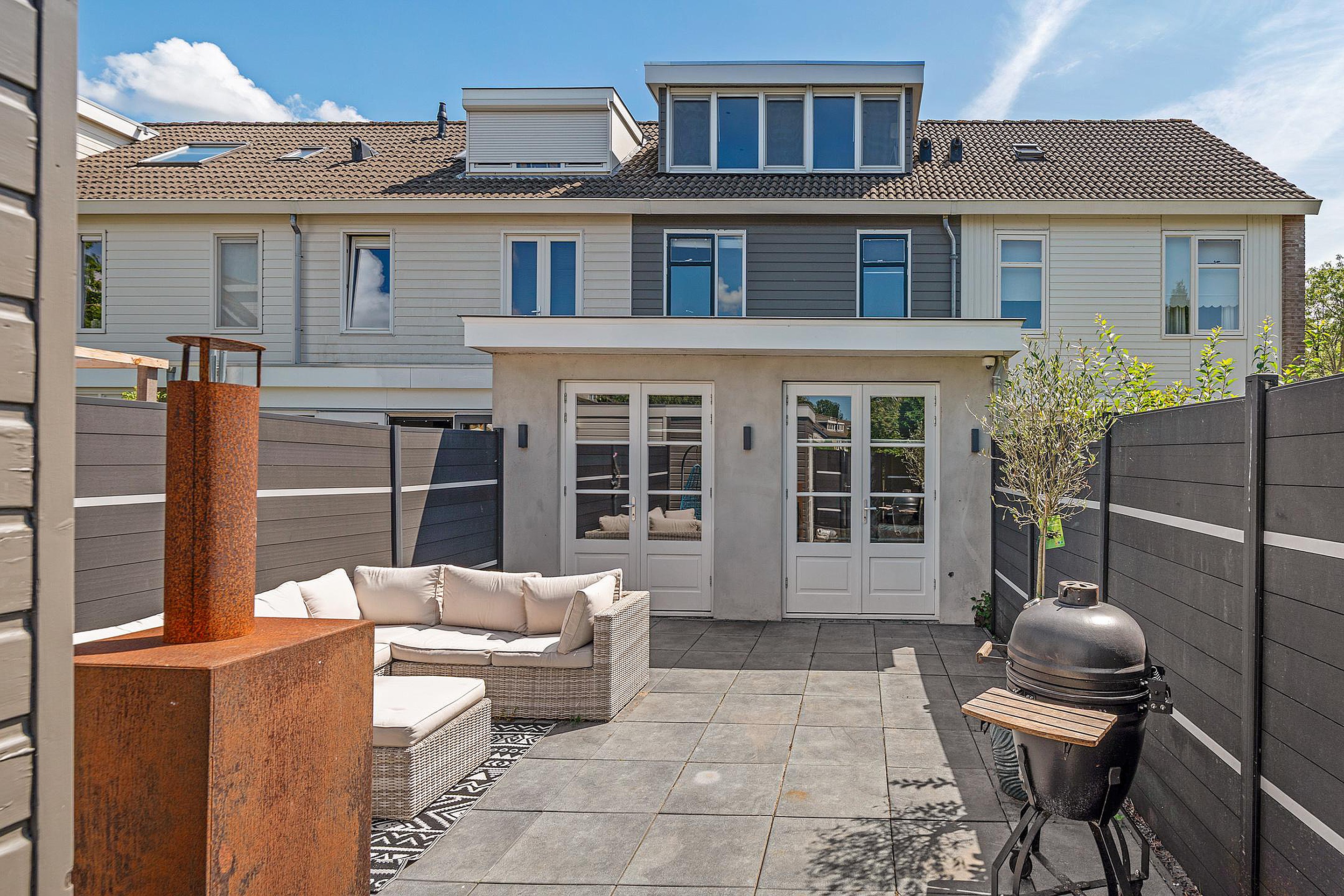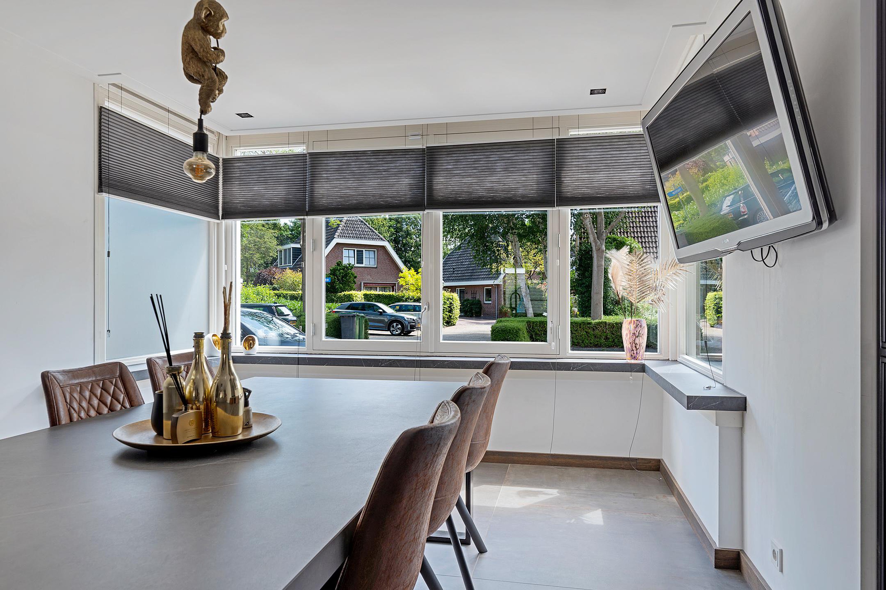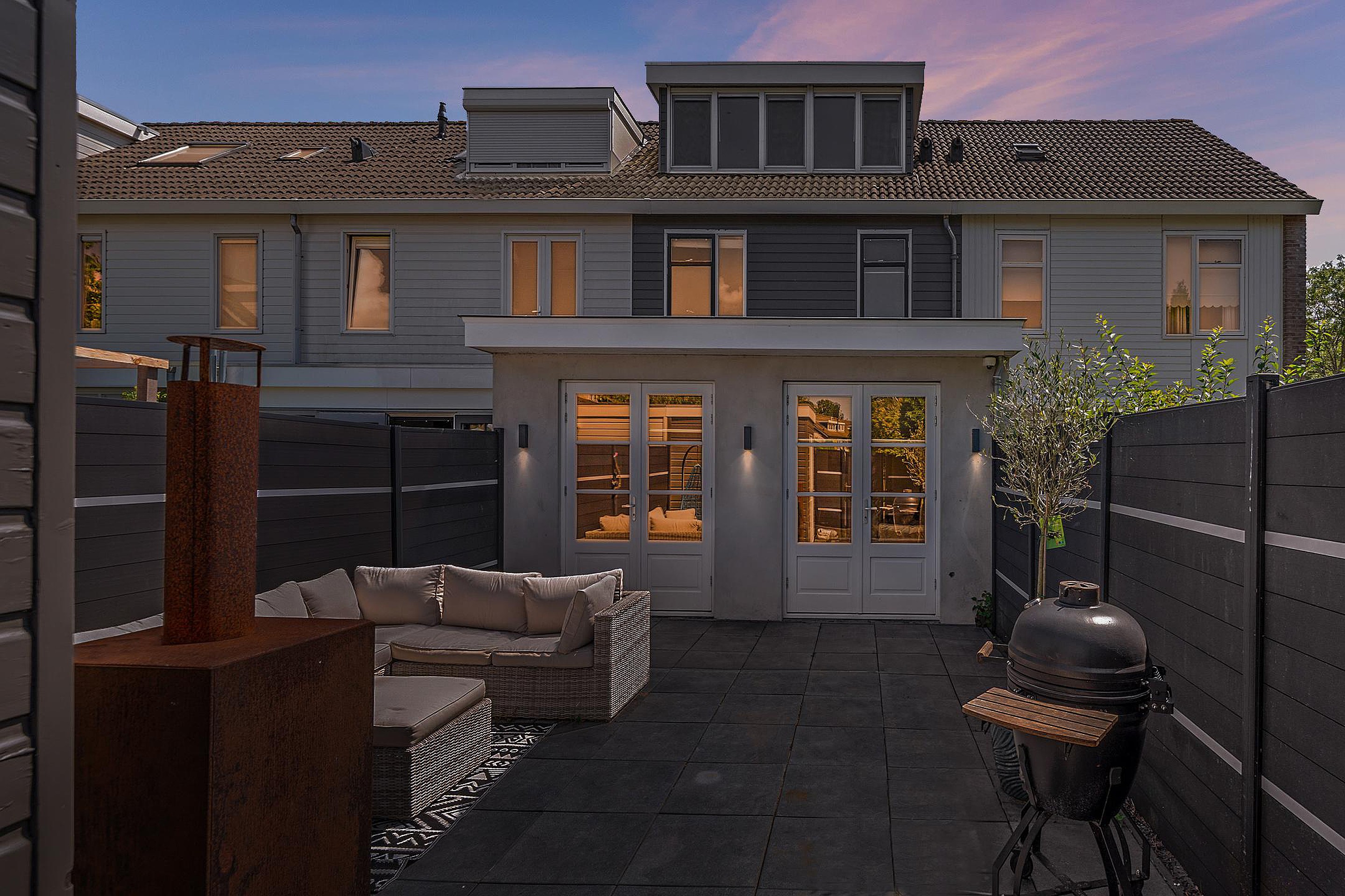 De woning is zowel aan de voor- als achterzijde flink uitgebouwd, waardoor er bijzonder veel leefruimte is ontstaan op de begane grond. Via de hal, met nieuwe meterkast en zeer mooi afgewerkte toiletruimte, loop je via de stalen deur de grote woonkeuken aan de voorzijde van de woning in. Direct vallen de prachtige gietvloer en het stoere aanrechtblad van Dekton op. Dit onderhoudsvrije natuurstenen blad loopt door in een ruime eettafel. Een prachtig geheel. In deze moderne keuken ontbreekt het je uiteraard aan niets. Een dubbele koelkast met vriezer, een strak vormgegeven 4-pits gasfornuis, vaatwasser, koffiemachine, ruime klimaatkast voor alle wijnen, een oven, magnetron, hogedruk stoomoven en koffiemachine van Miele zijn in deze handgemaakte keuken te vinden.