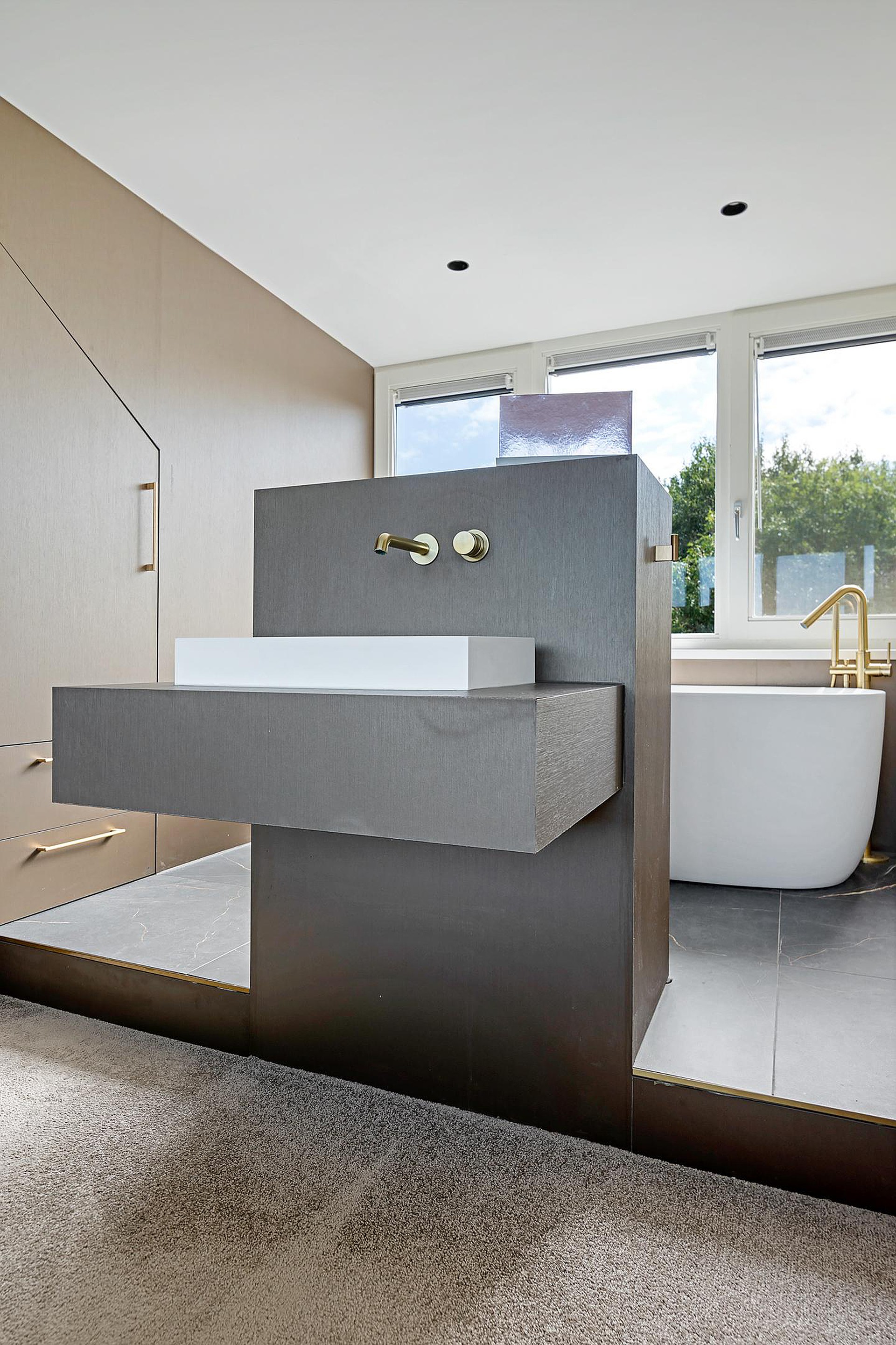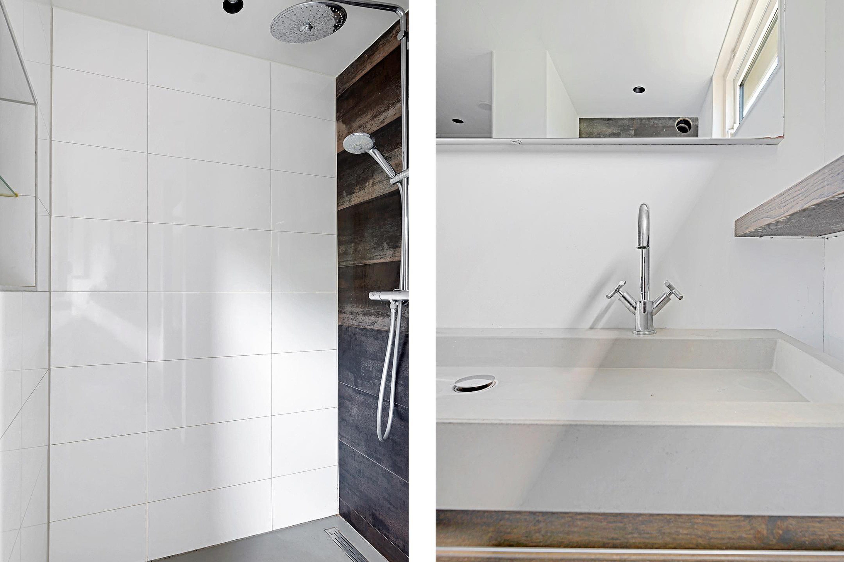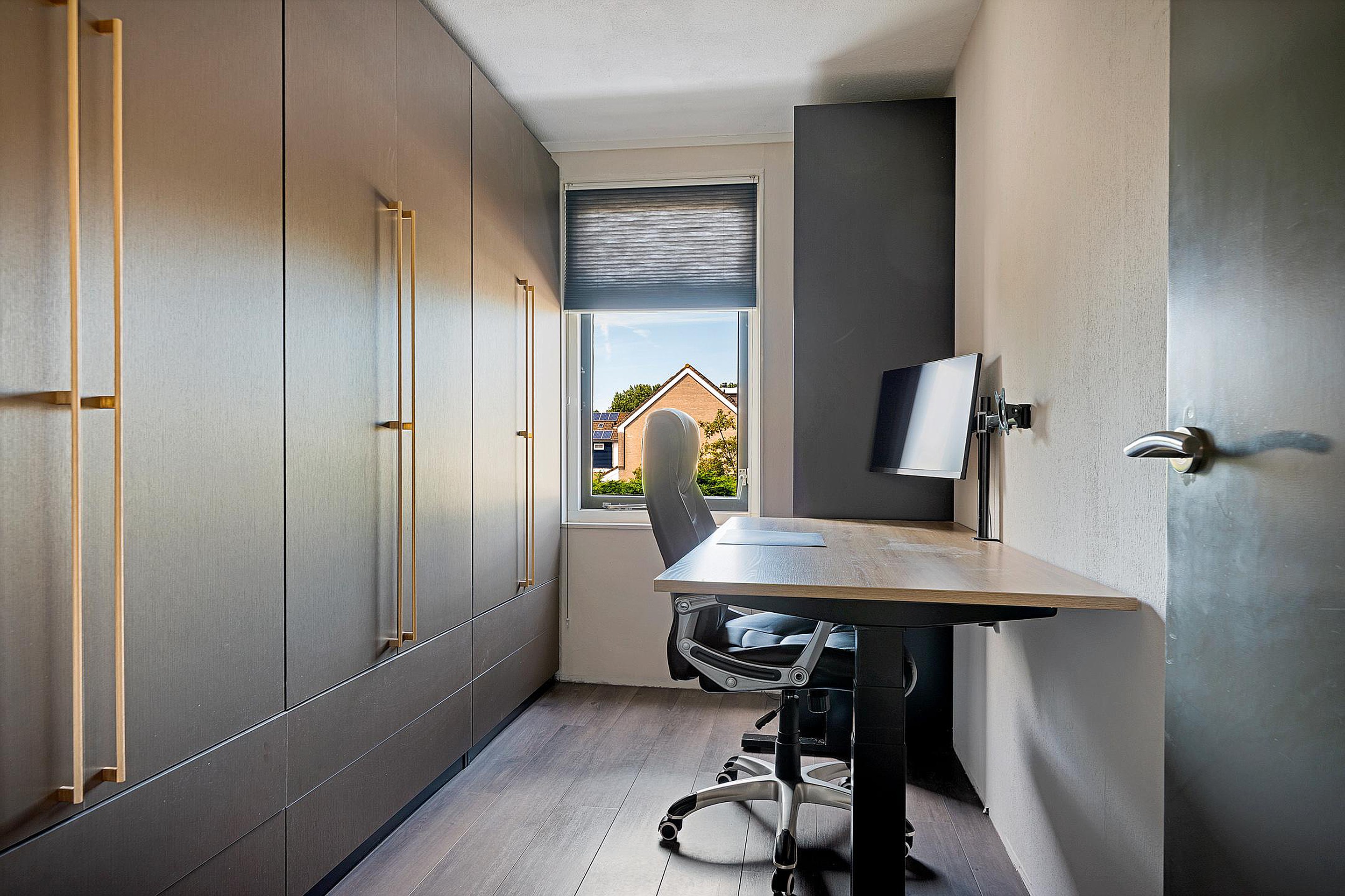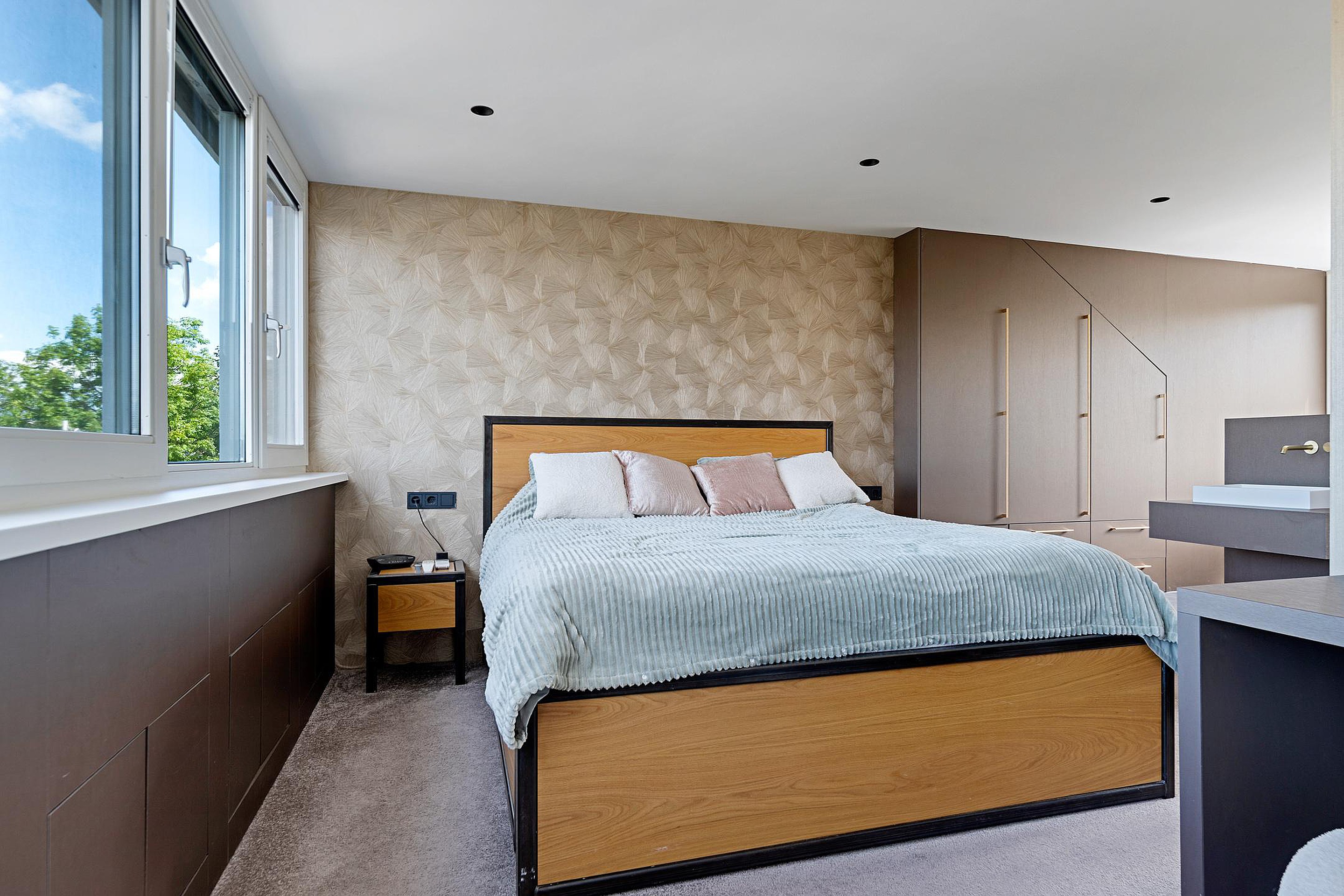 Op de bovenste etage wacht je nog een verrassing: hier is een vierde slaapkamer gerealiseerd met een grote dakkapel aan de achterkant en een kleinere aan de voorzijde. Je vindt hier de ruime master bedroom met badkamer en-suite, voorzien van wastafel en ligbad. Door de airconditioning blijft deze etage ook op warme dagen heerlijk koel. Er is slim met de ruimte om gegaan, met een praktische, op maat gemaakte kastenwand onder het schuine dakvlak voor je kleding. Ook de Cv-ketel, wasmachine en droger zijn keurig weggewerkt.