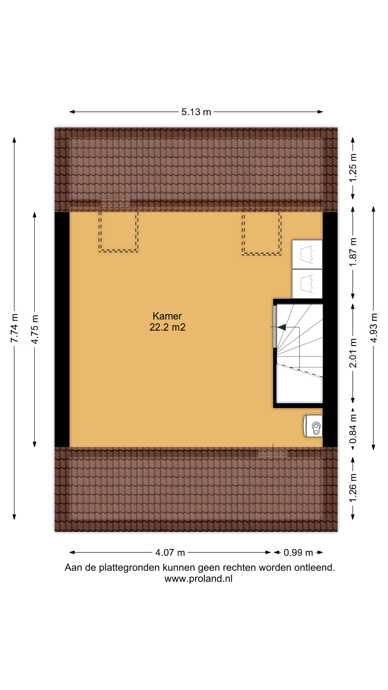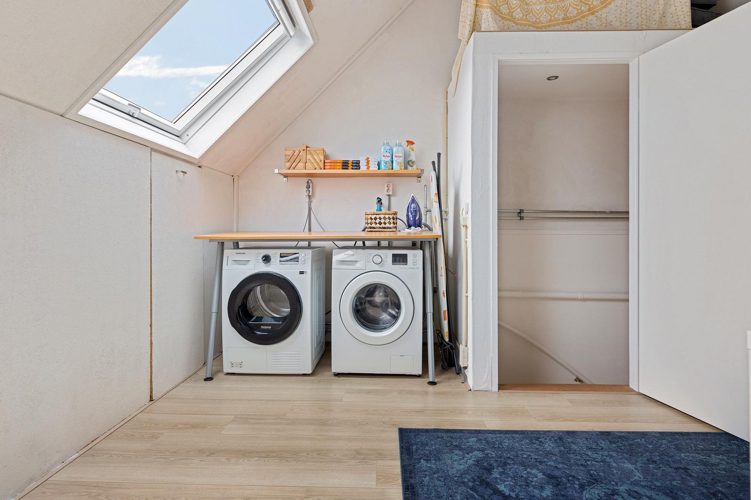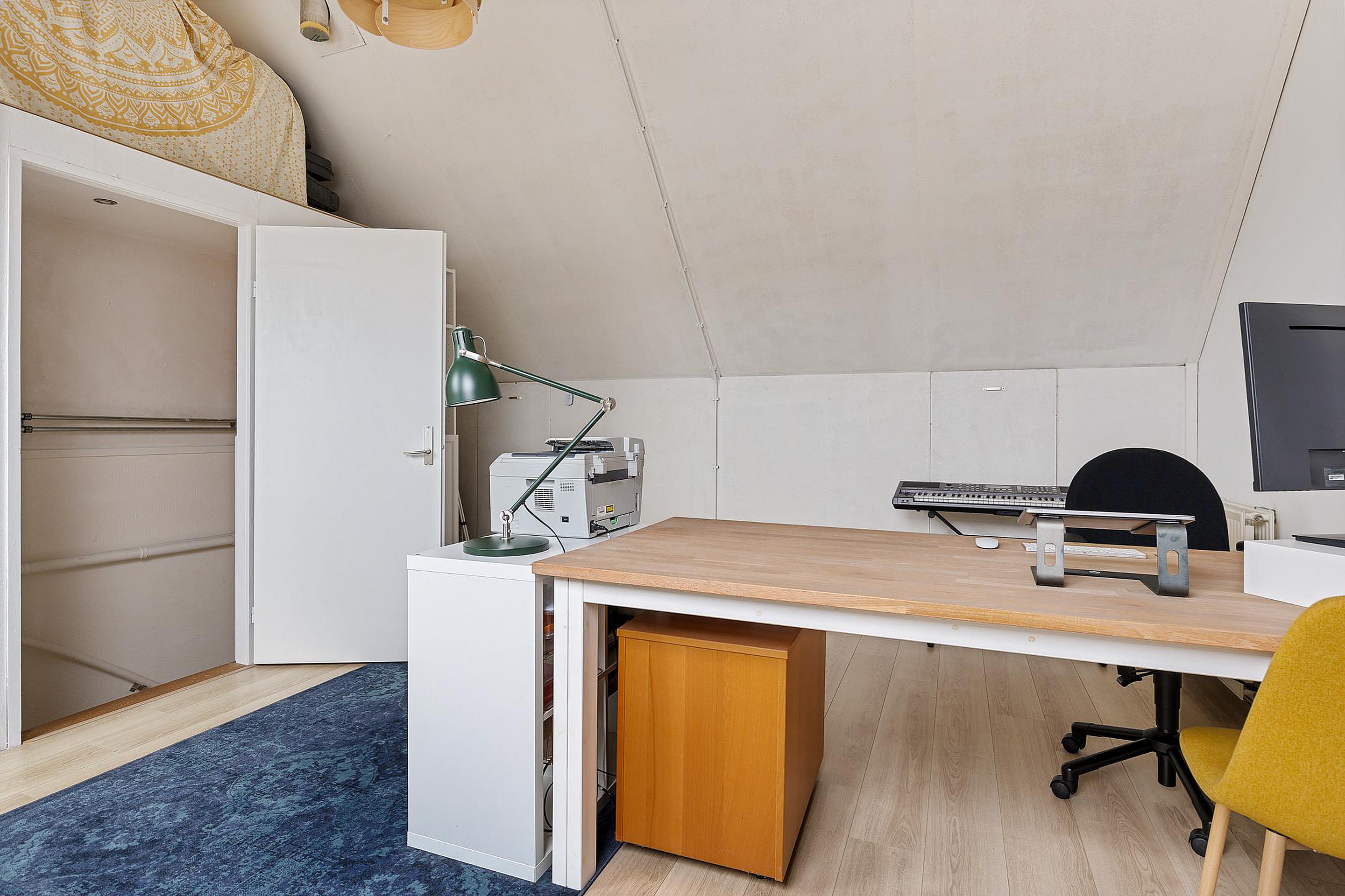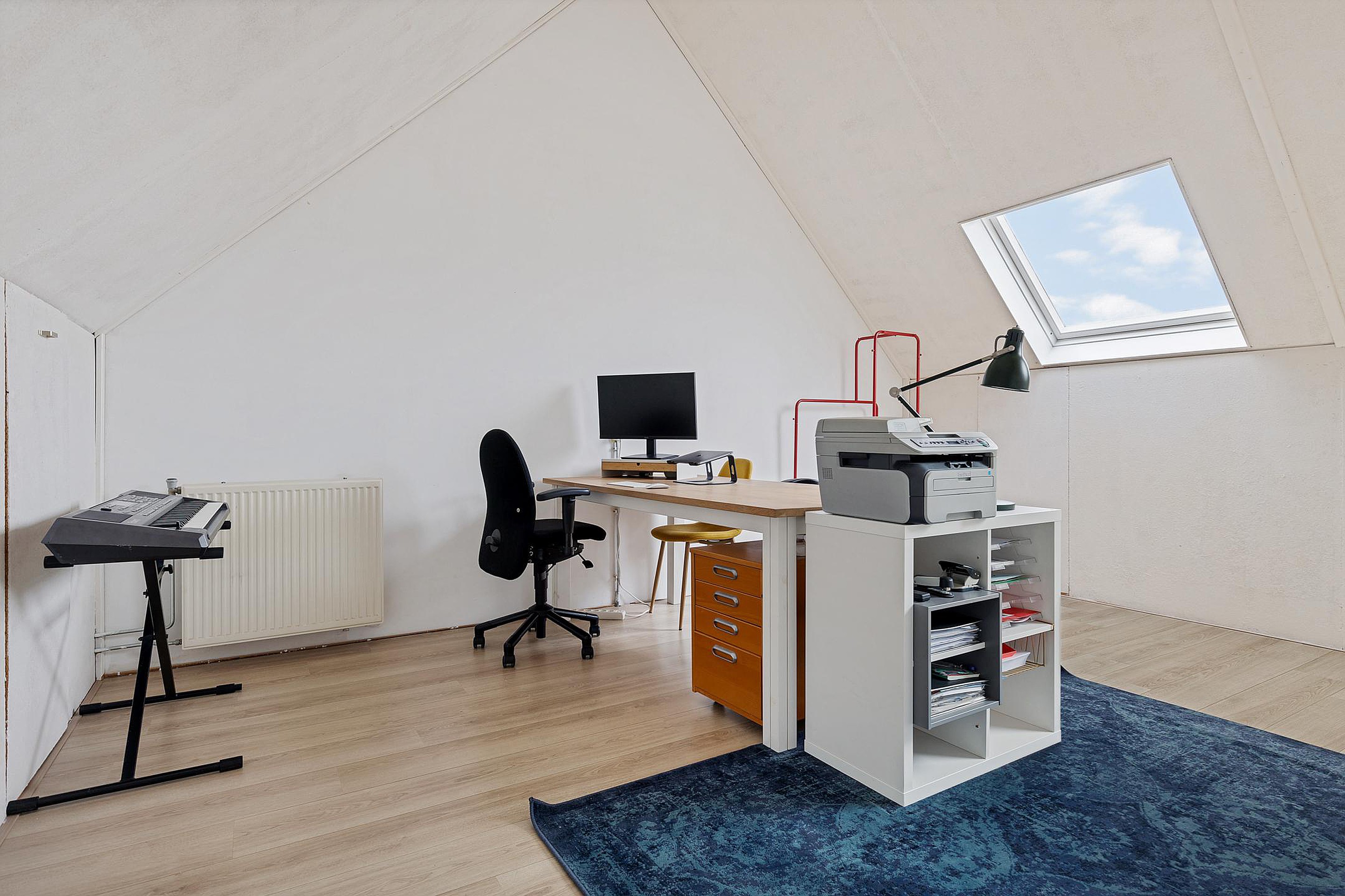 Een ruime vierde slaapkamer bevindt zich op de bovenste etage. De ruimte is geheel open en in het achterste dakvlak voorzien van 2 Velux kantelramen. Het is mogelijk deze kamer te vergroten door middel van dakkapellen aan zowel de voor- als achterzijde. Achter de knieschotten en boven de trapopgang is ruimte om spullen op te slaan en direct ernaast is er plek voor de wasmachine en droger. Hier hangt ook de Cv-installatie (Intergas, 2016).