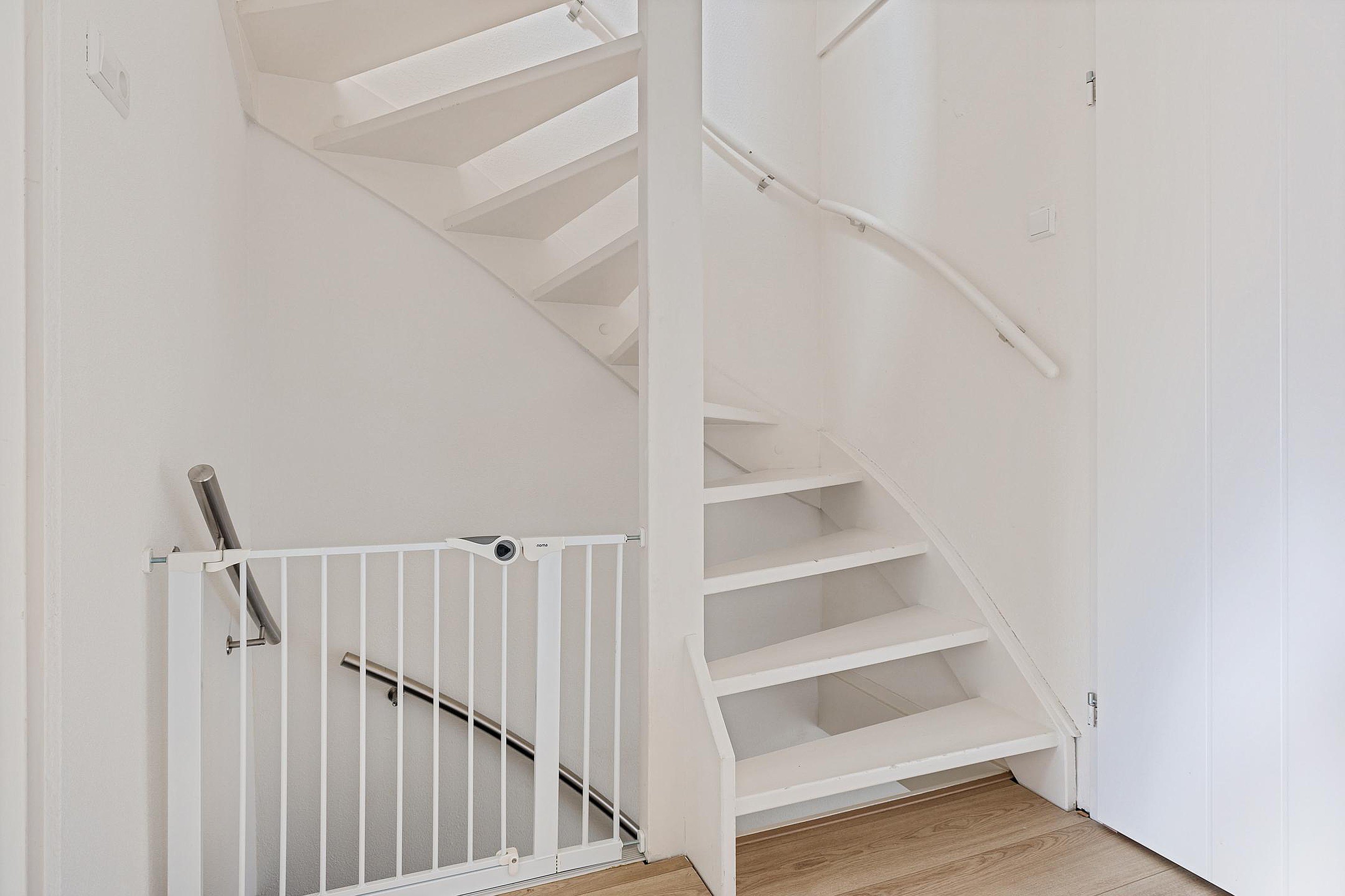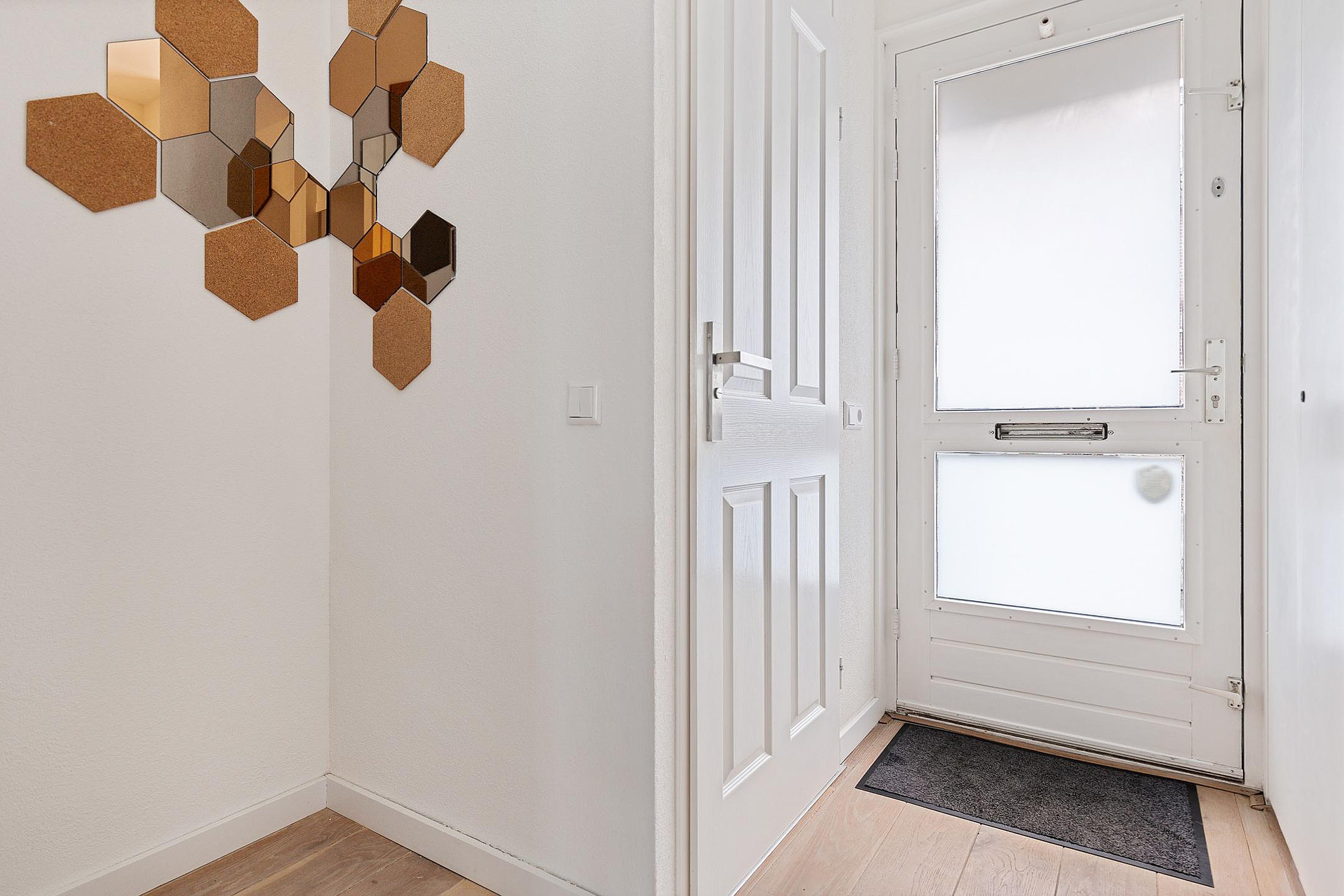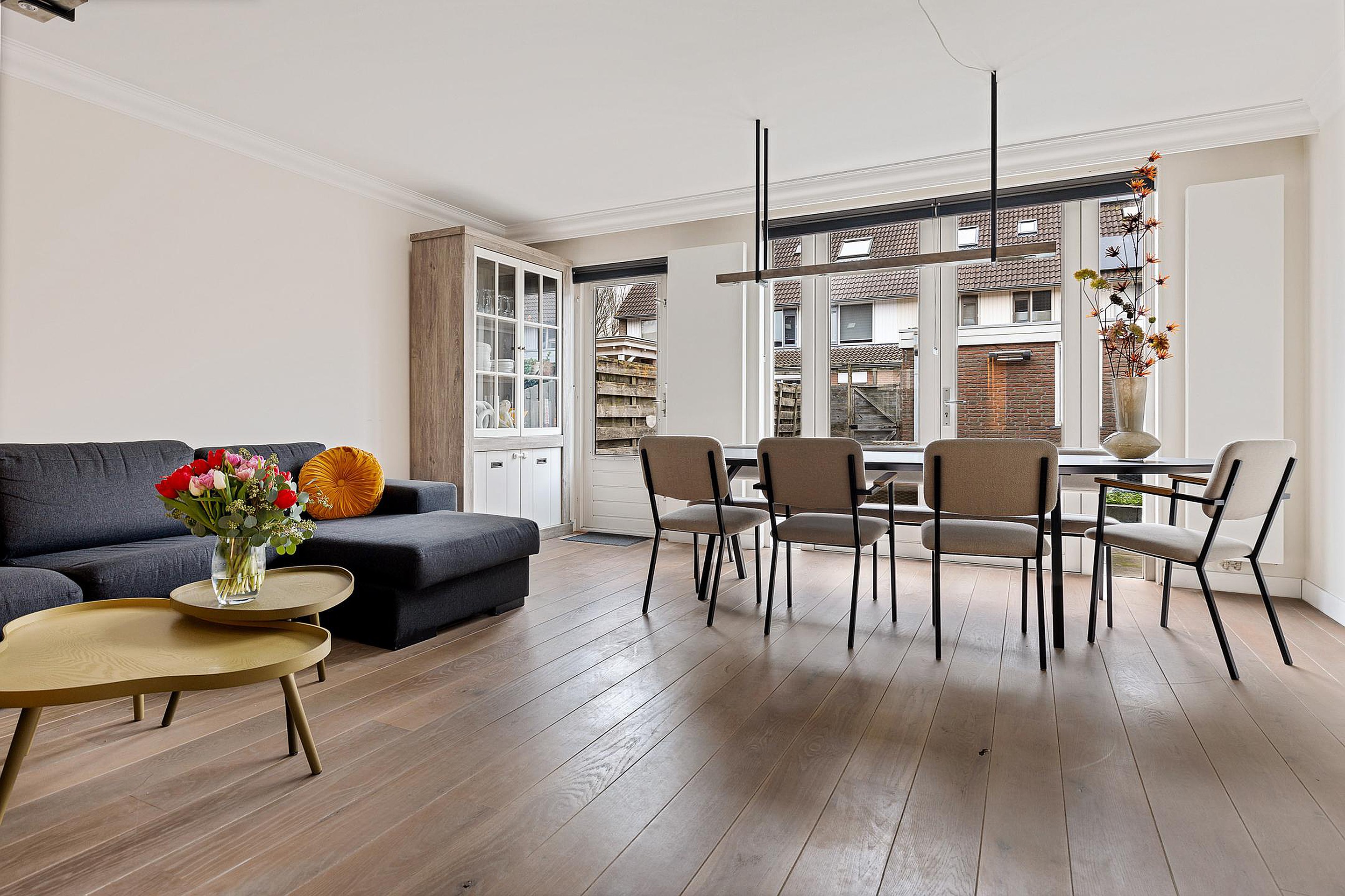 Via de hal, met 14-groeps meterkast, trapopgang en moderne toiletruimte voorzien van een fonteintje, stap je de royale woonkamer in, die is voorzien van een houten vloer en wanden en plafond in neutrale kleuren, inclusief een fraaie sierlijst. De leefruimte is aan de achterzijde gerealiseerd en heeft prettig veel lichtinval door de extra brede openslaande deuren. Je hebt hier alle ruimte voor een gezellige zit- en eethoek. Extra bergruimte gerealiseerd in de kast onder de trapopgang die vanuit de woonkamer toegankelijk is.